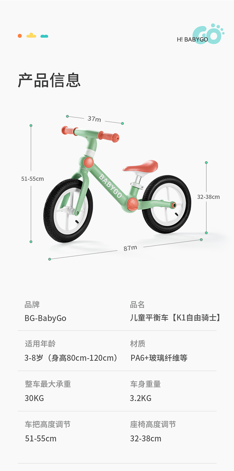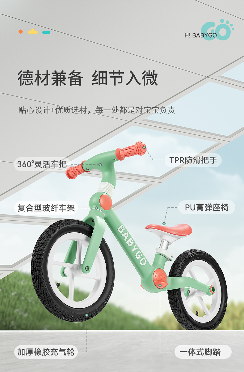 babygo儿童平衡车2-3-6岁男女宝宝学步车溜溜车自行滑行车滑步车