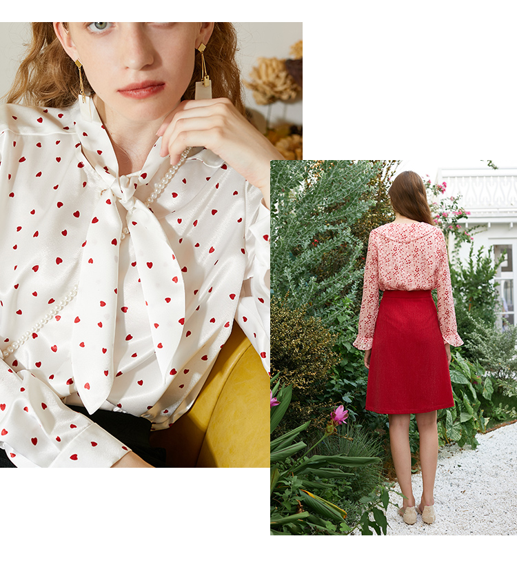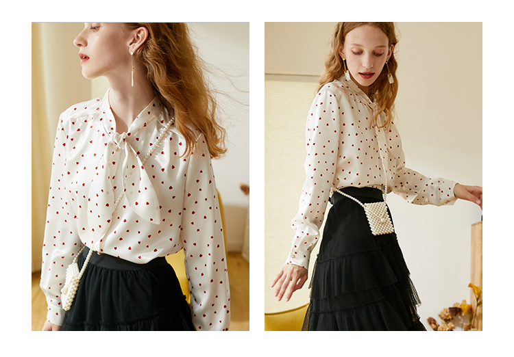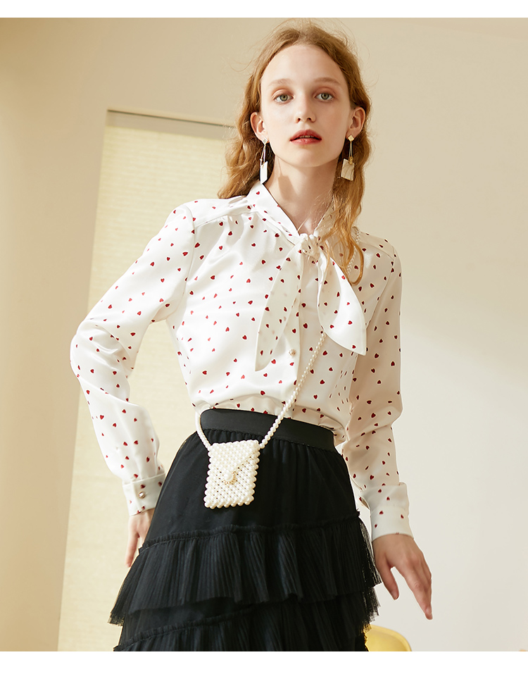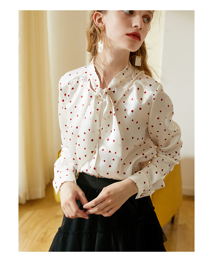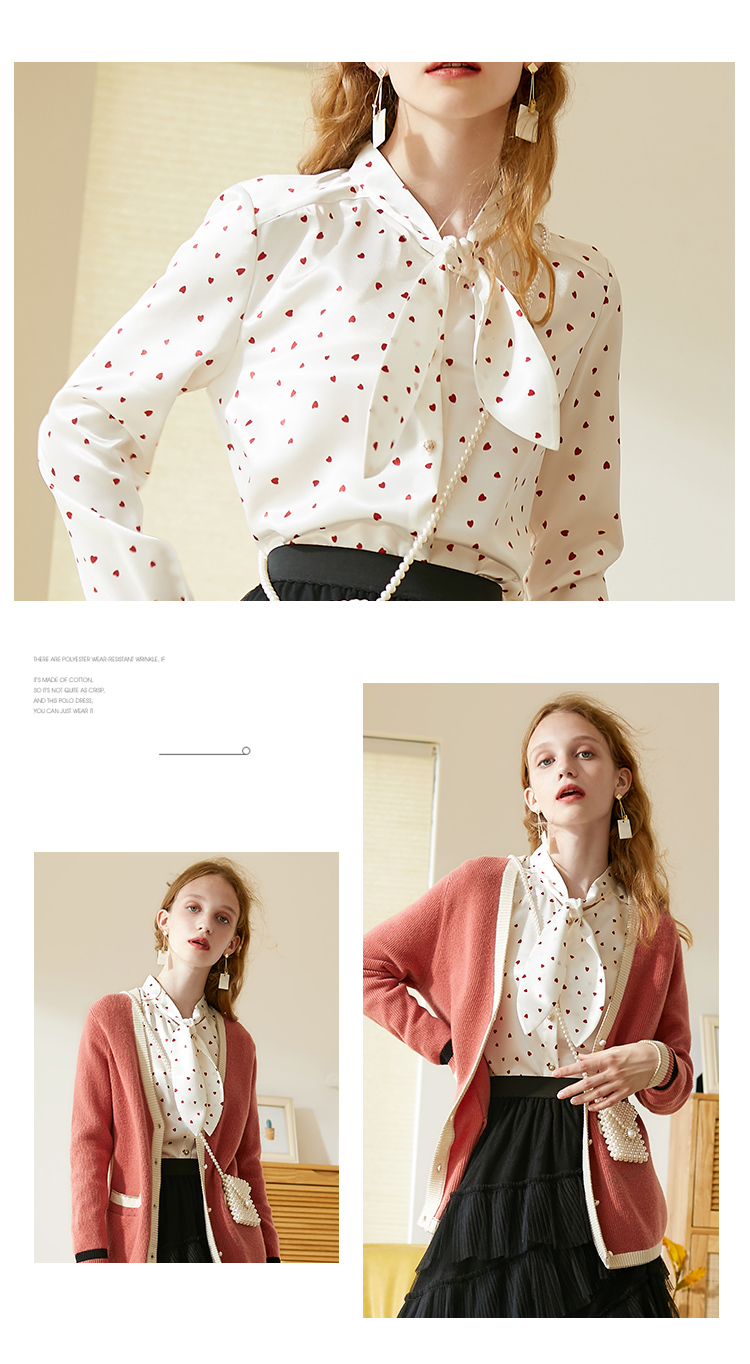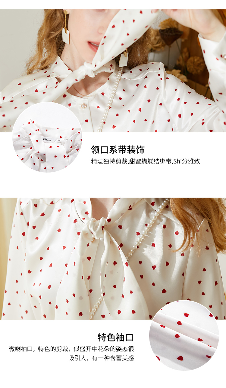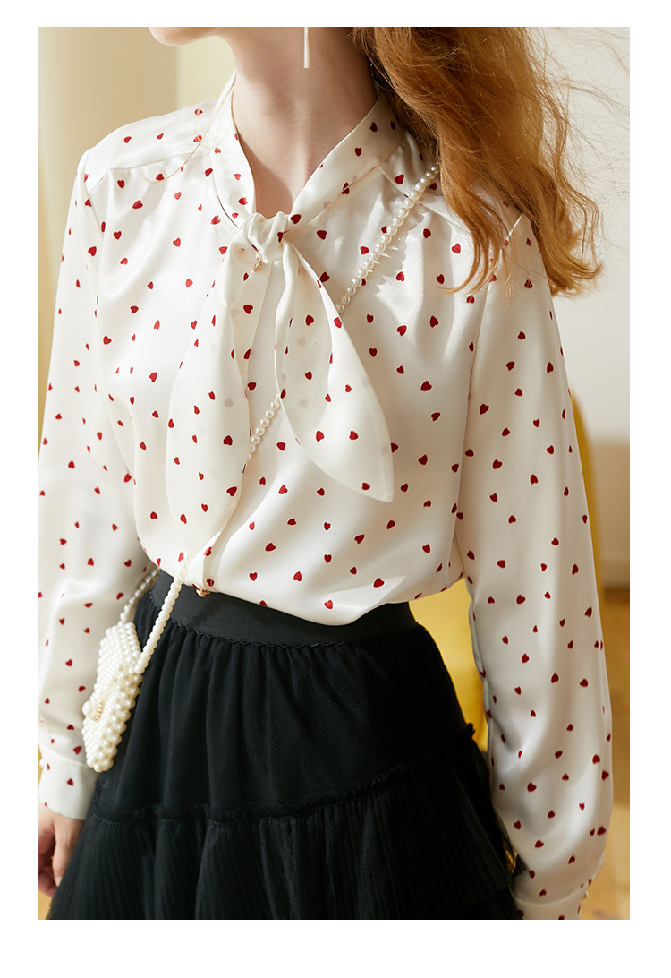 长袖衬衫女2022秋季新款印花法式缎面衬衣设计感小众波点上衣轻熟