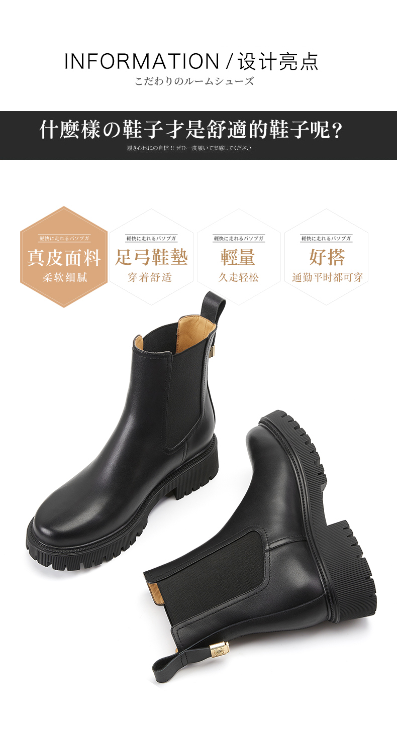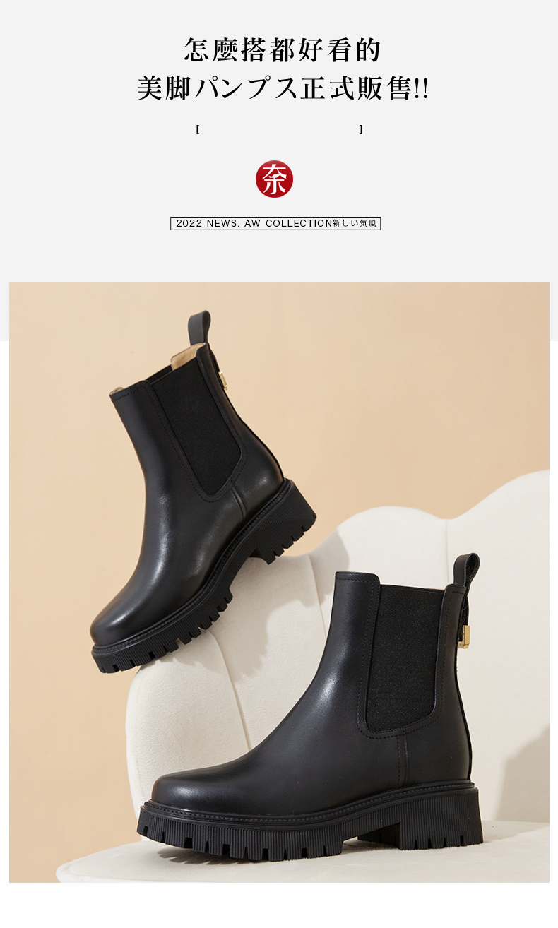 ARCHCONTACT安启美奈圆头牛皮休闲加绒/不加绒切尔西靴