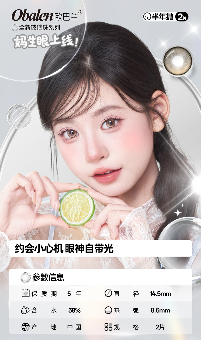 新品【玻璃珠】方盒系列Obalen欧巴兰淡颜天菜【胶原少女】14.5大直径日常伪素颜神器百搭自然款半年抛美瞳非离子隐形眼镜2片装