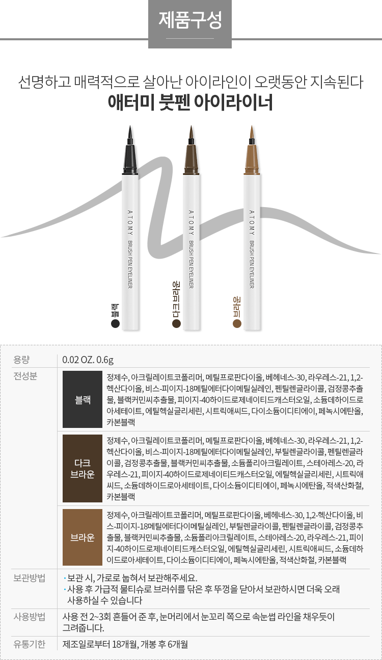 Atomy 美韩国直邮免费开账号 Brush Pen眼线笔JPY带授权招加盟代理