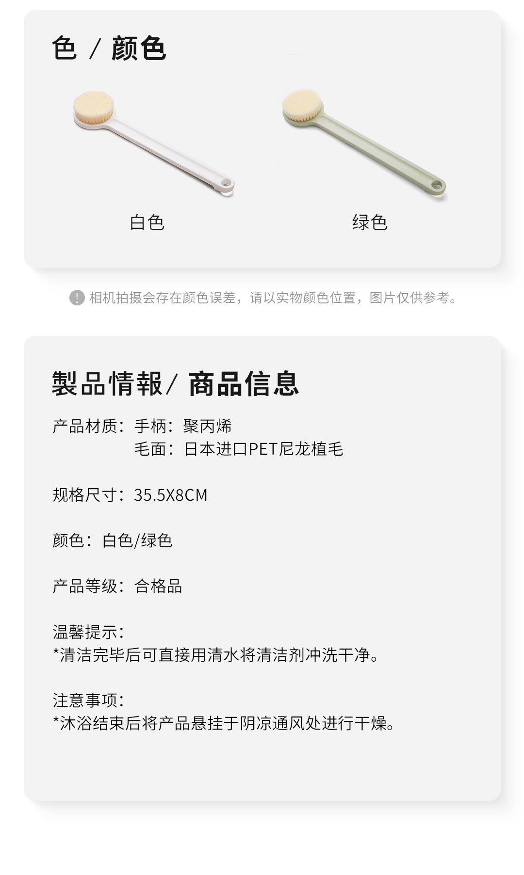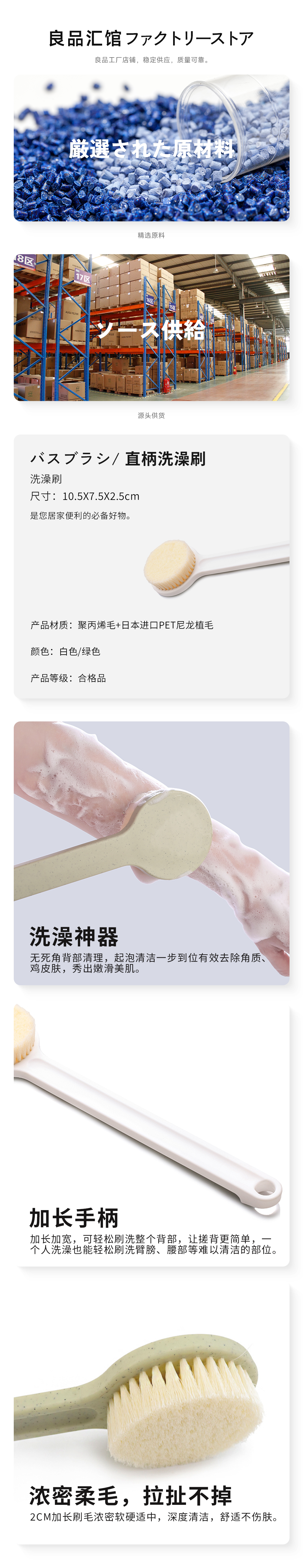 【直柄洗澡刷】搓澡神器洗澡刷子搓背巾长柄沐浴刷成人软毛后背