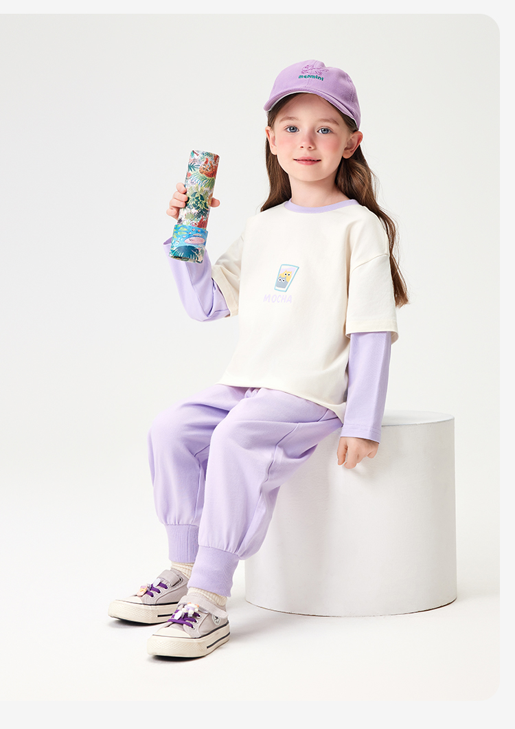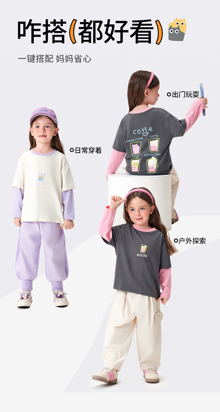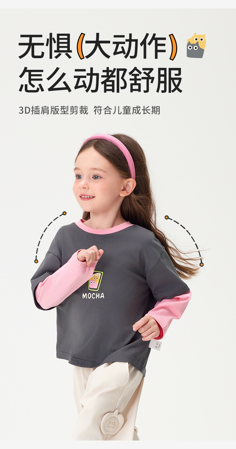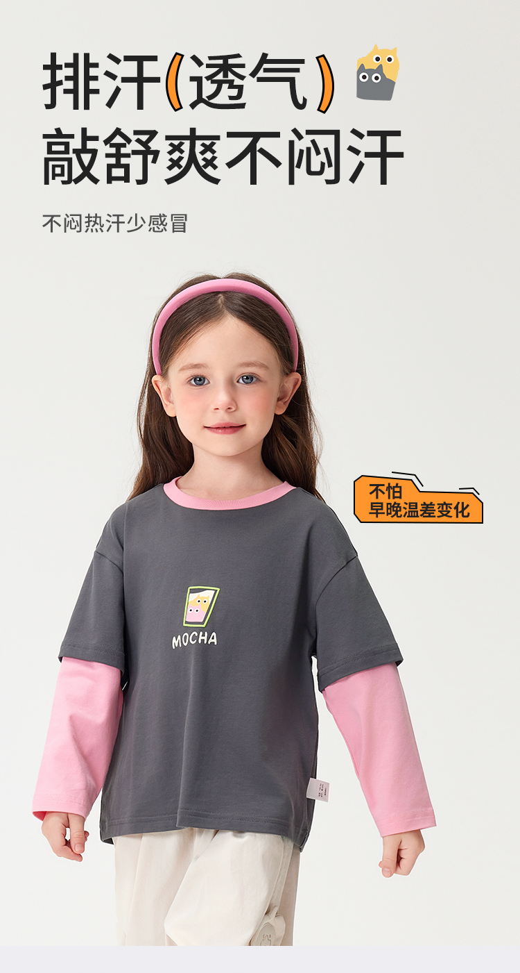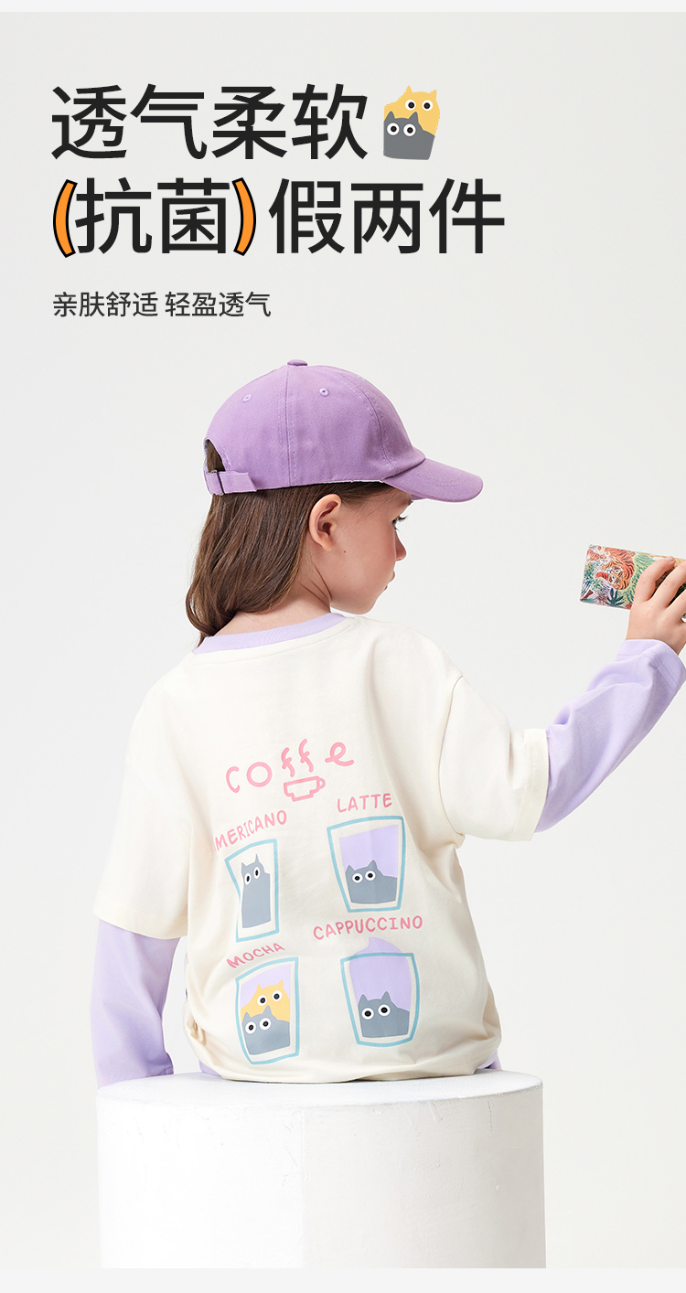 【10A抑菌】【90-130】【可可鸭】女童春秋假两件长袖T恤