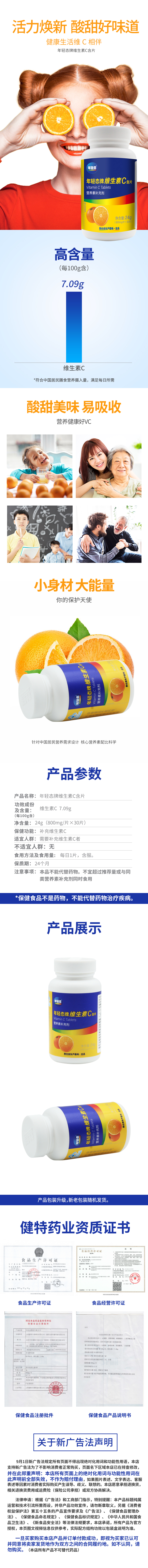 【脑白金出品】年轻态牌维生素C含片 营养素补充剂(800mg/片*30片/瓶)