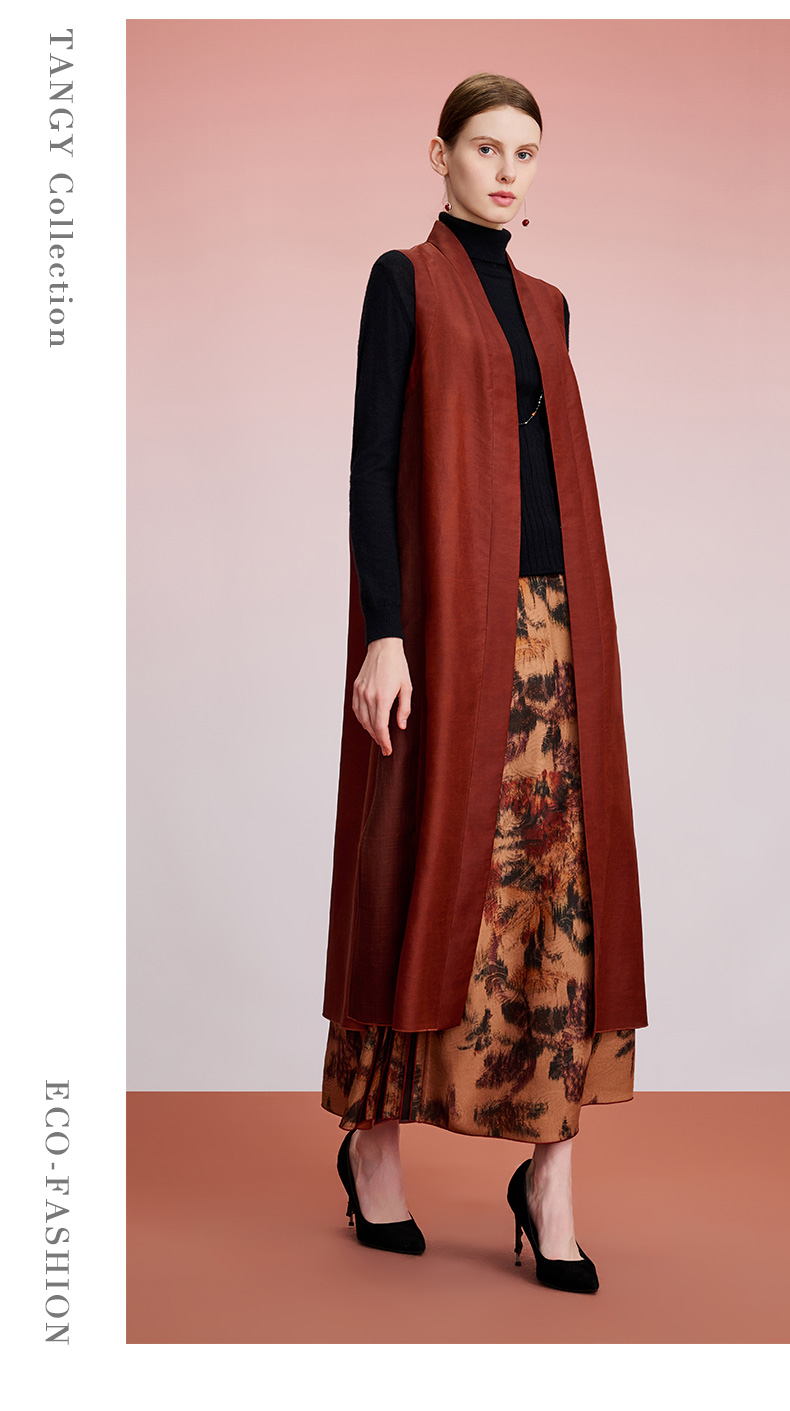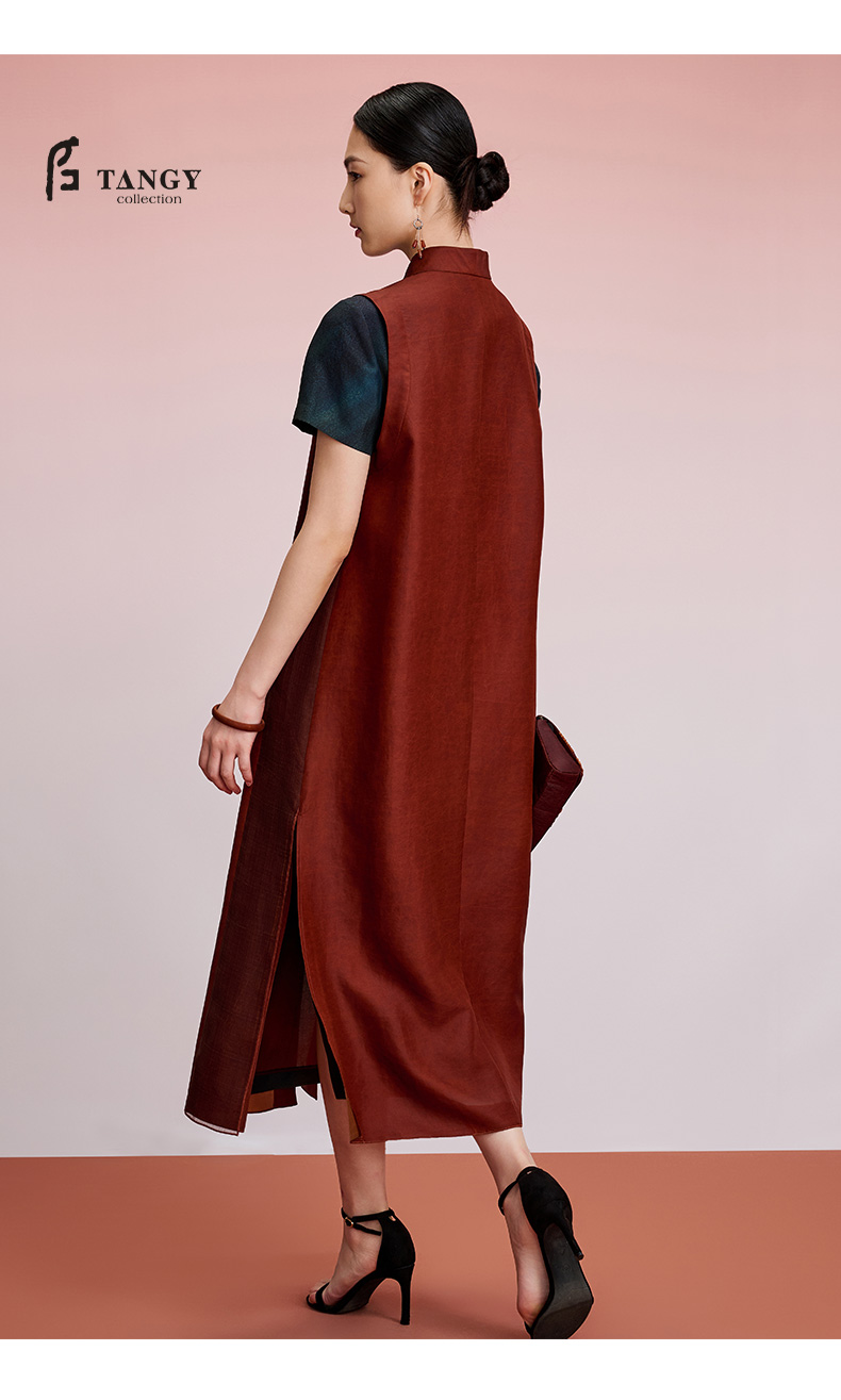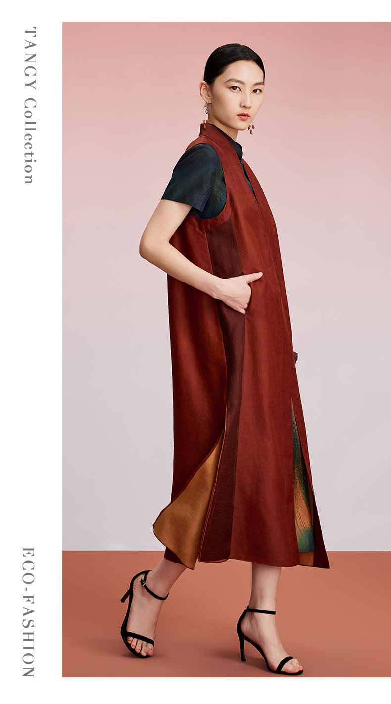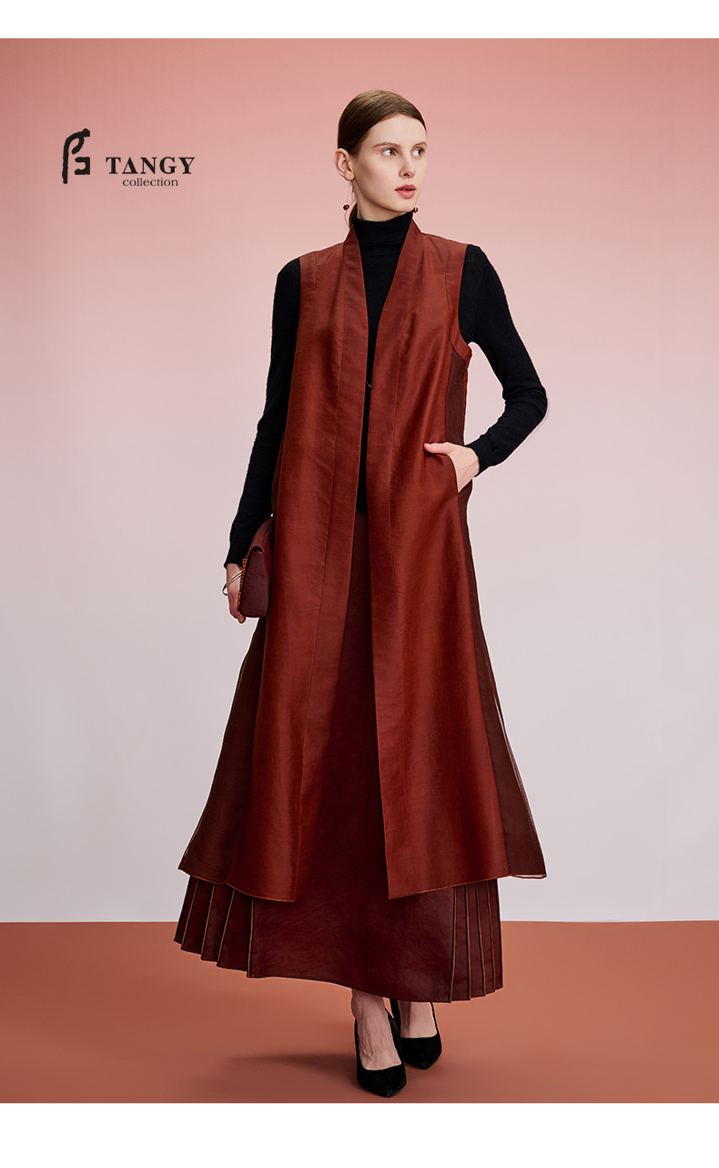 TANGY Collection天意精品2024秋季新品中国风中长款茛绸马甲