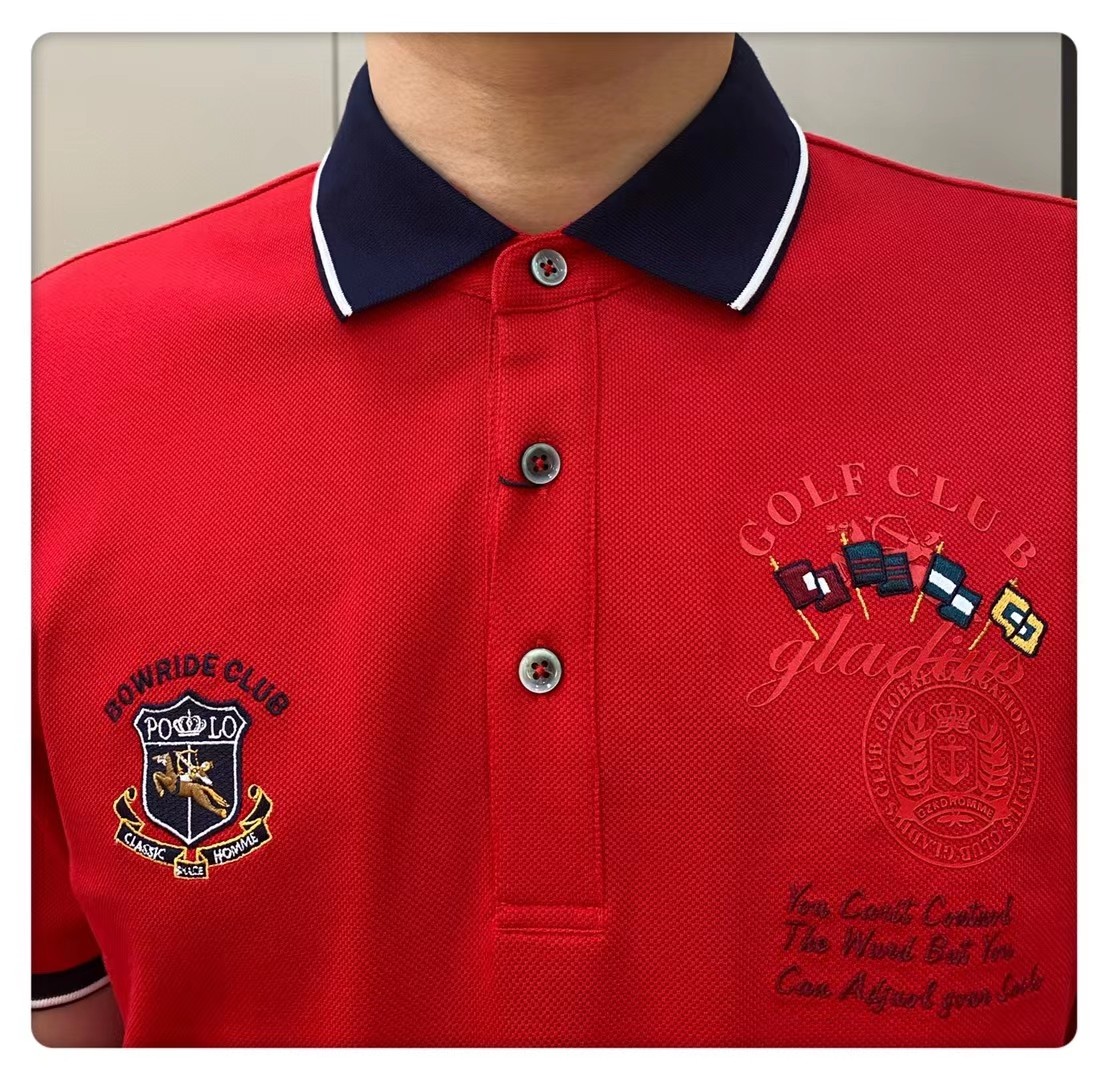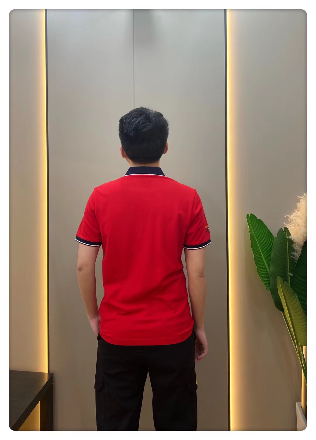 B01170# 男款返领短袖T恤👚,精美做工刺绣图标,薄网面材料! 红色 M~3XL