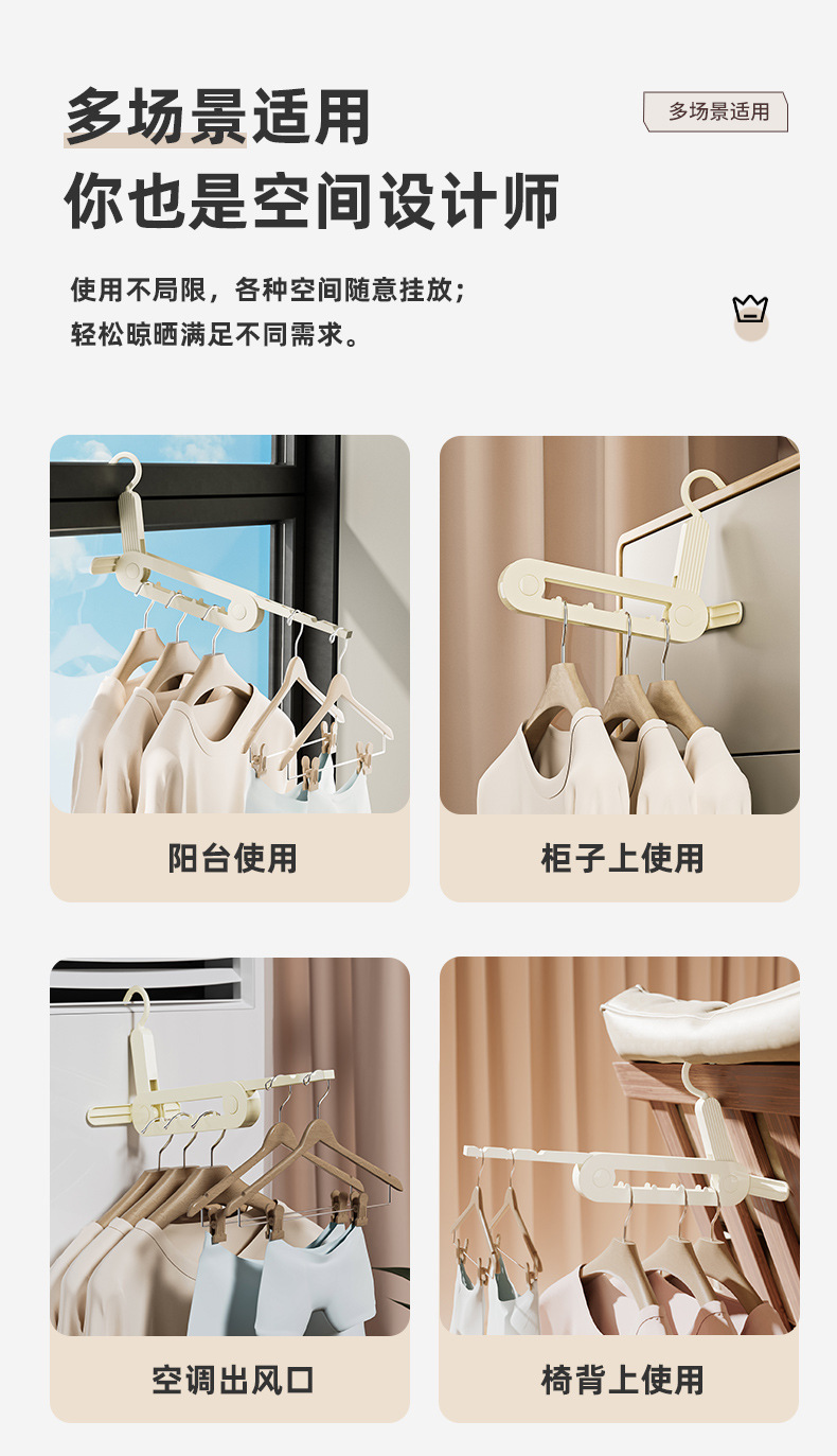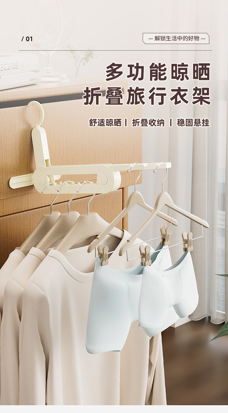 【可折叠多孔晾衣架杆】宿舍学生窗台衣服晾晒器 旅游出差多功能收纳架 国庆出行好物