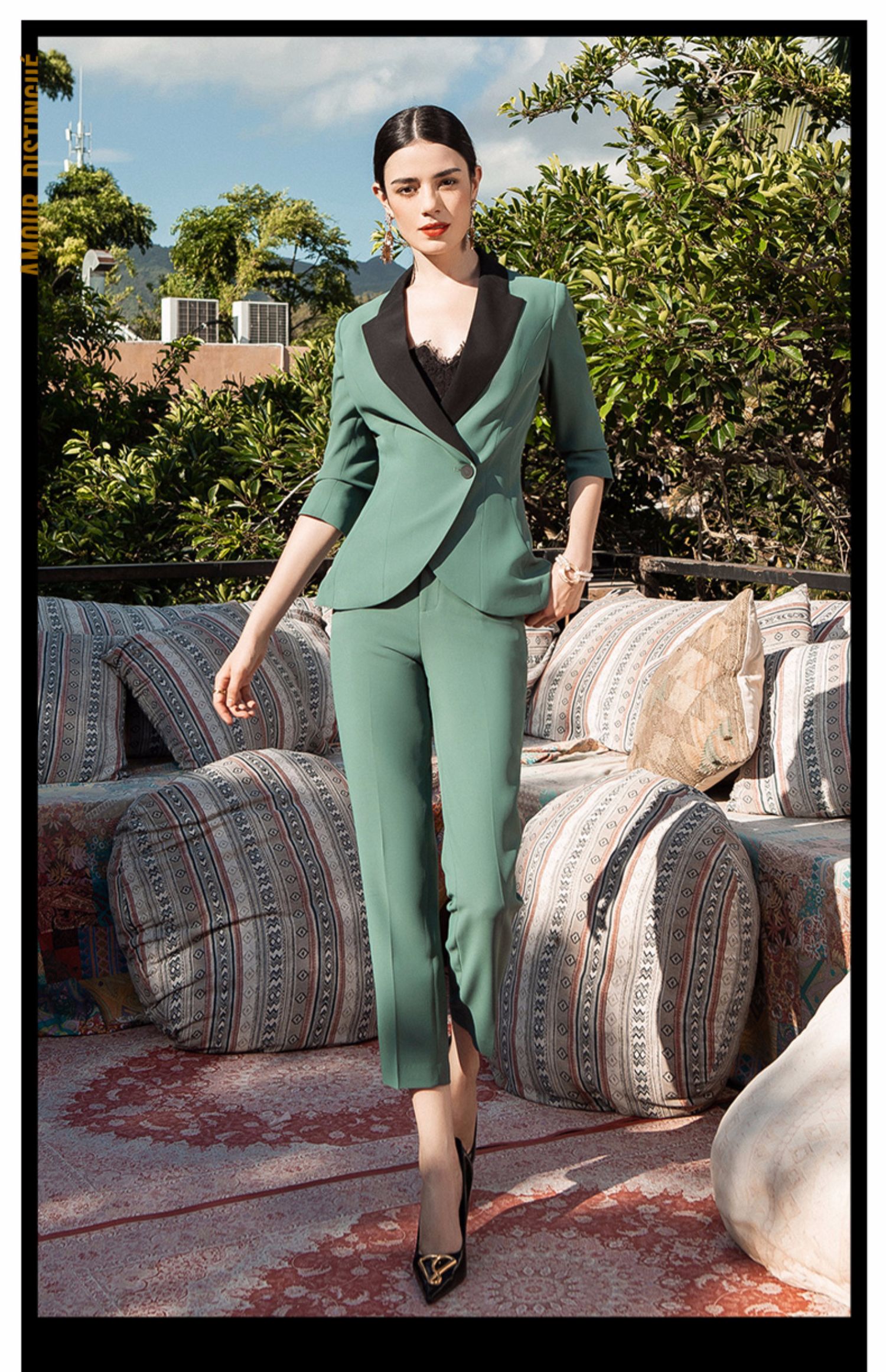 IWY/绿色高端名媛职业装套裙女西装时尚气质修身显瘦售楼部工作服NCS1249