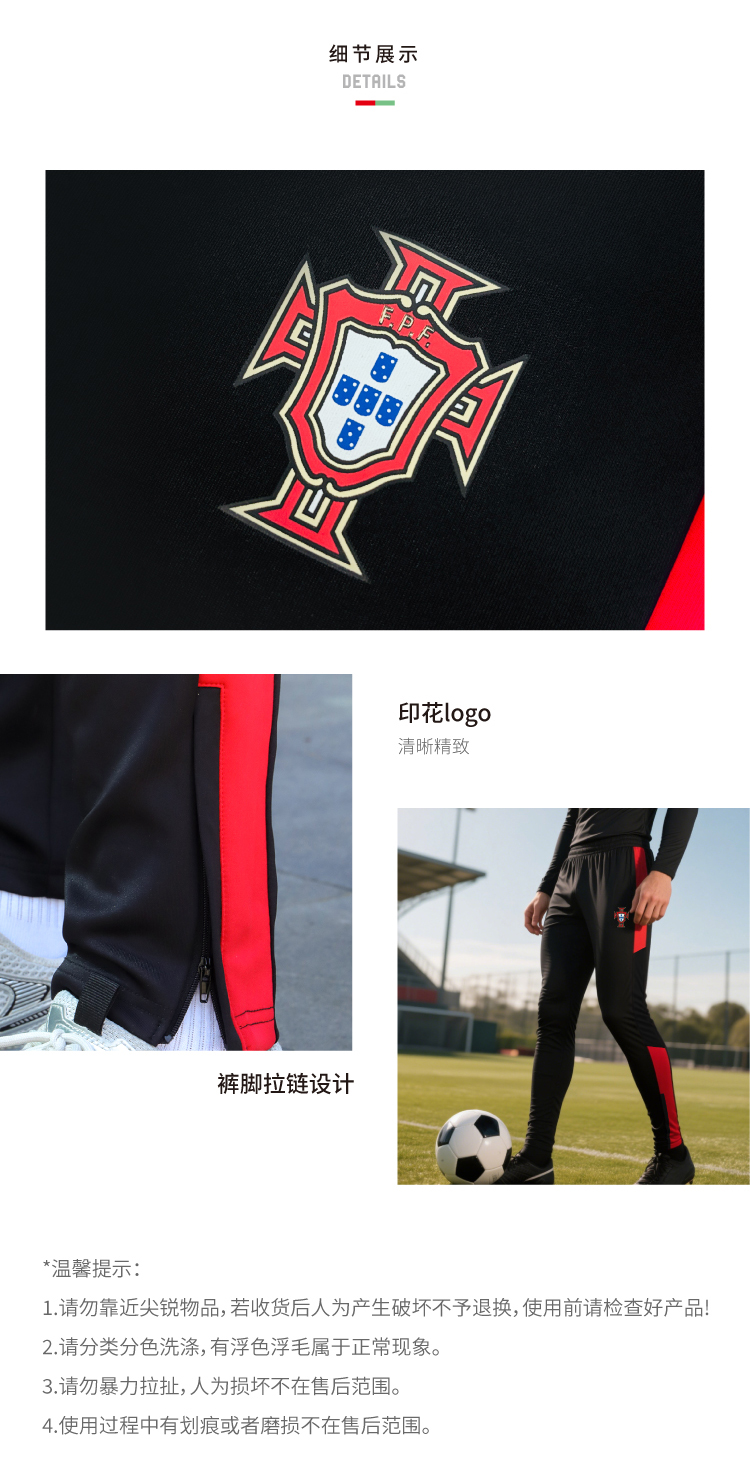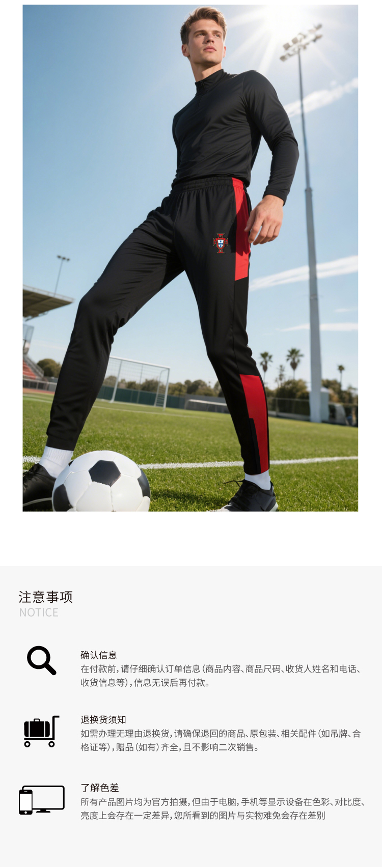 【官方正版】葡萄牙国家队 | 春夏新款休闲运动裤黑色简约百搭