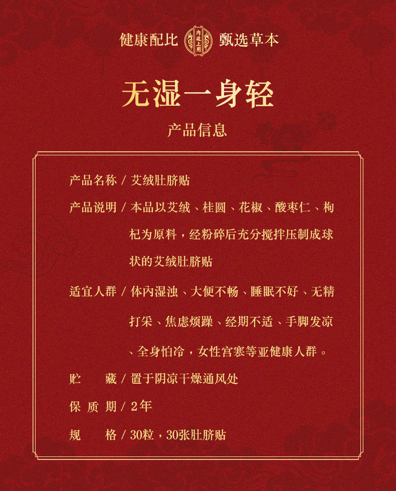 【北京同仁堂】内廷上用 艾绒肚脐贴 艾脐贴艾草贴 肚脐贴 30贴/盒