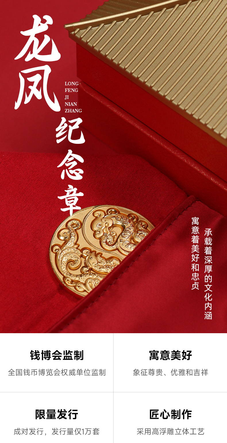 【情人节好礼】龙凤异形小银条镀金纪念章