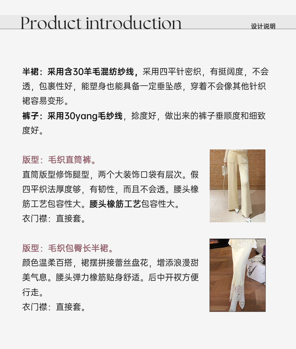 余潇潇【南韩贵女】绵羊毛混纺修身针织包臀半裙&大口袋直筒休闲裤