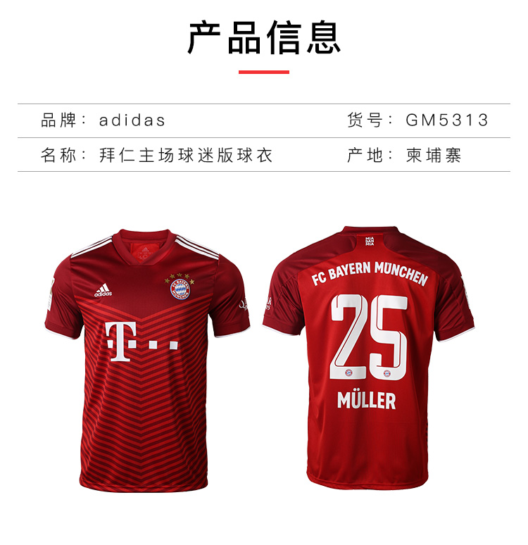 ADIDAS/阿迪达斯21-22赛季拜仁主场球迷版足球服男GM5313
