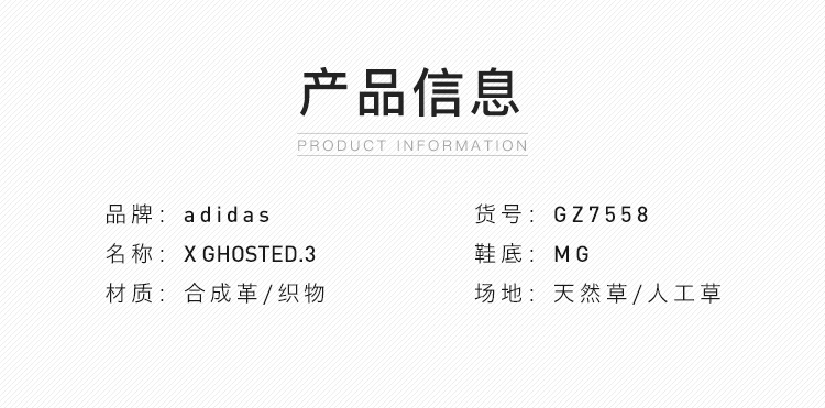 正品ADIDAS/阿迪达斯 X GHOSTED.3中端MG足球鞋GZ7558