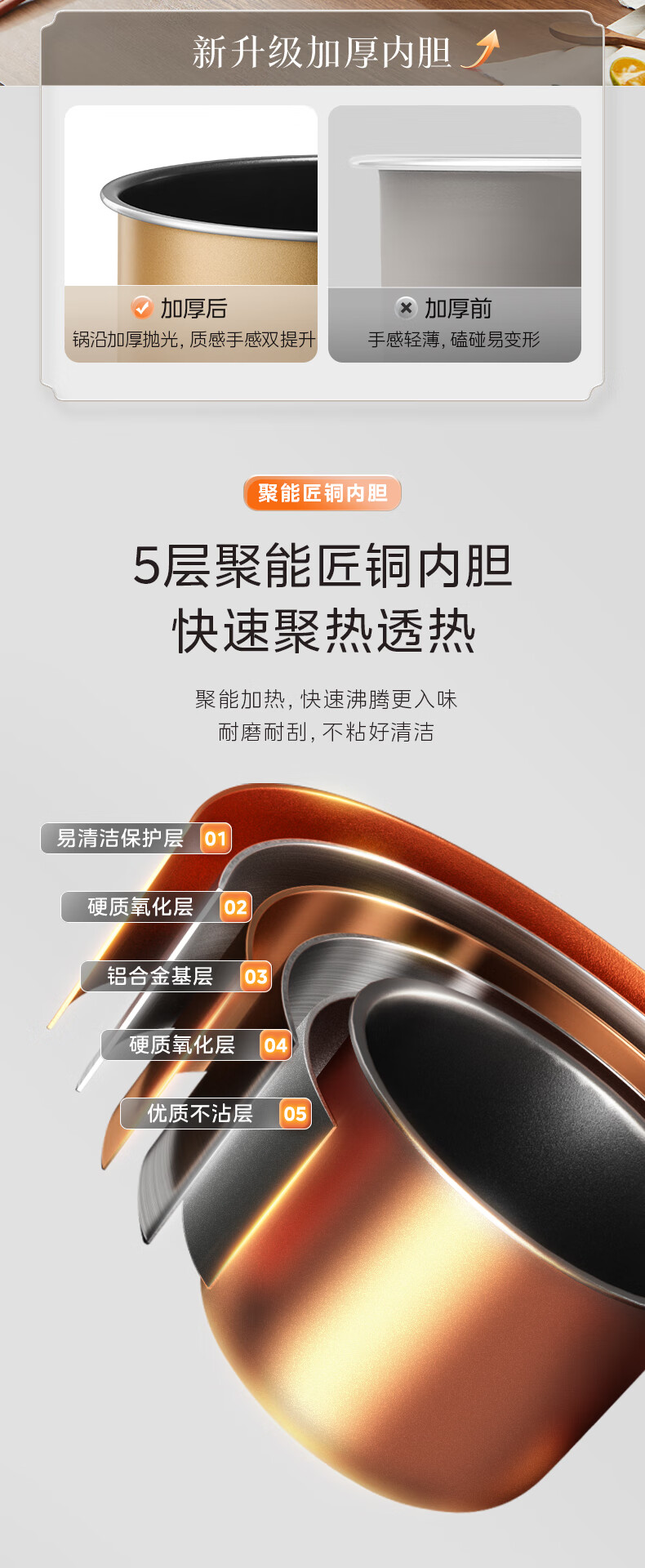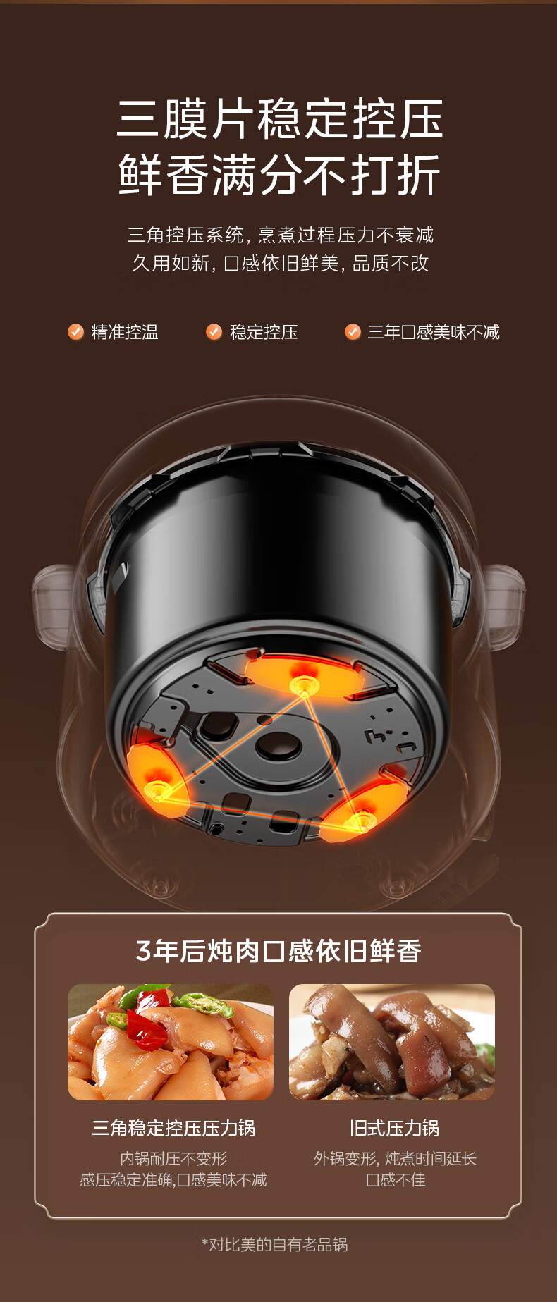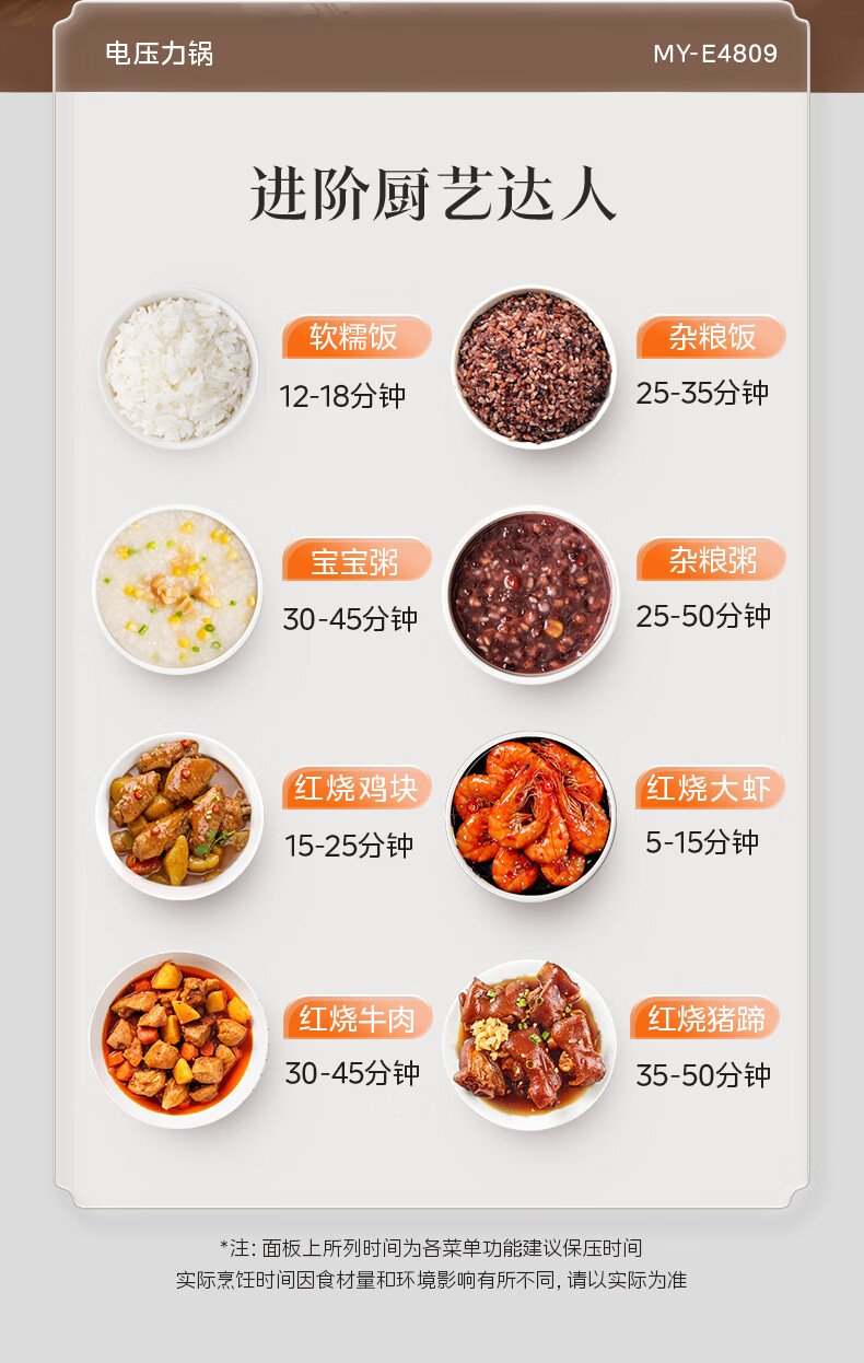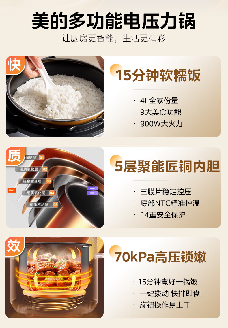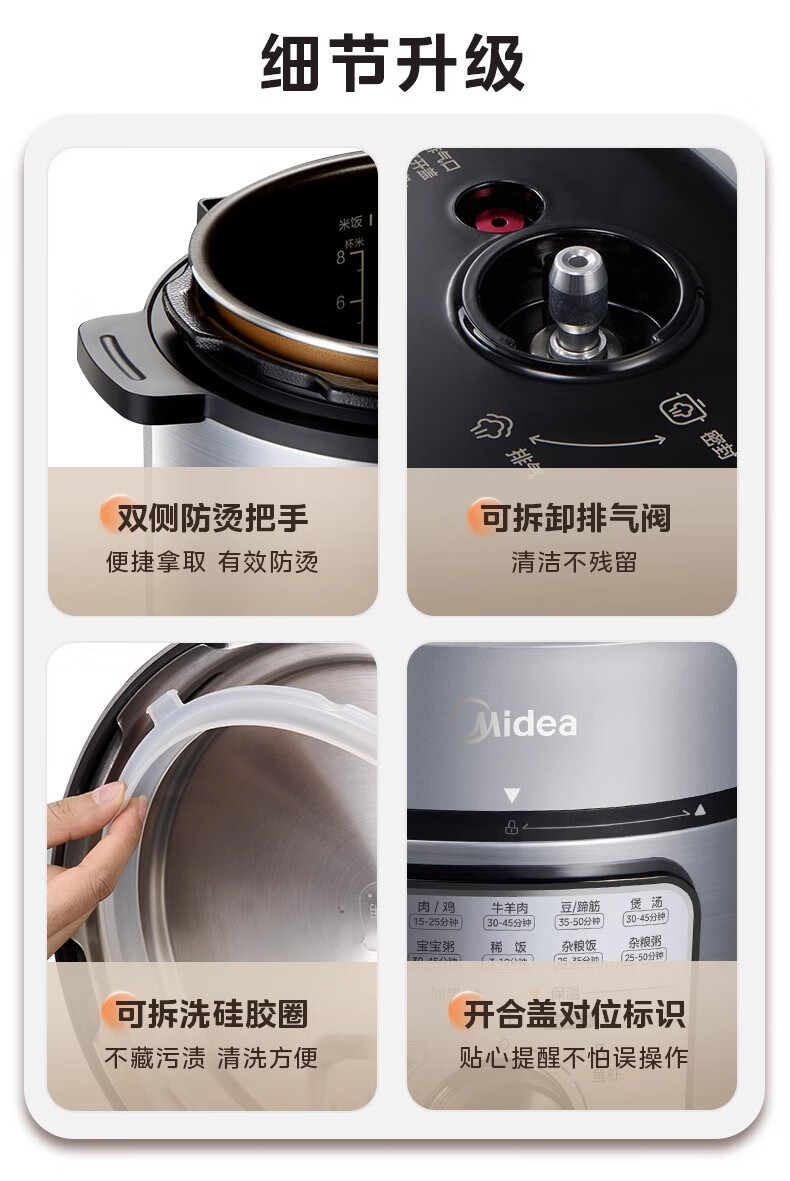 美的(Midea)4L电压力锅 家用70kPa快煮 高压电饭锅 旋钮操控 开盖火锅 煲汤 煮小米粥MY-E4809电饭煲3-6人