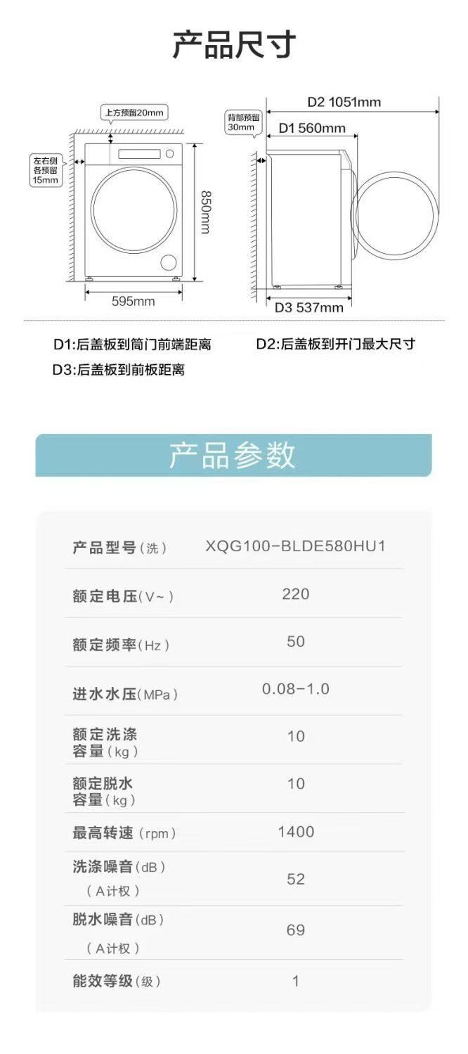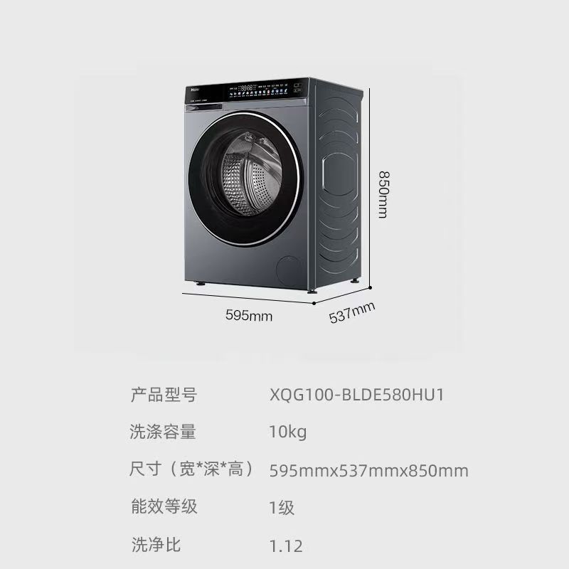 【精品】Haier/海尔 XQG100-BLDE580HU1 滚筒洗衣机 洗净比1.12 羊毛绿标 精华洗2.0 除毛洗 超薄深度537mm