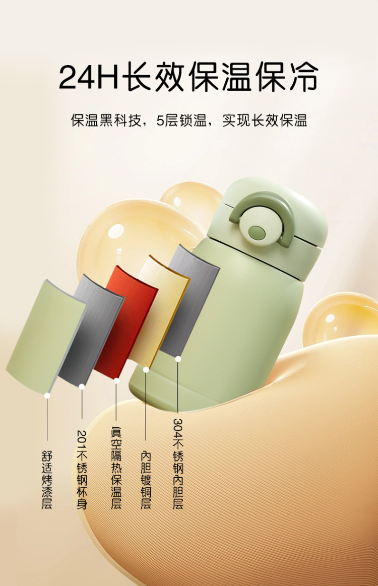 【简约清新❗️长效保温】不锈钢迷你保温杯真空便携学生水杯马卡龙直饮弹跳杯。ya