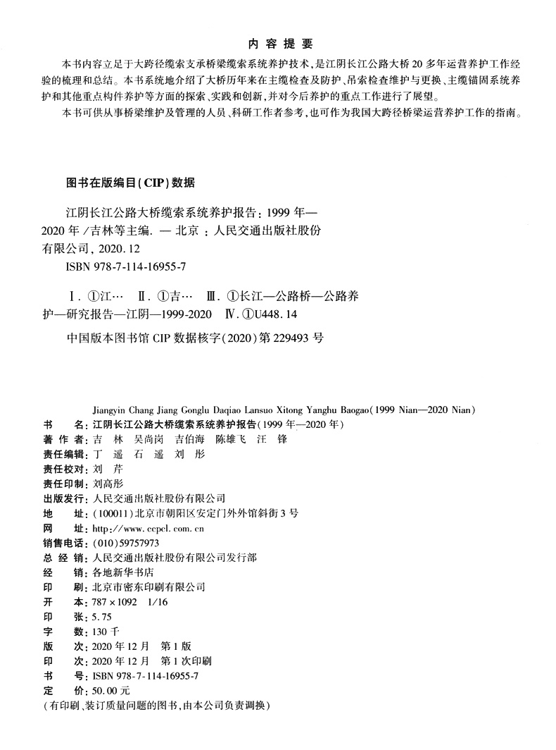 书名:江阴长江公路大桥缆索系统养护报告(1999年—2020年)