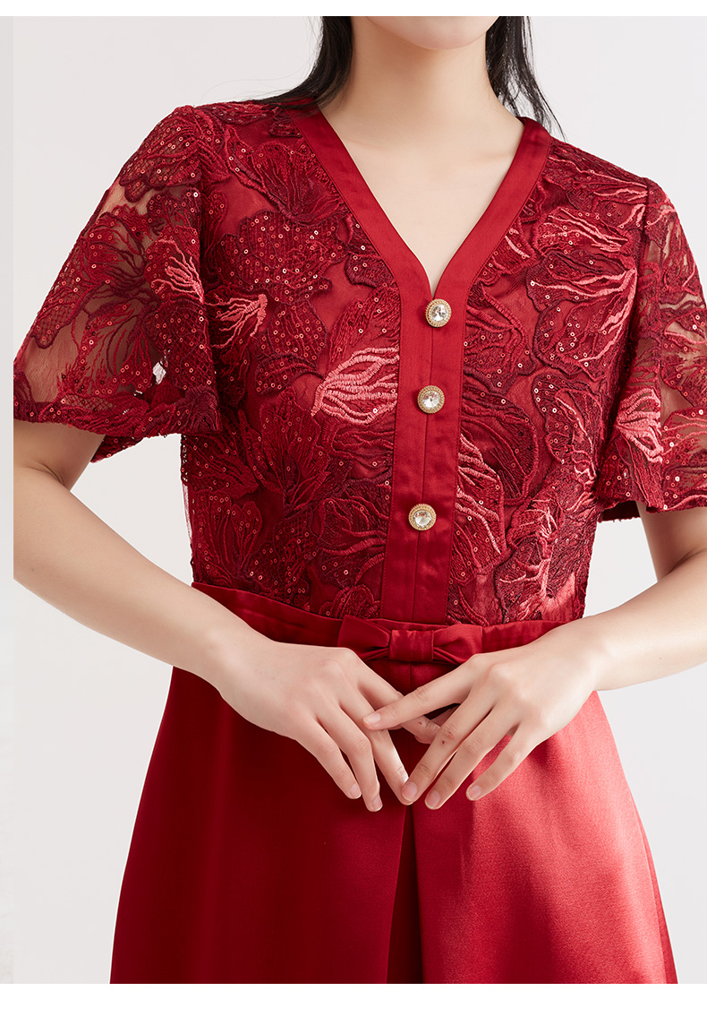【特价不退换】阿菁娜蕾丝v领时尚连衣裙A23Q112137