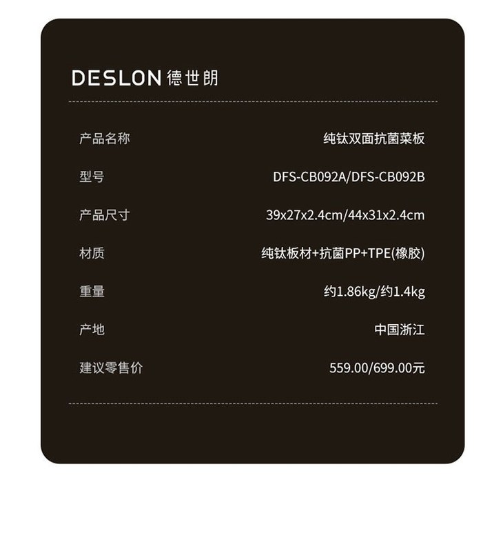 DESLON德世朗DFS-CB092A纯钛双面抗菌菜板