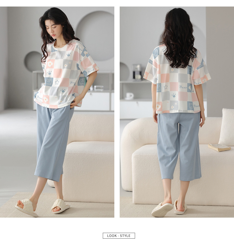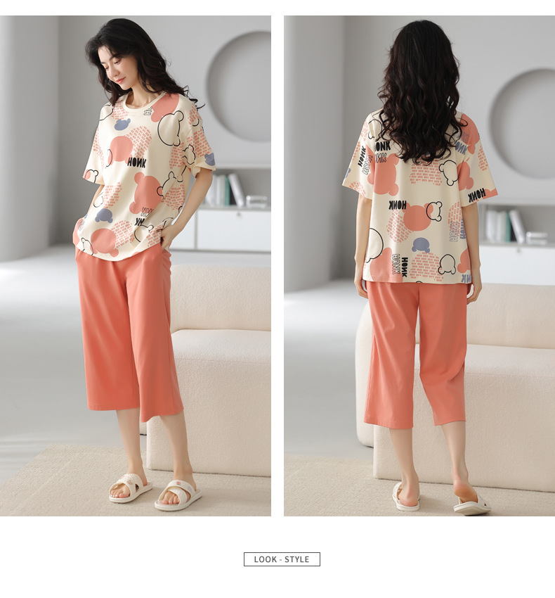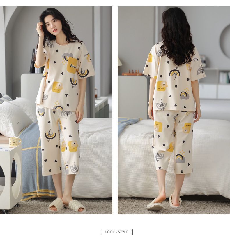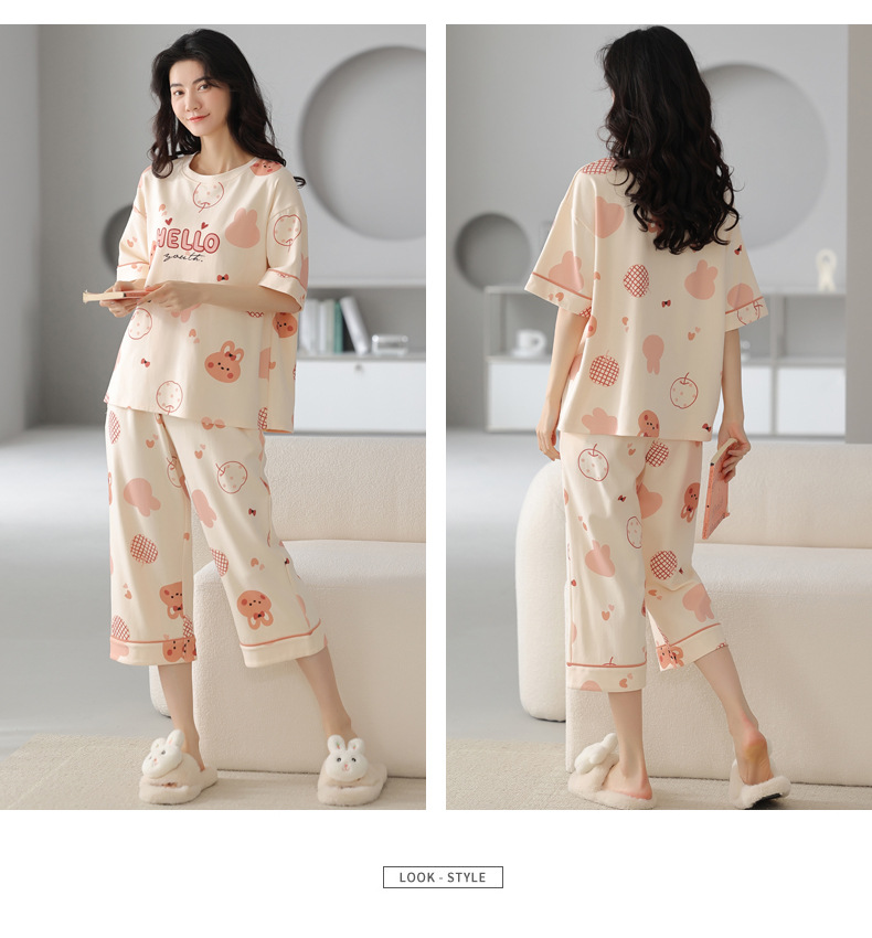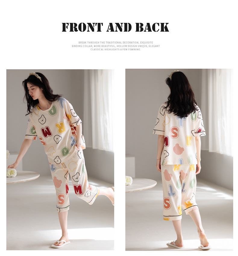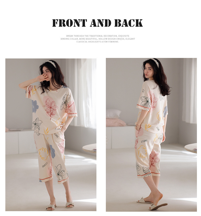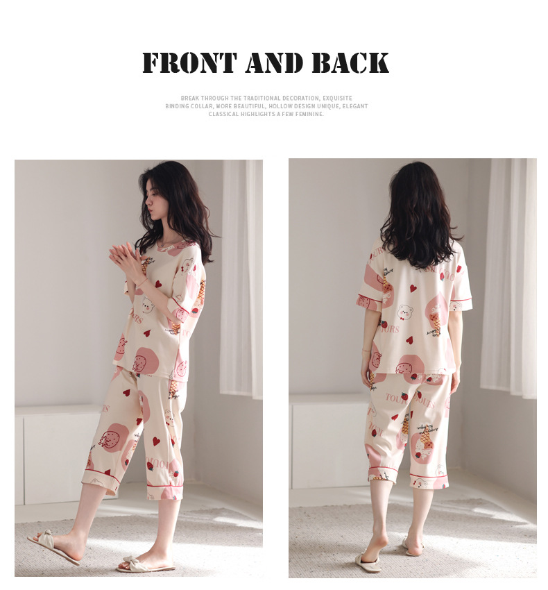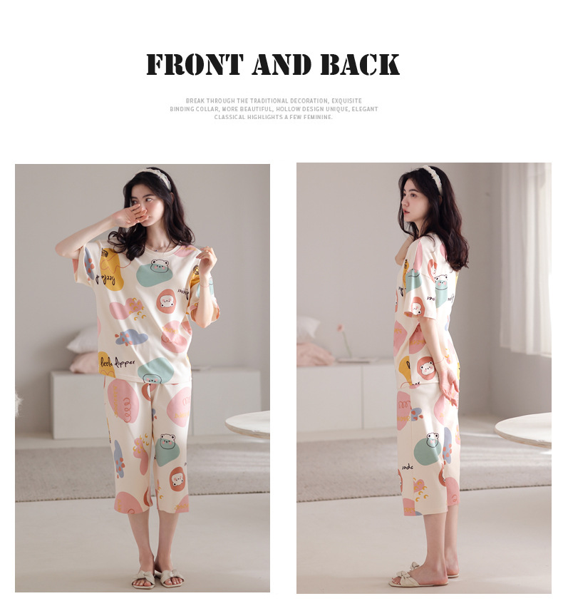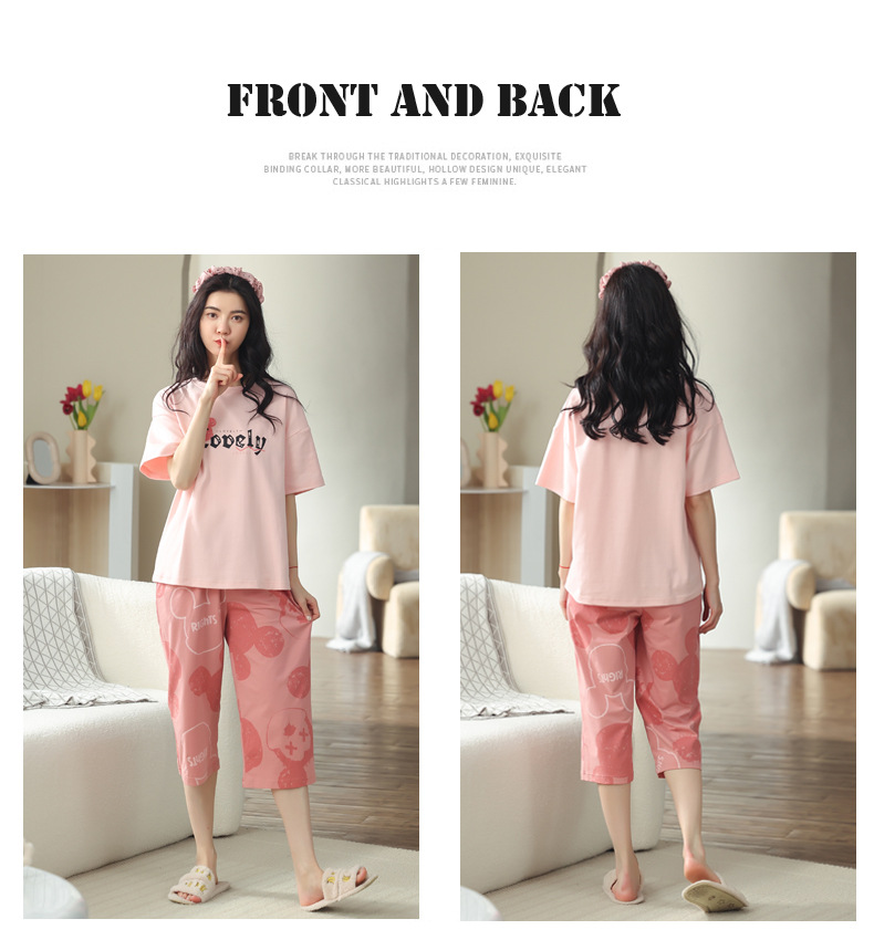 春夏可外穿纯棉7分裤睡衣 甜美休闲简约舒适短袖家居服