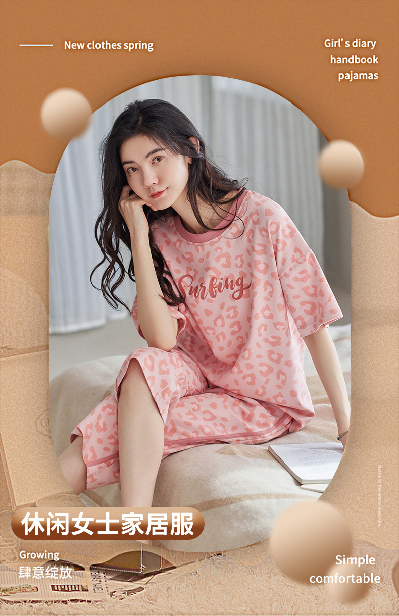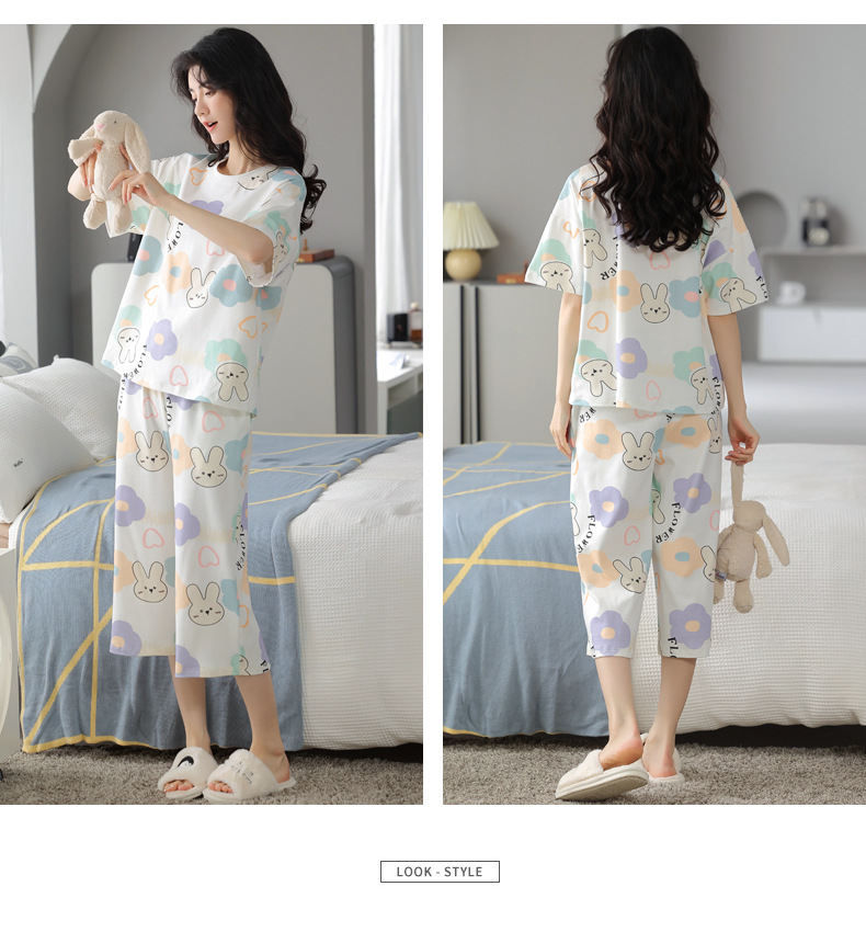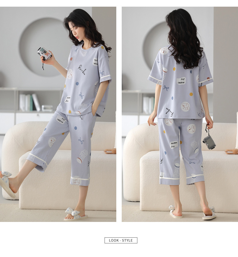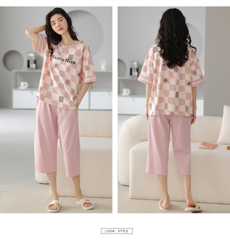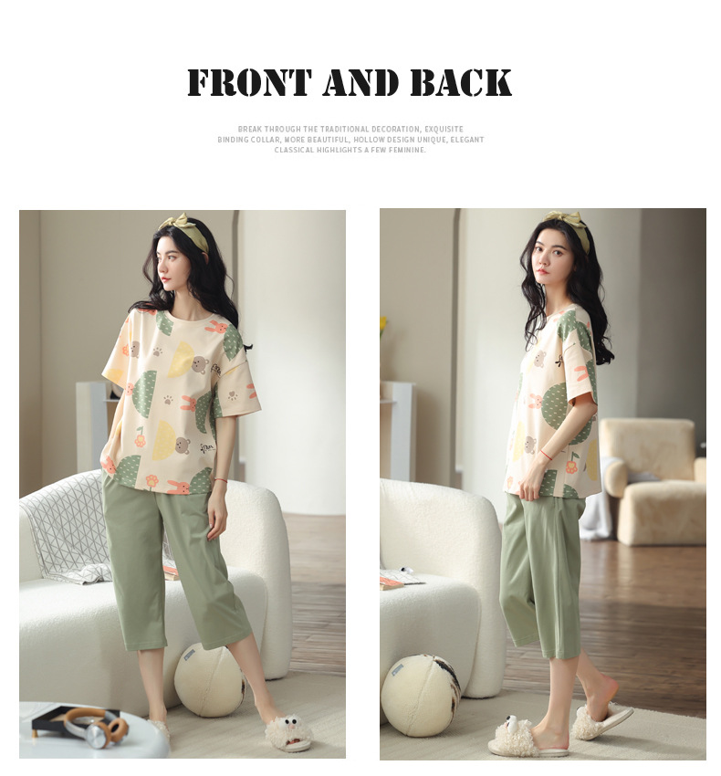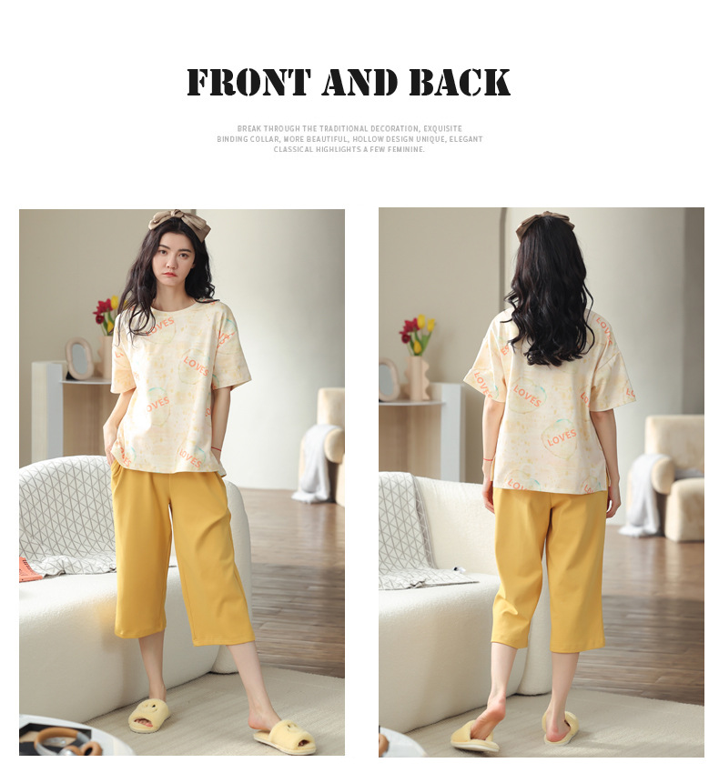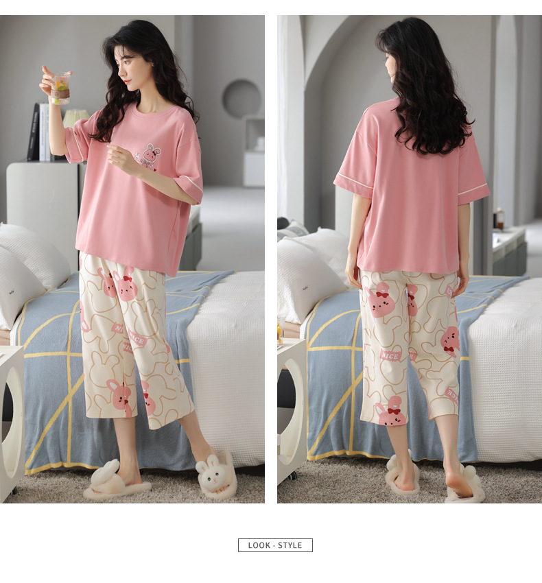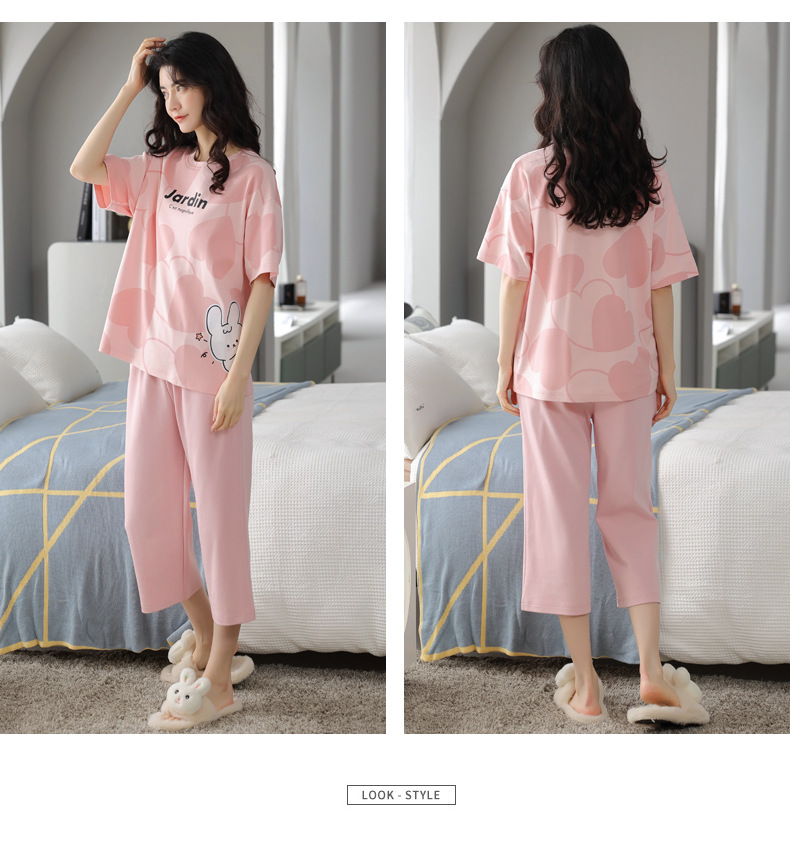春夏可外穿纯棉7分裤睡衣 甜美休闲简约舒适短袖家居服