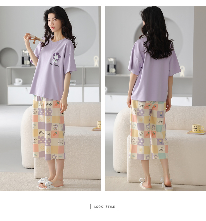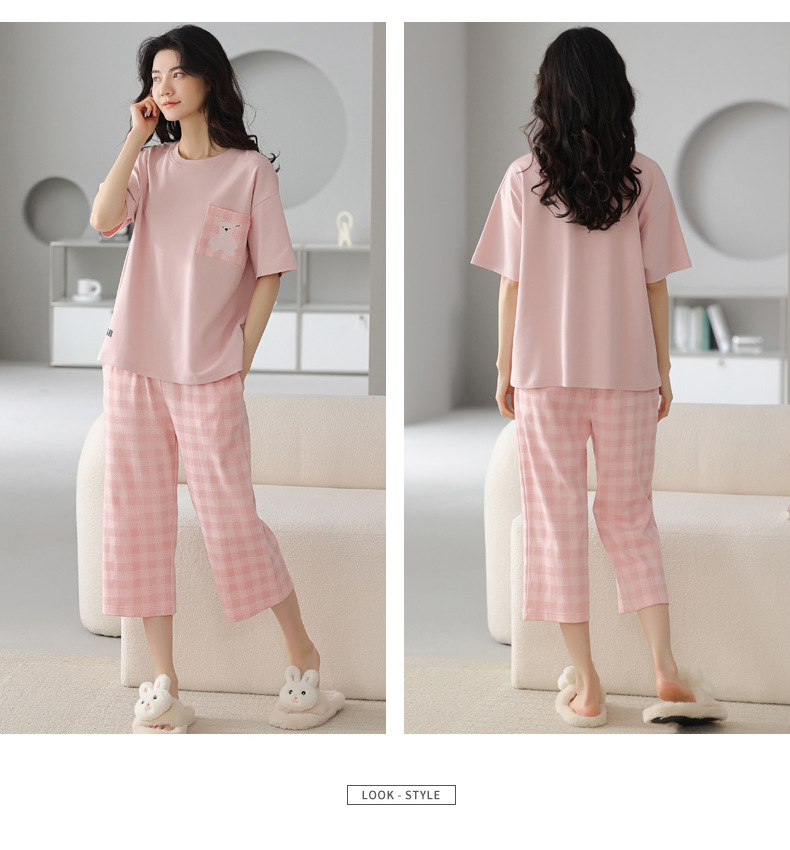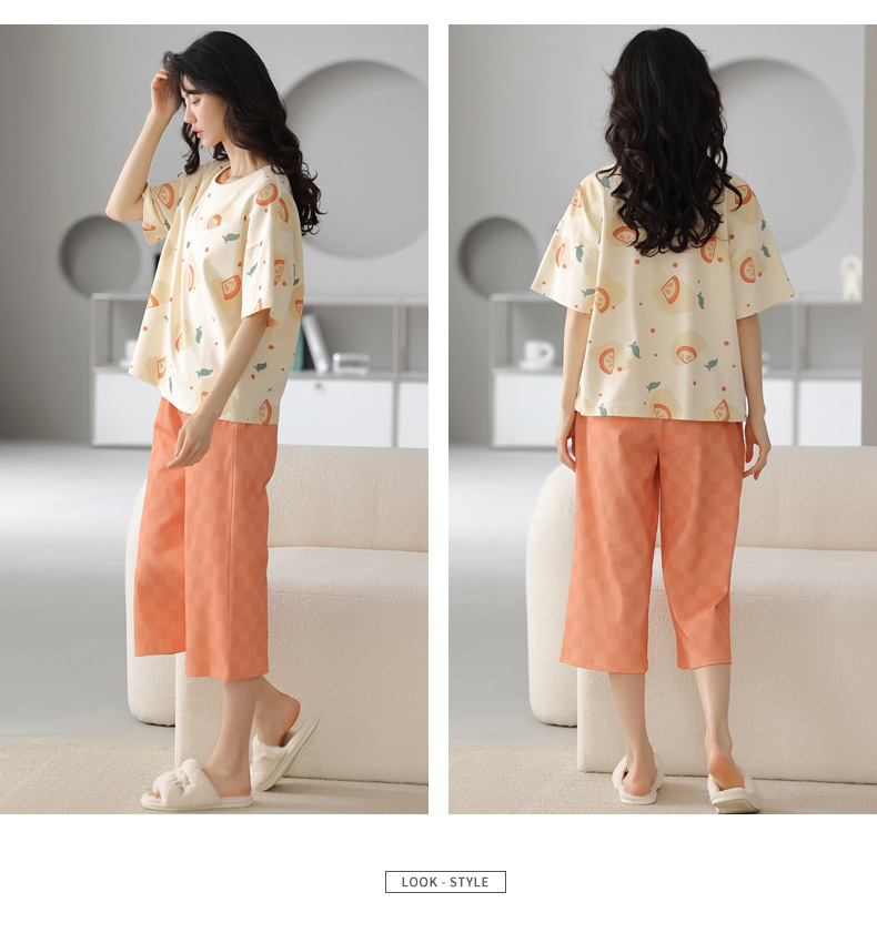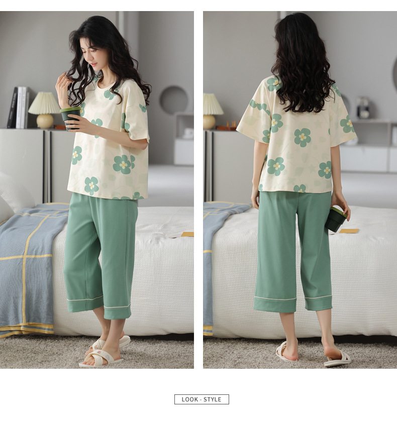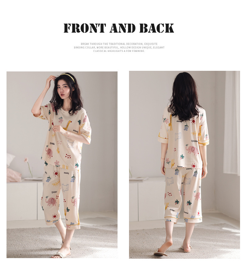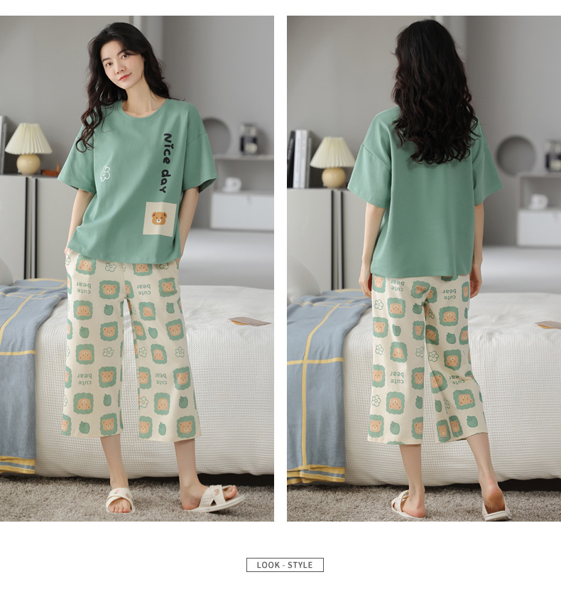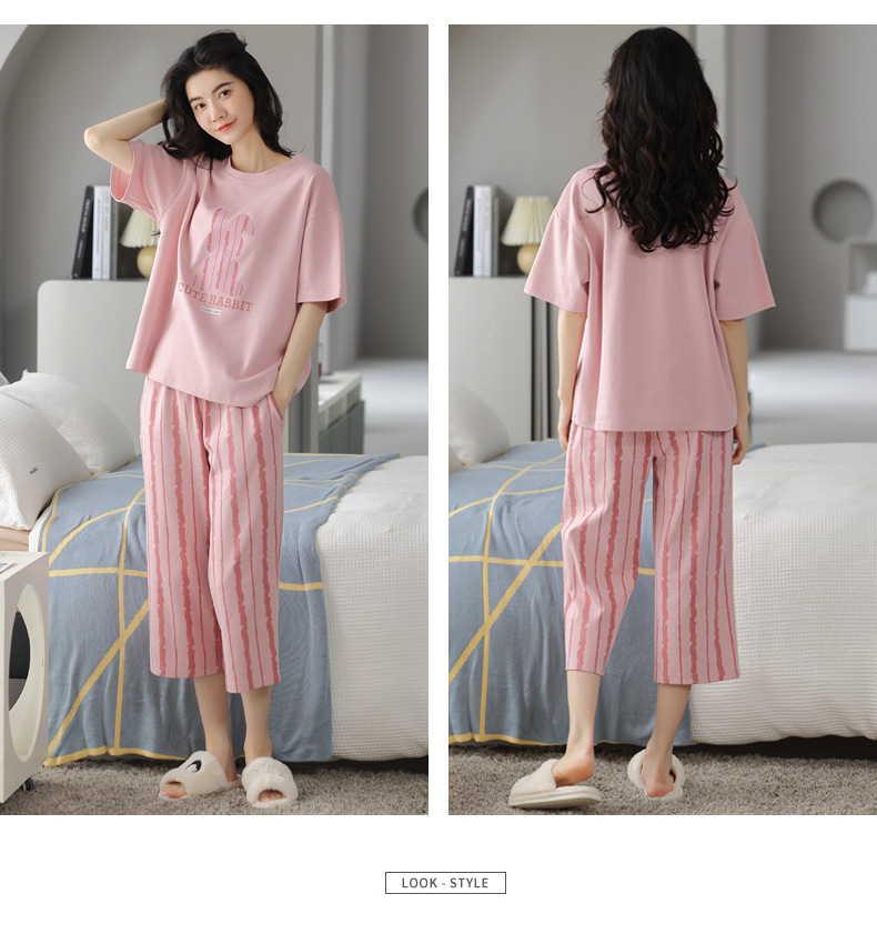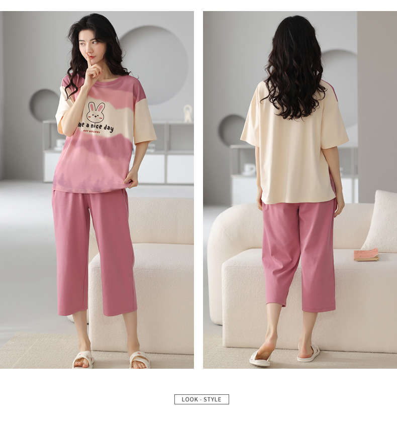 春夏可外穿纯棉7分裤睡衣 甜美休闲简约舒适短袖家居服