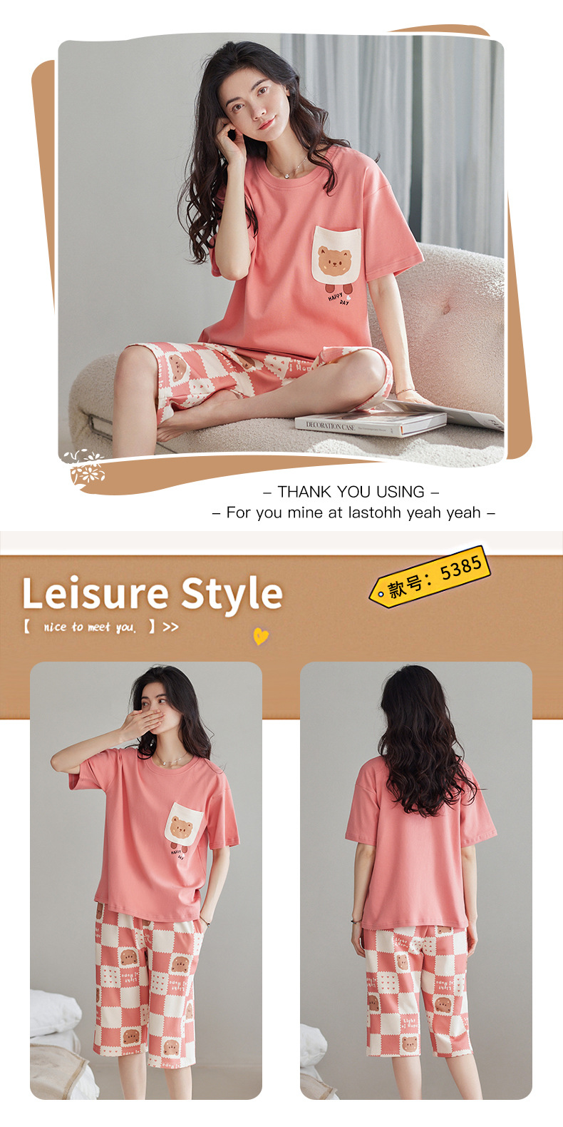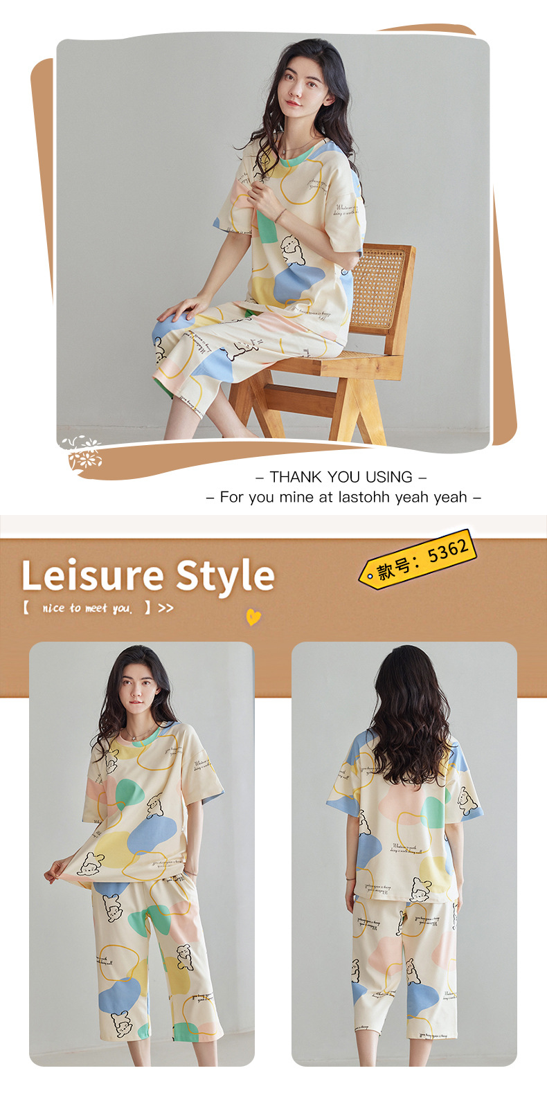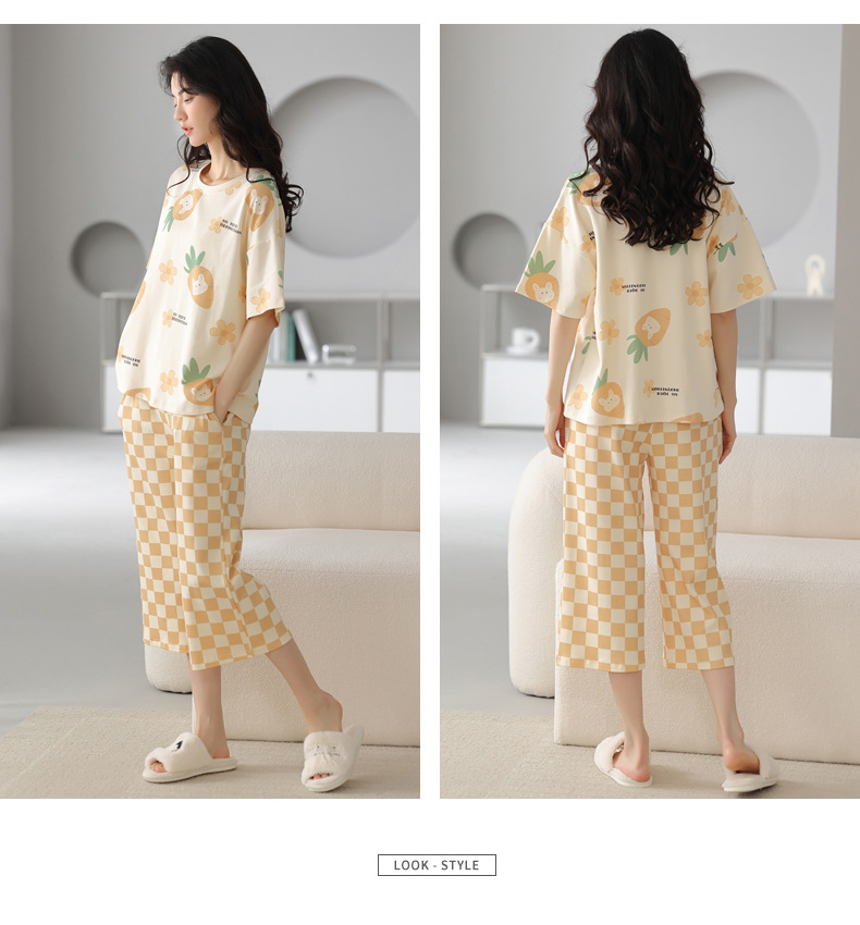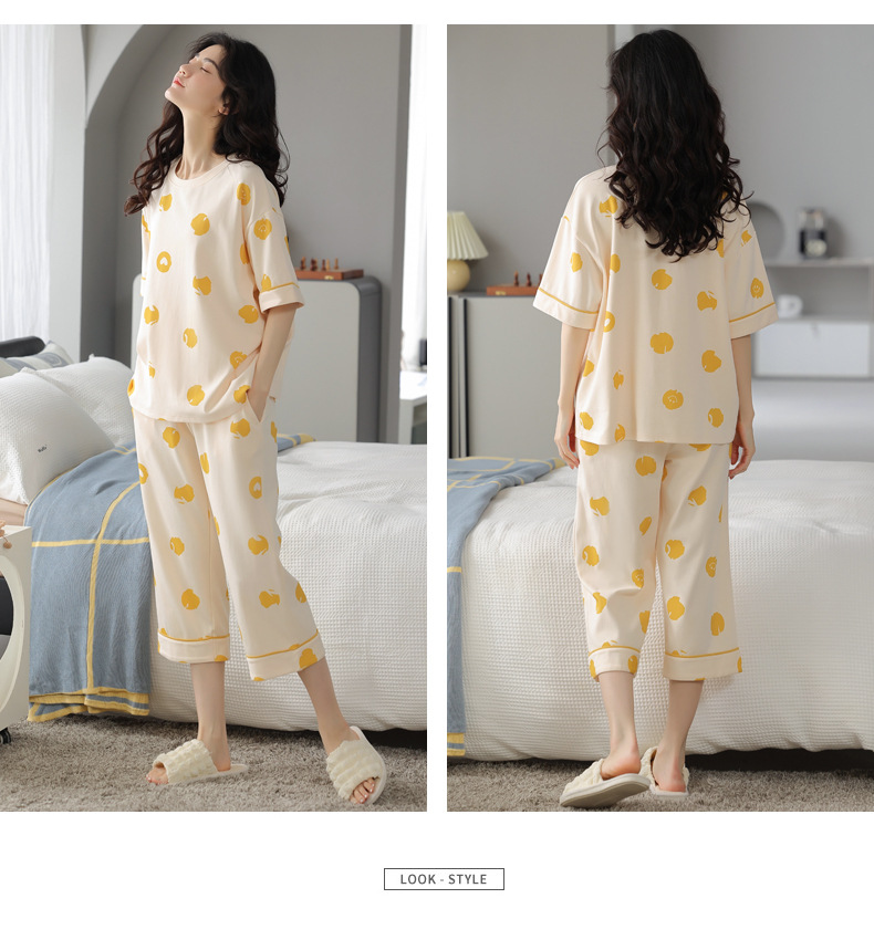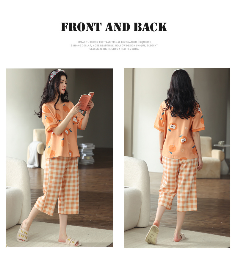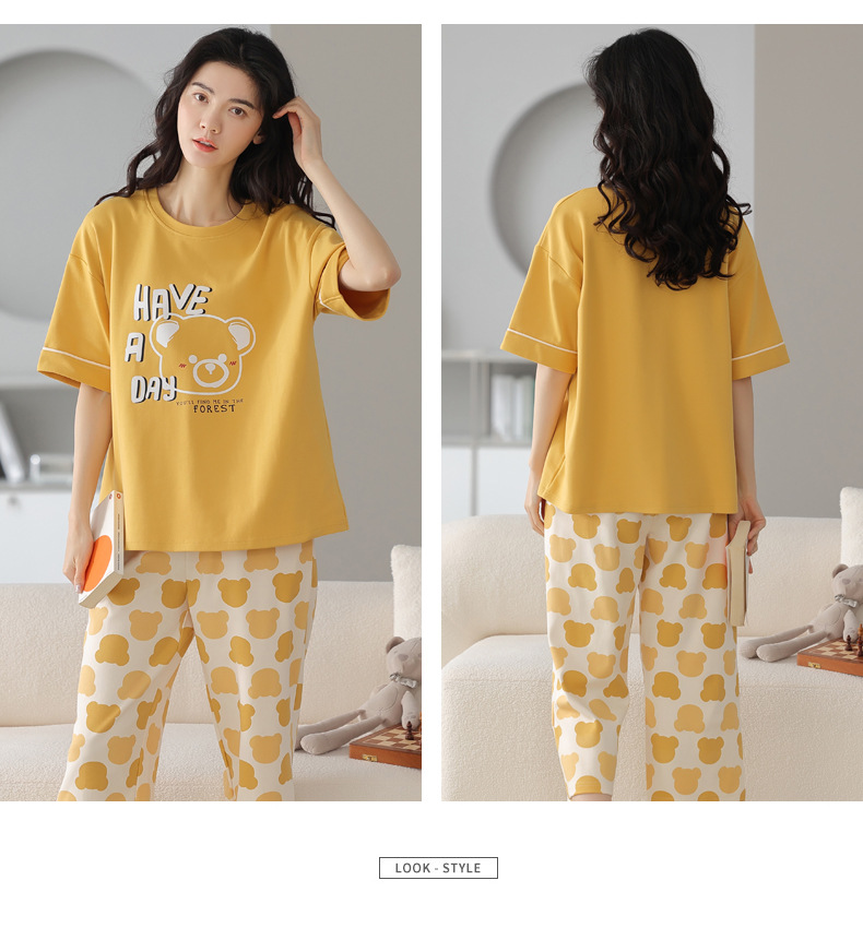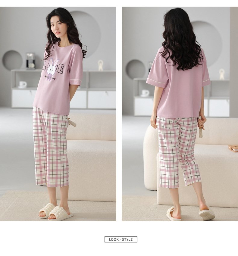 春夏可外穿纯棉7分裤睡衣 甜美休闲简约舒适短袖家居服