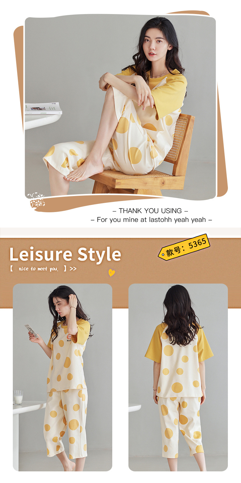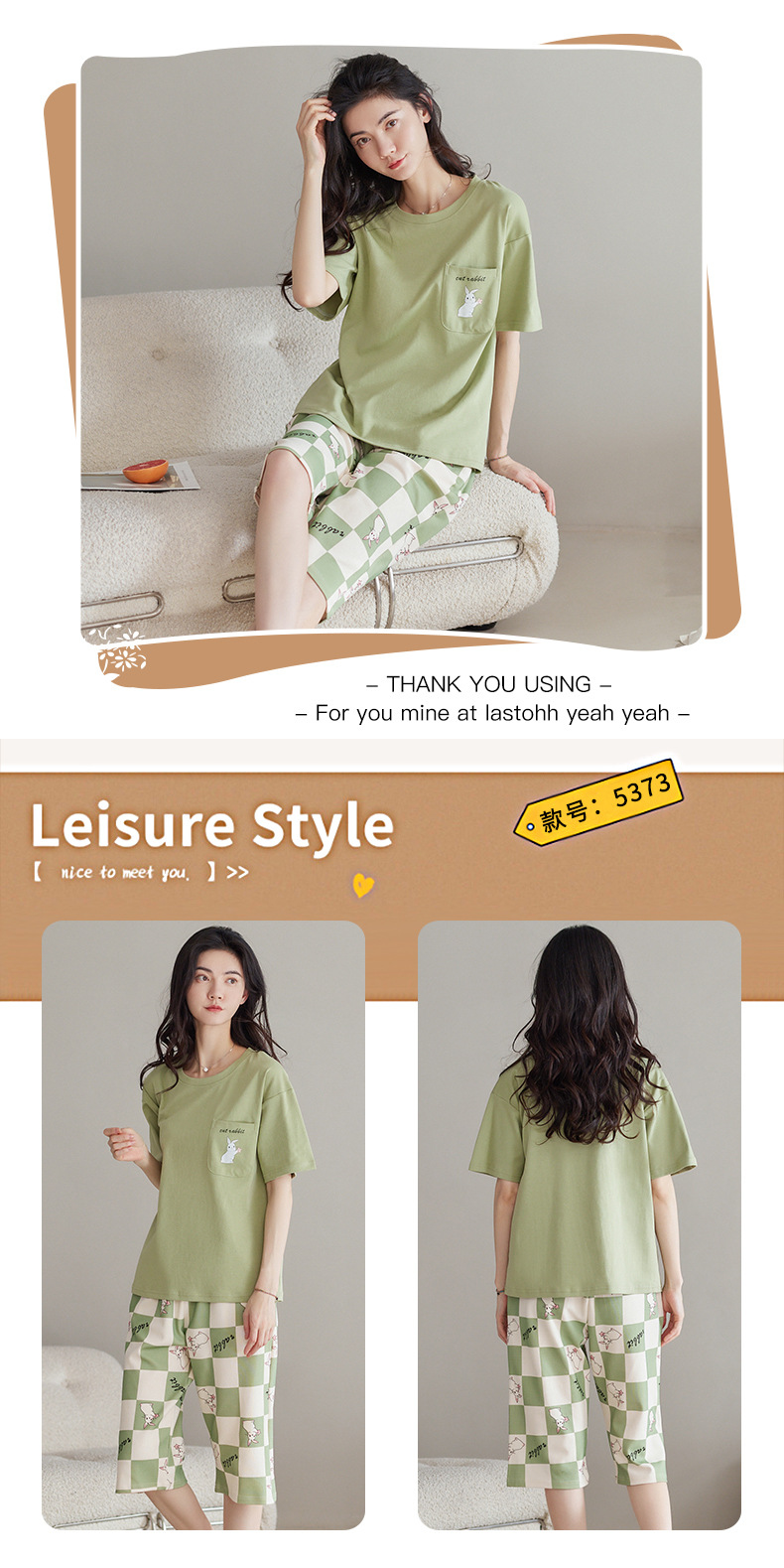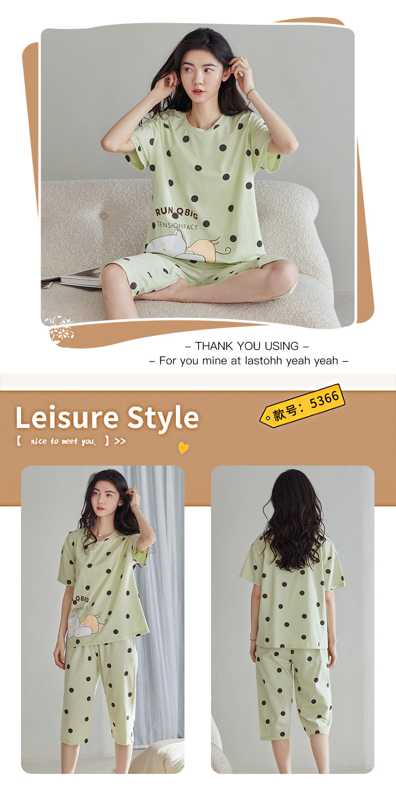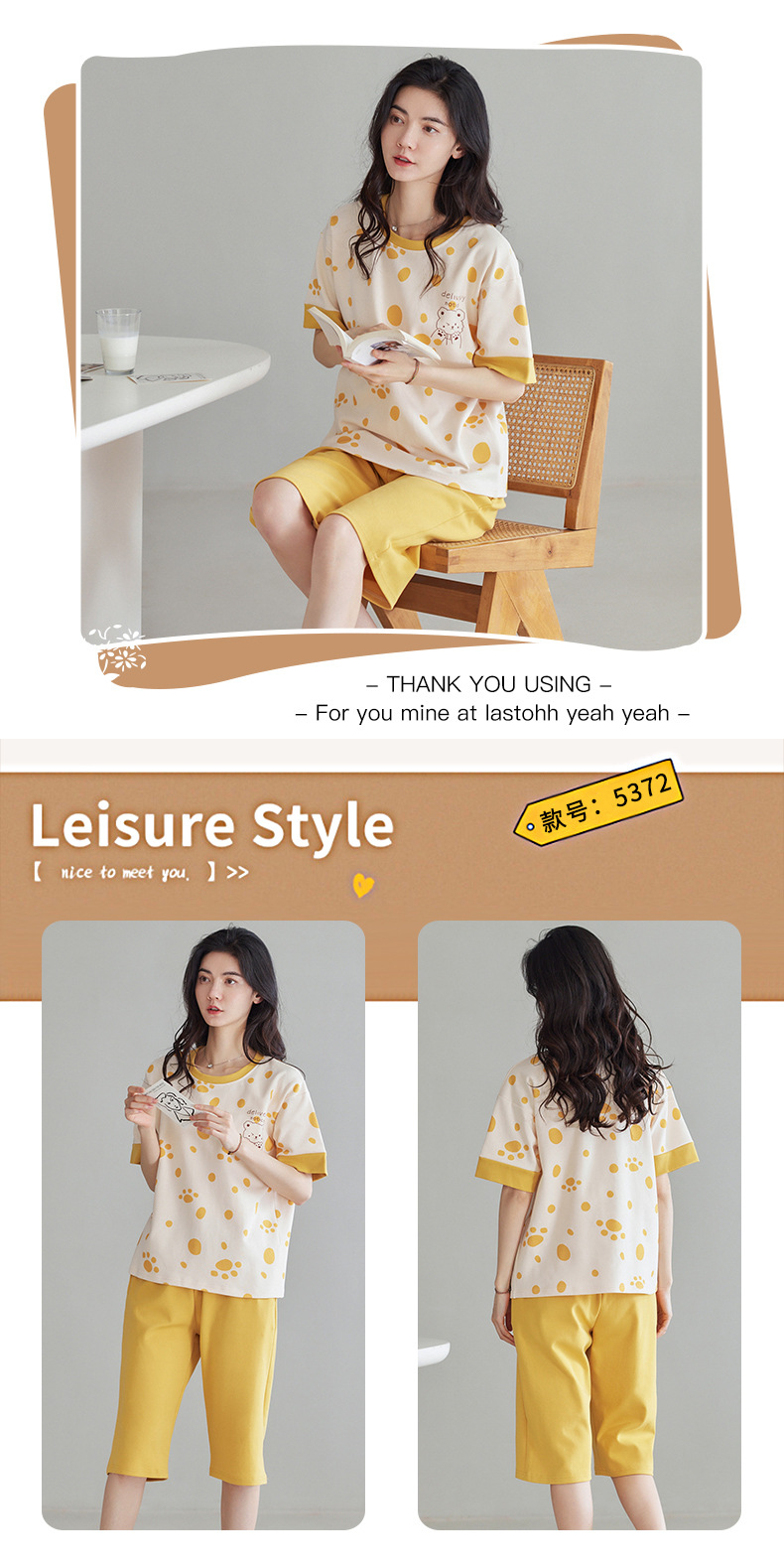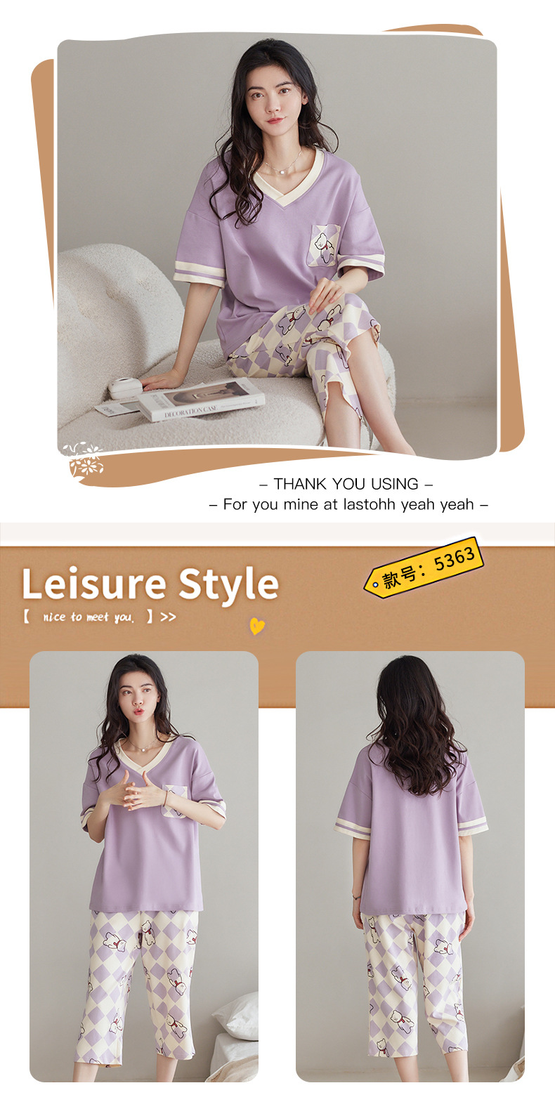 春夏可外穿纯棉7分裤睡衣 甜美休闲简约舒适短袖家居服