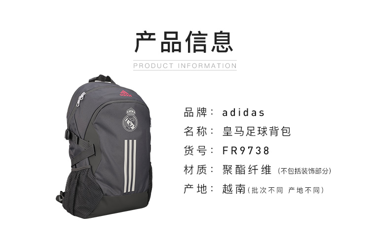 小李子专柜正品ADIDAS阿迪达斯运动训练皇马双肩包装备包男FR9738