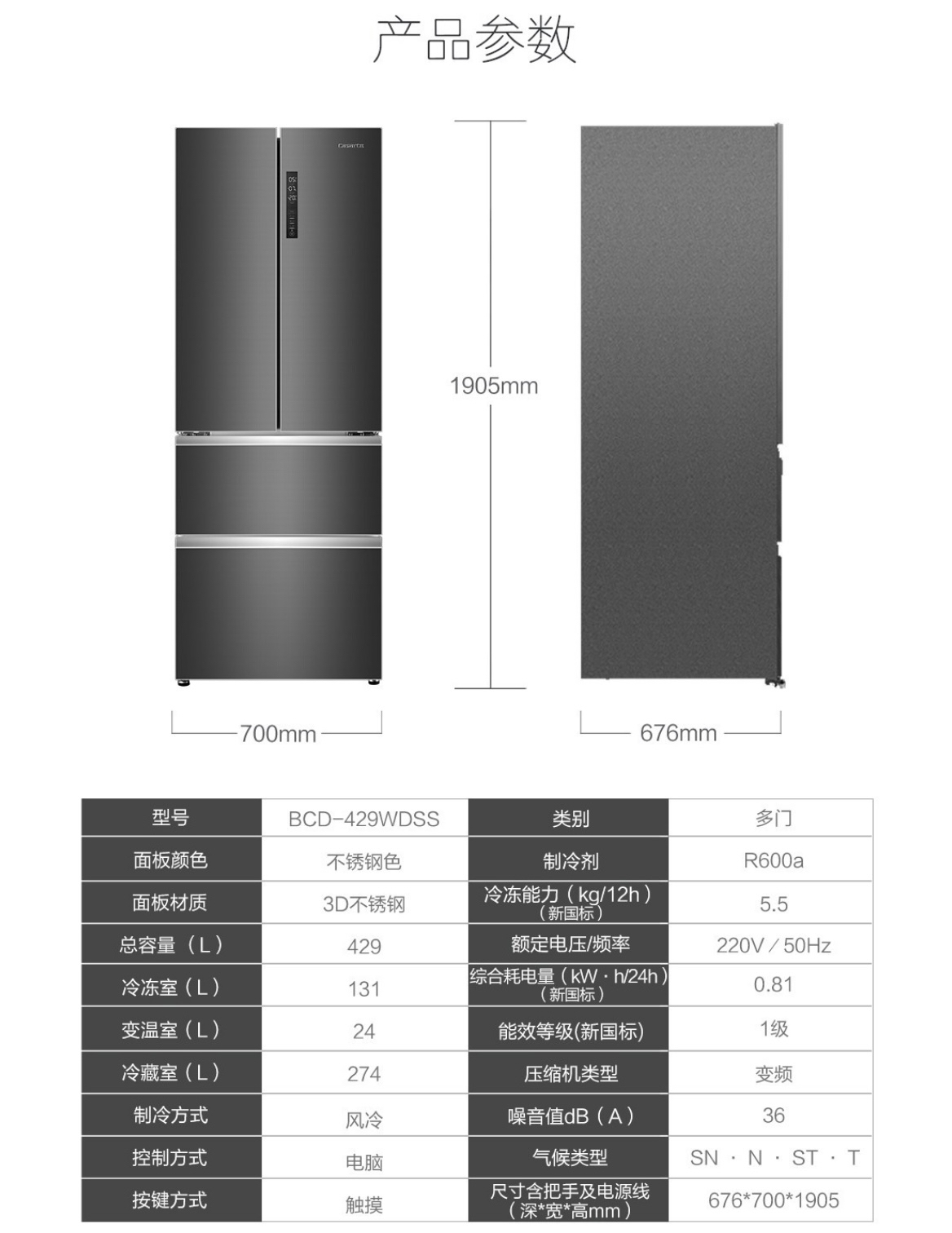 卡萨帝(Casarte)冰箱BCD-429WDSS