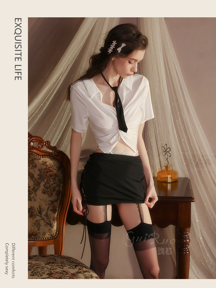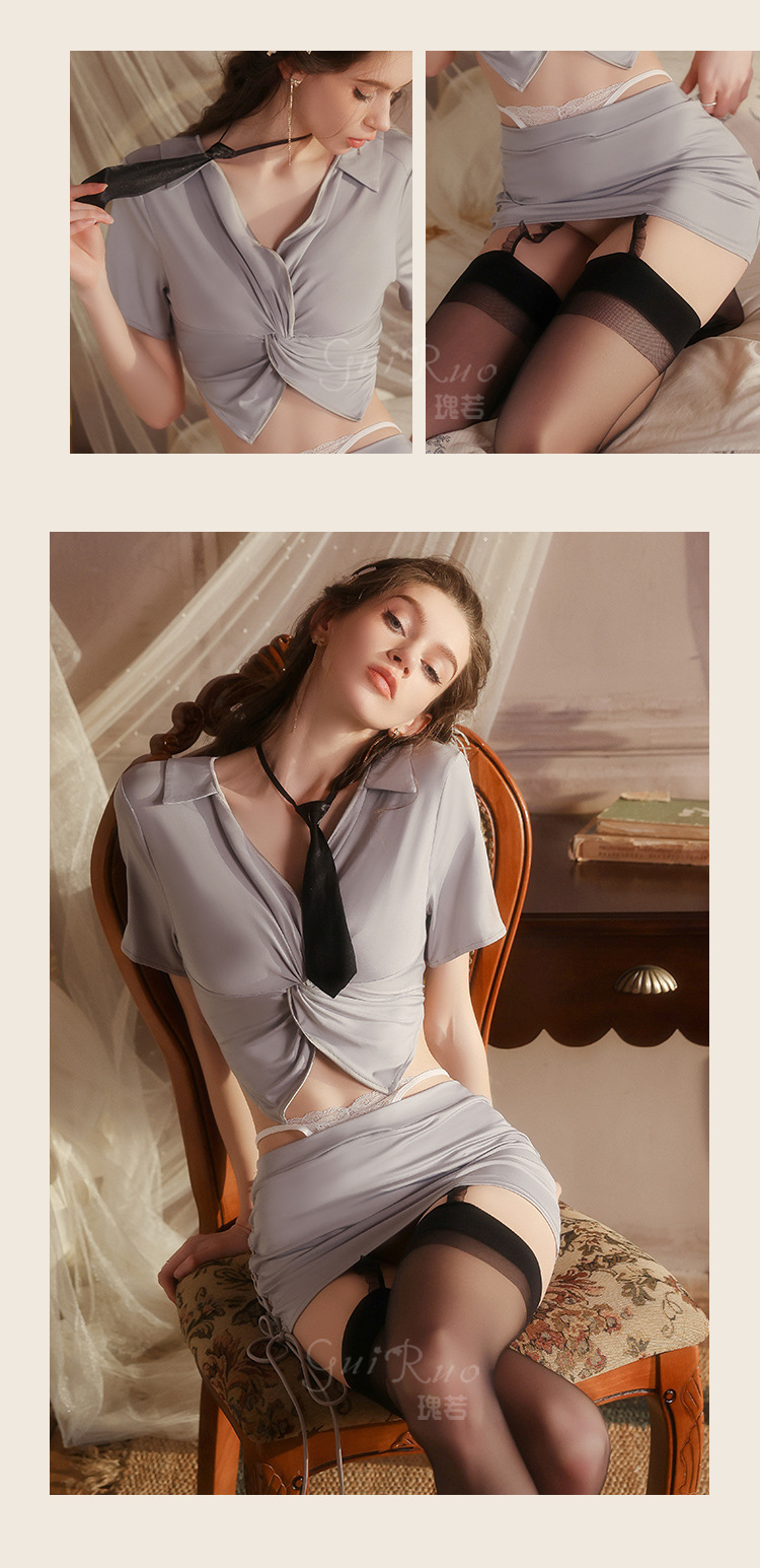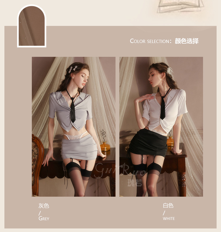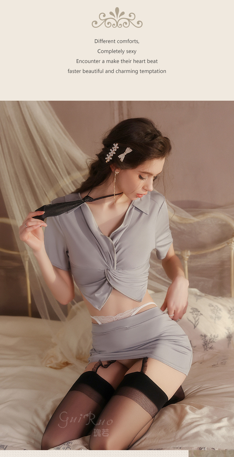 【YW】无忧购“3.8春日礼遇”情趣内衣轻奢诱惑冰丝性感露腰包臀短裙OL制服套装4988(截单后3-5天发货)