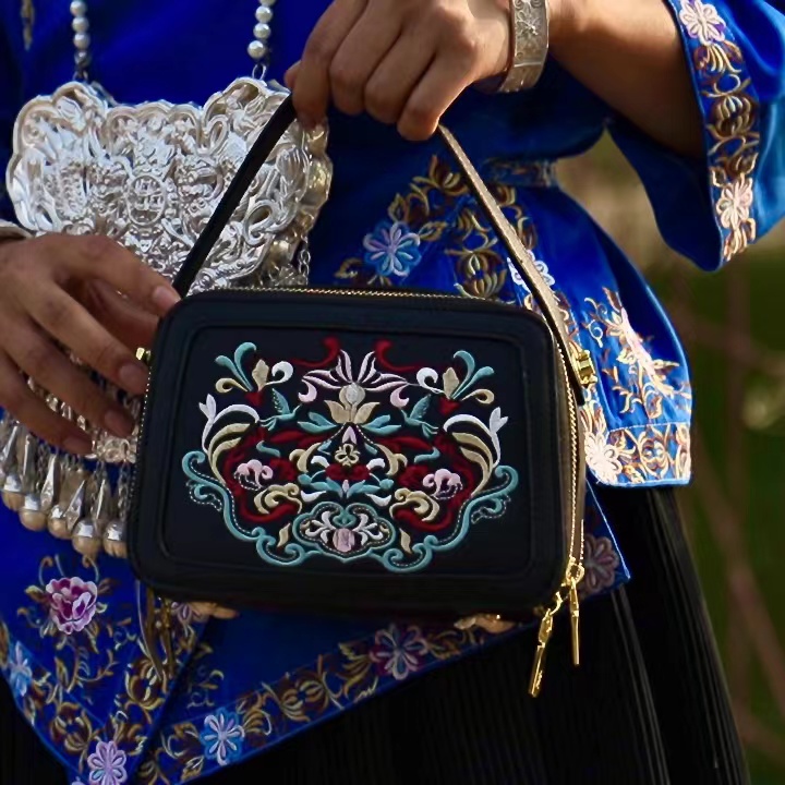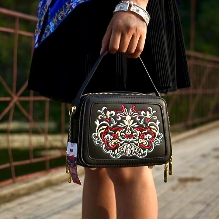 深山集市 刺绣单肩手提斜挎包