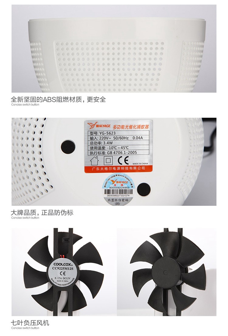 雅格 家用带诱蚊剂灭蚊灯 静音精准波段 YG-5624(包邮直发)