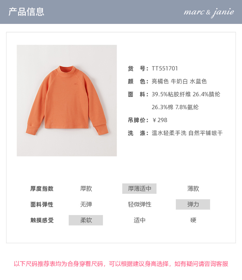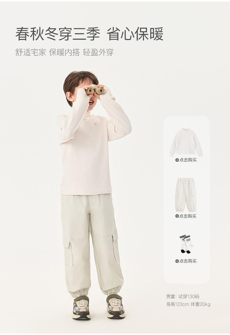 【科技发热】马克珍妮男童防风保暖绒绒高领打底衫秋冬新款551701