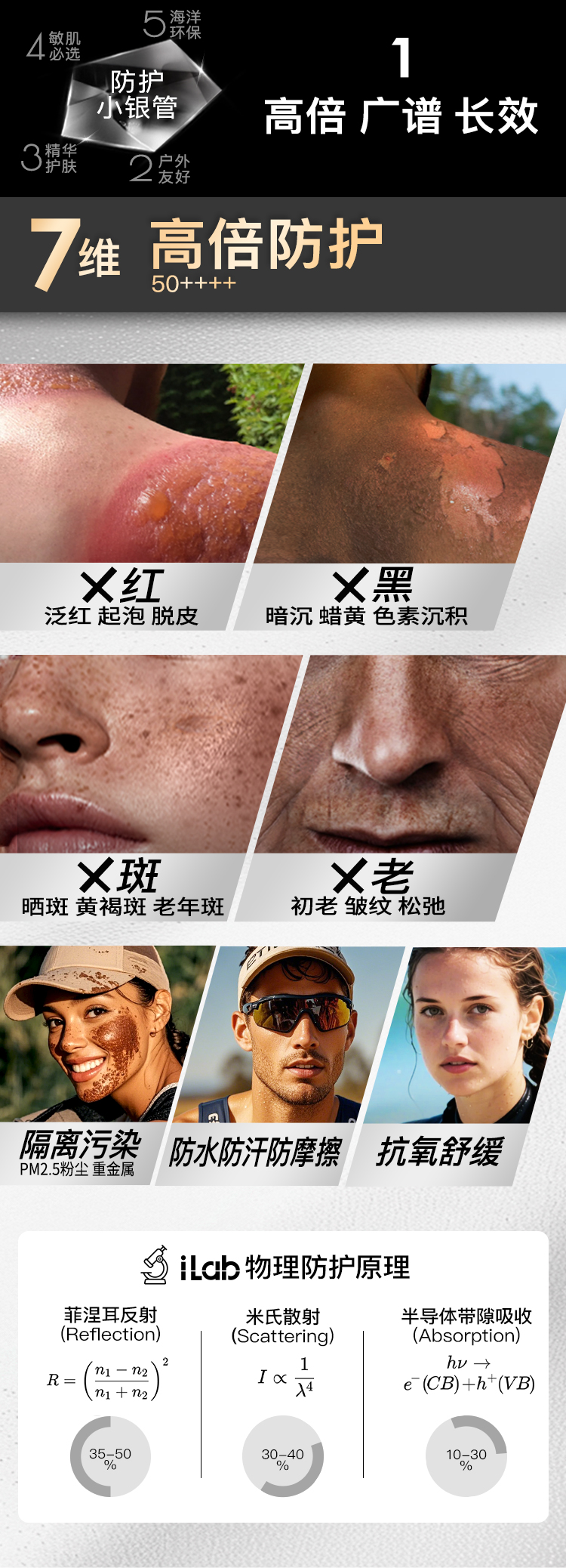iLab艾莱博物理防护小银管(舒敏保湿)脸部及身体精华乳50++++