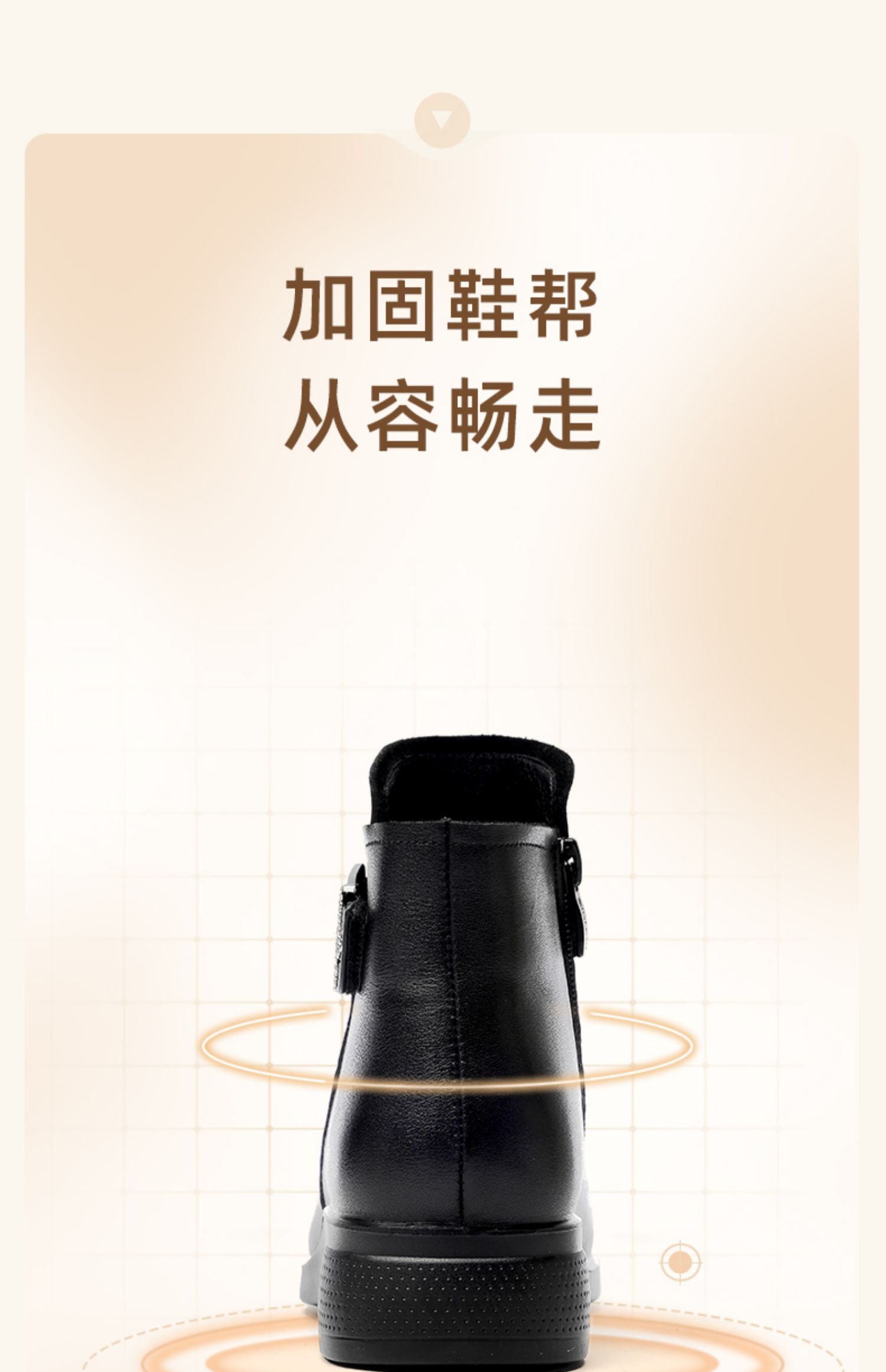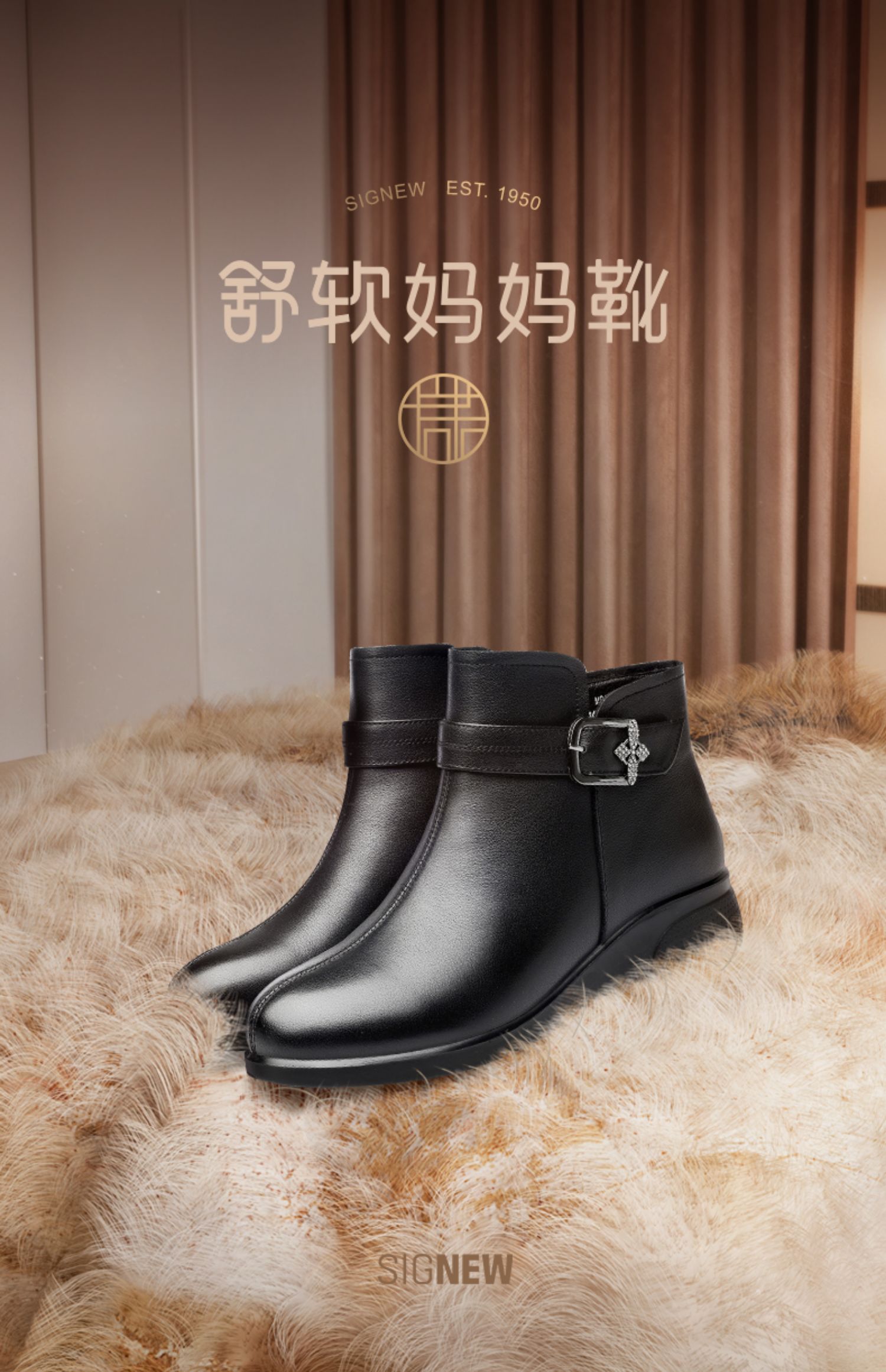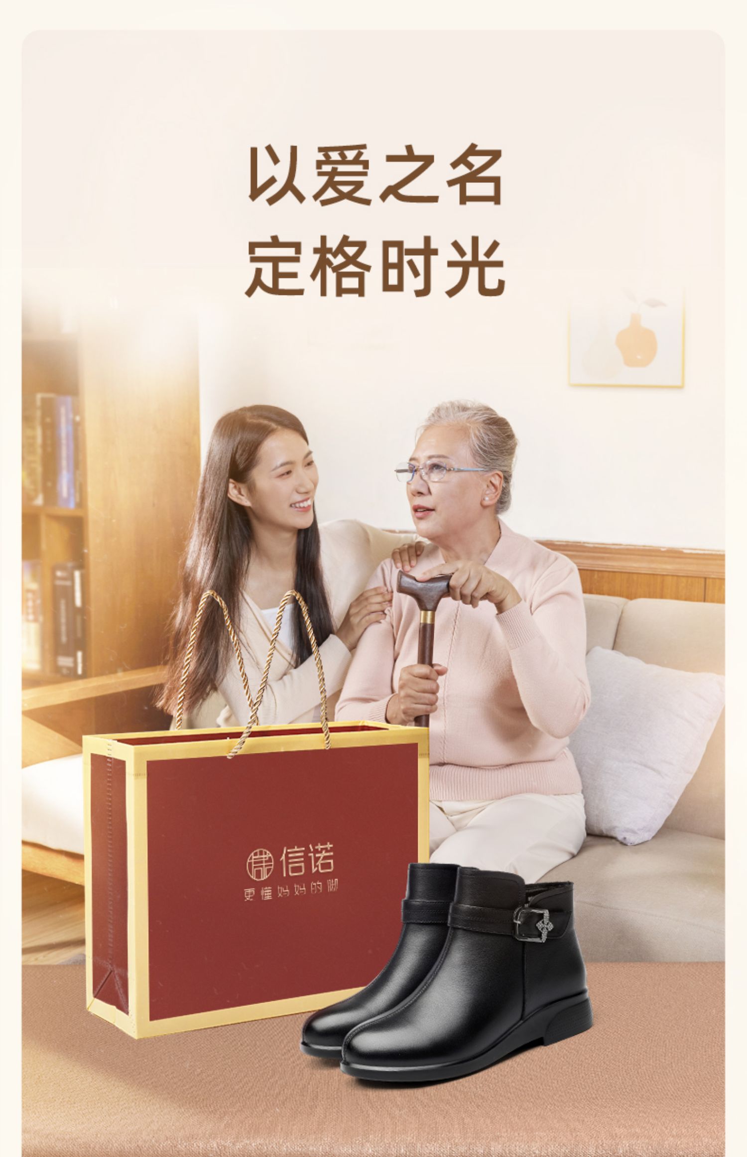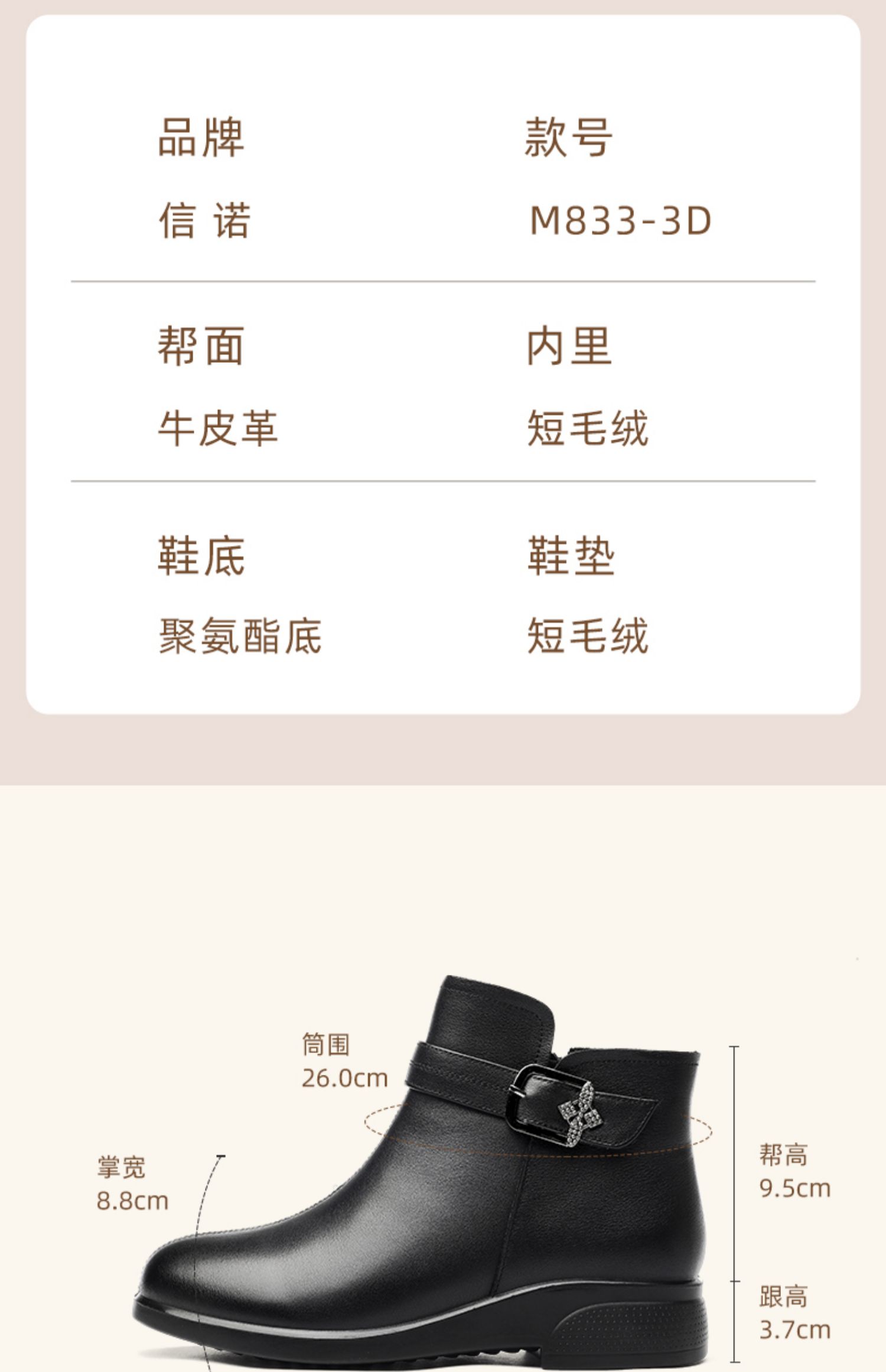 信诺真皮舒适短靴女士2024新款秋冬加绒保暖妈妈棉鞋短筒靴子皮鞋M833-3D
