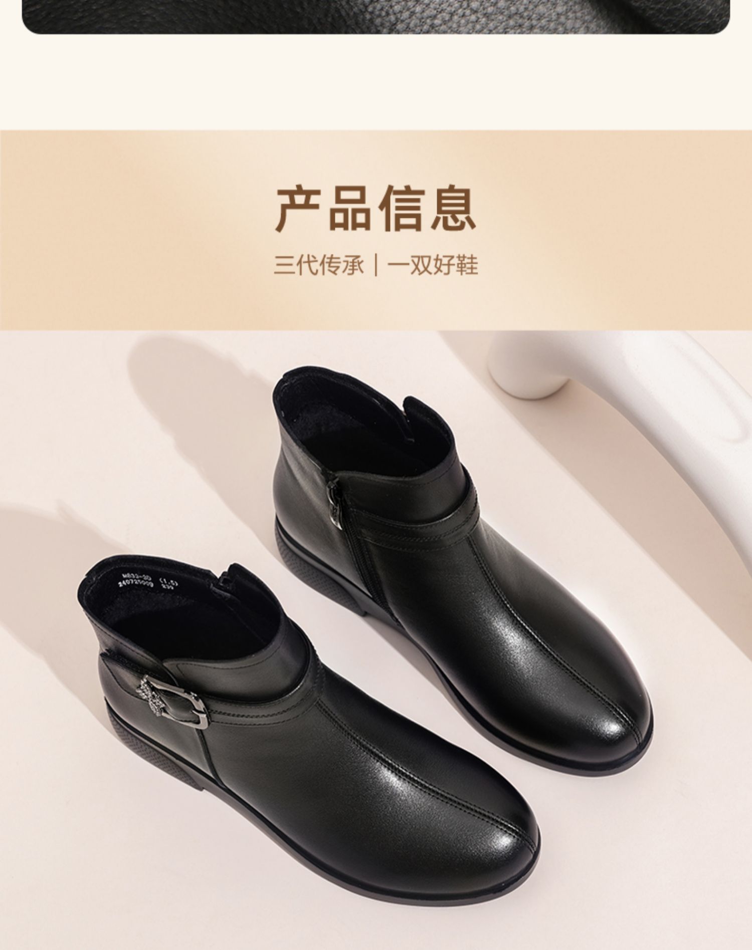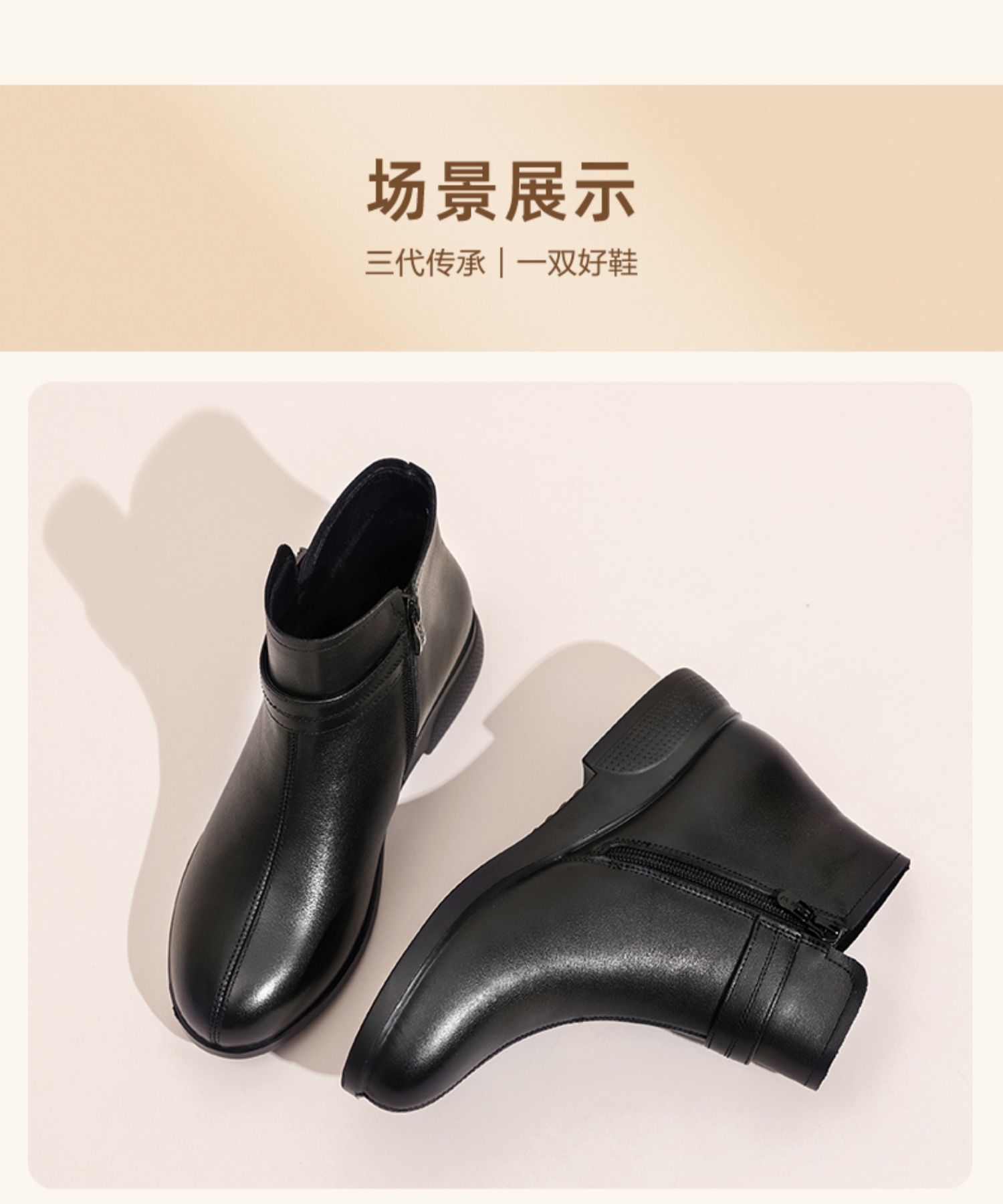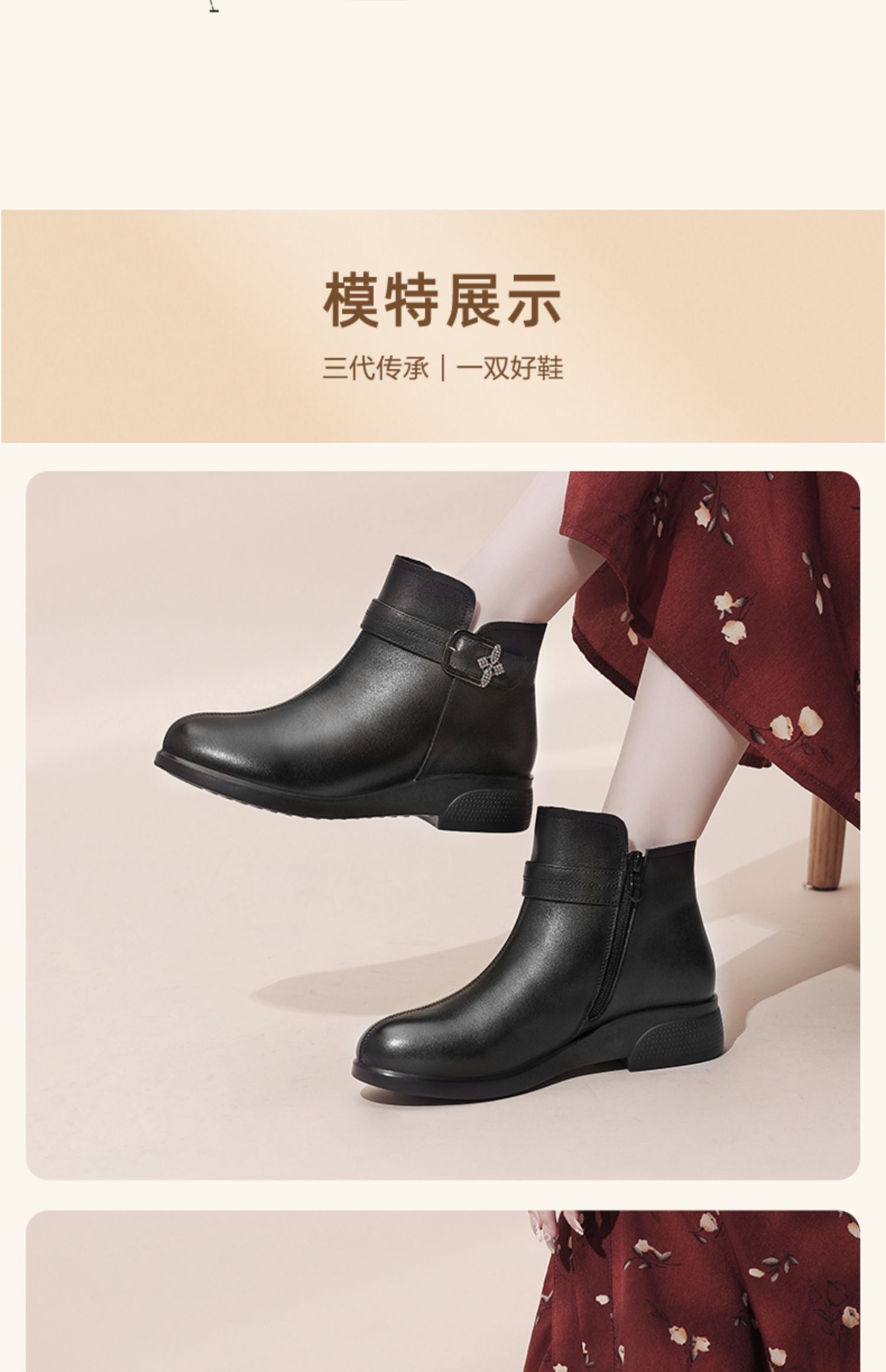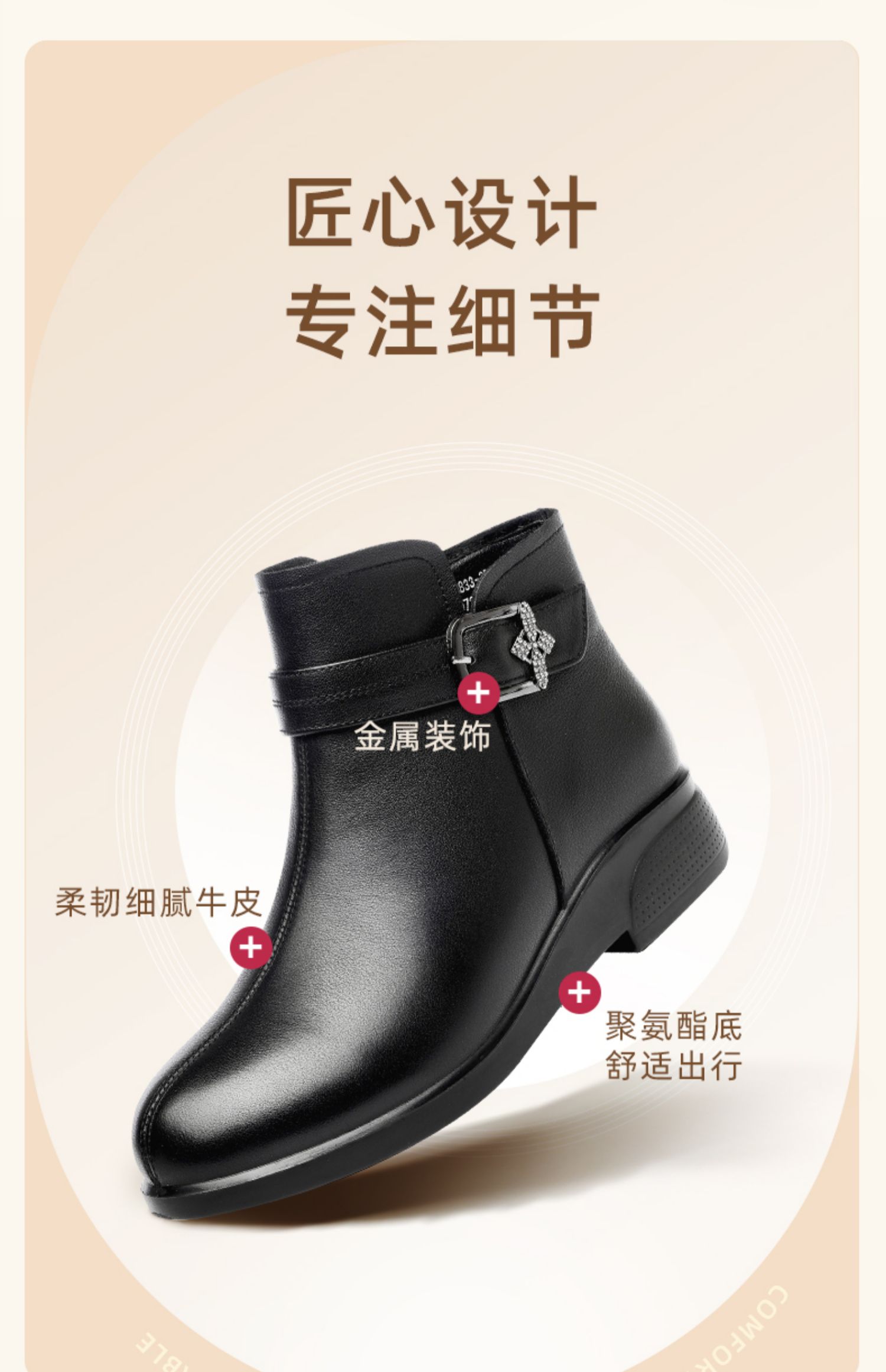 信诺真皮舒适短靴女士2024新款秋冬加绒保暖妈妈棉鞋短筒靴子皮鞋M833-3D