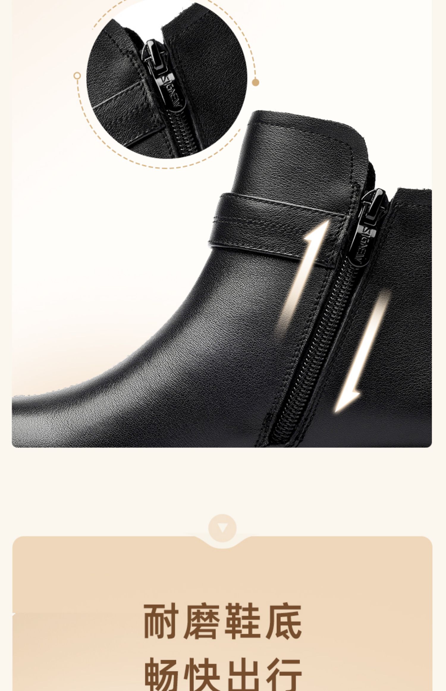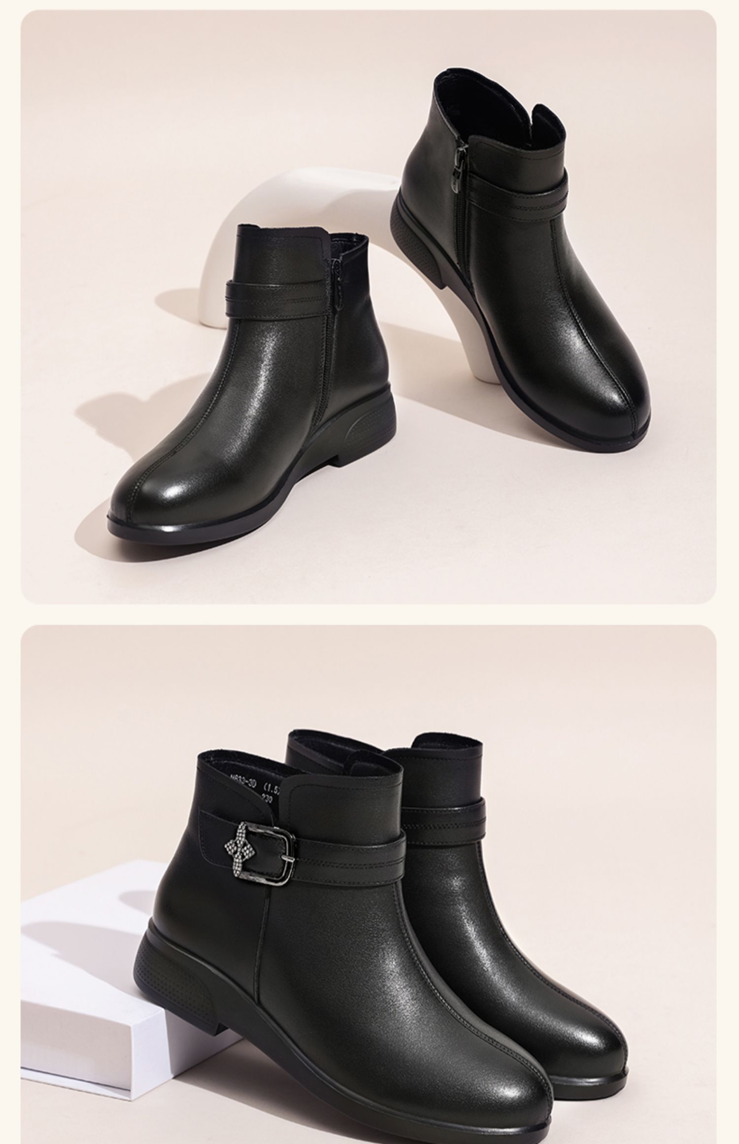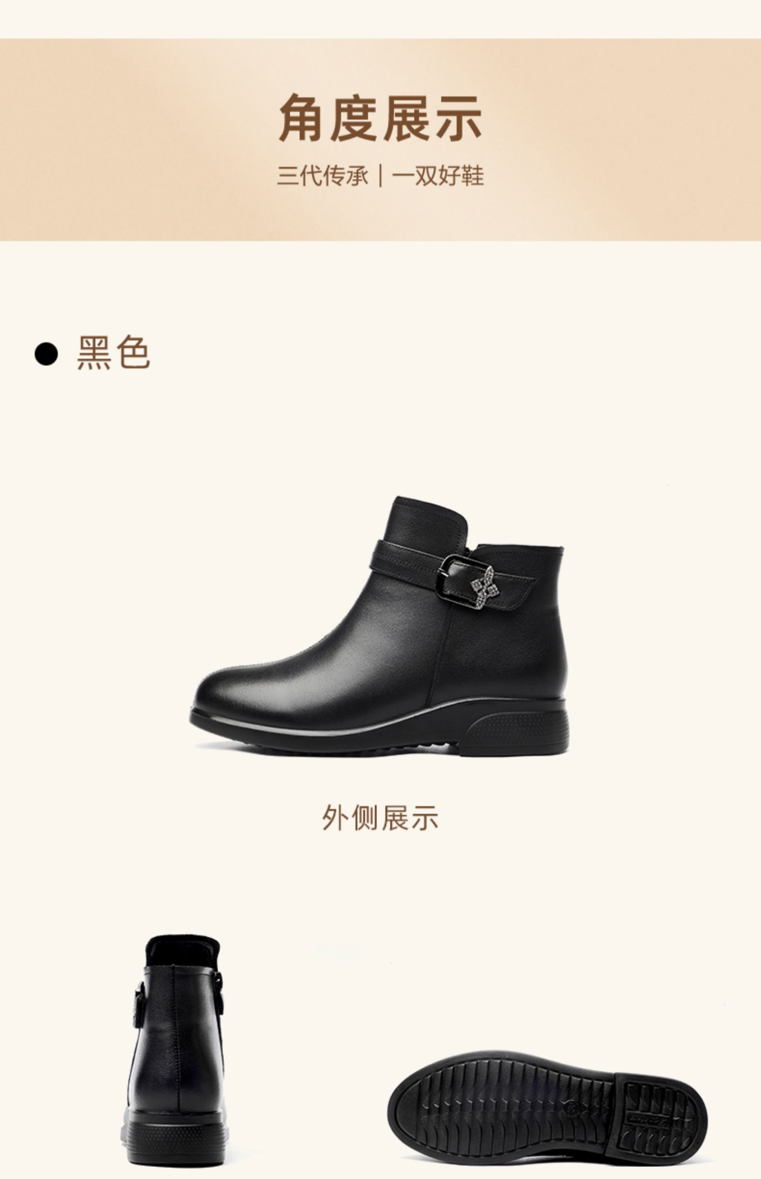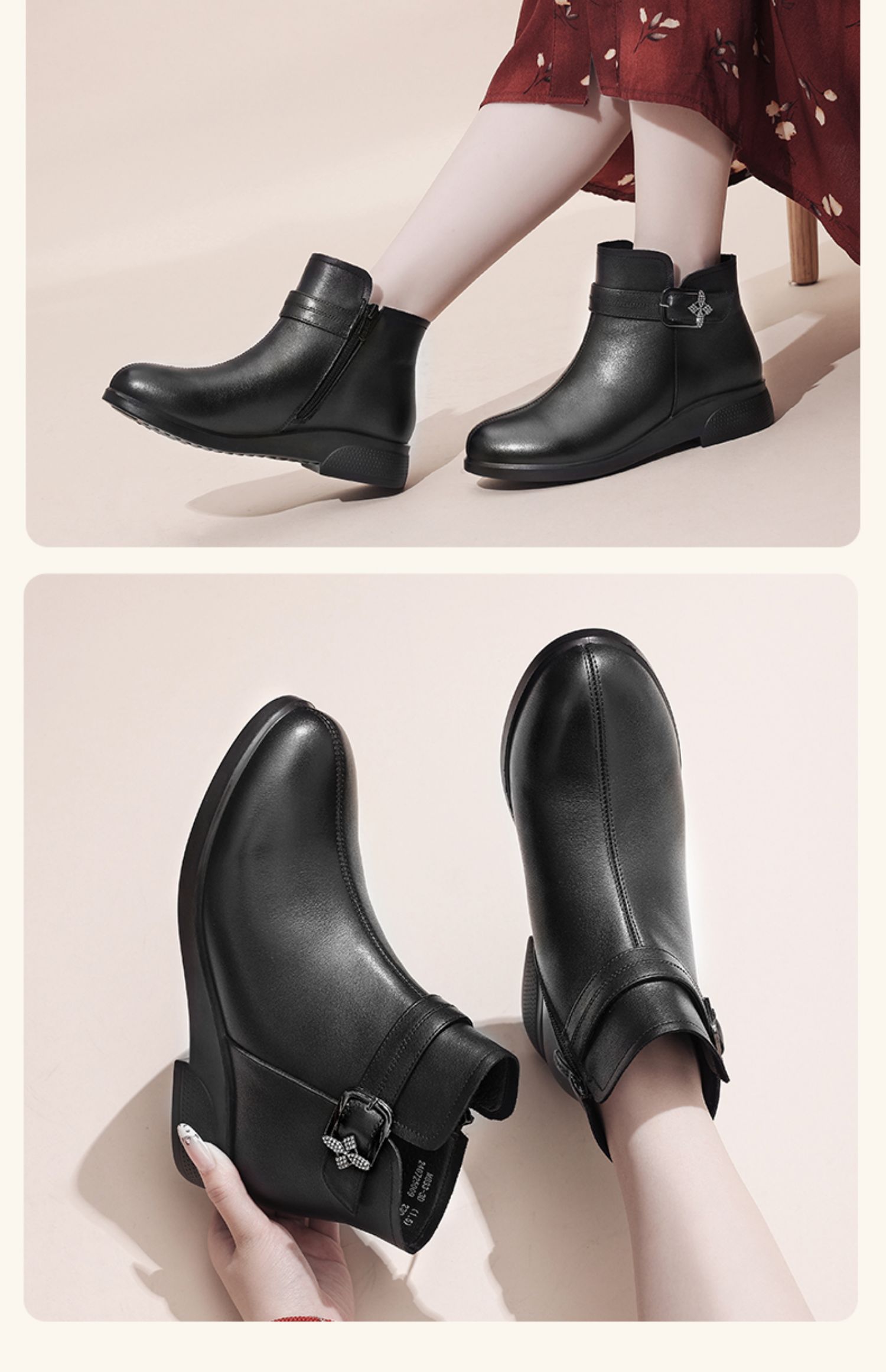 信诺真皮舒适短靴女士2024新款秋冬加绒保暖妈妈棉鞋短筒靴子皮鞋M833-3D