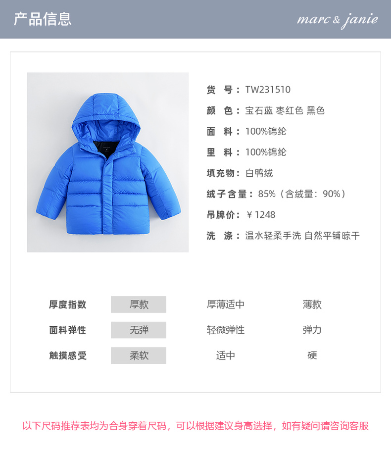 【三防】马克珍妮冬装男童超轻加厚连帽保暖羽绒服231510