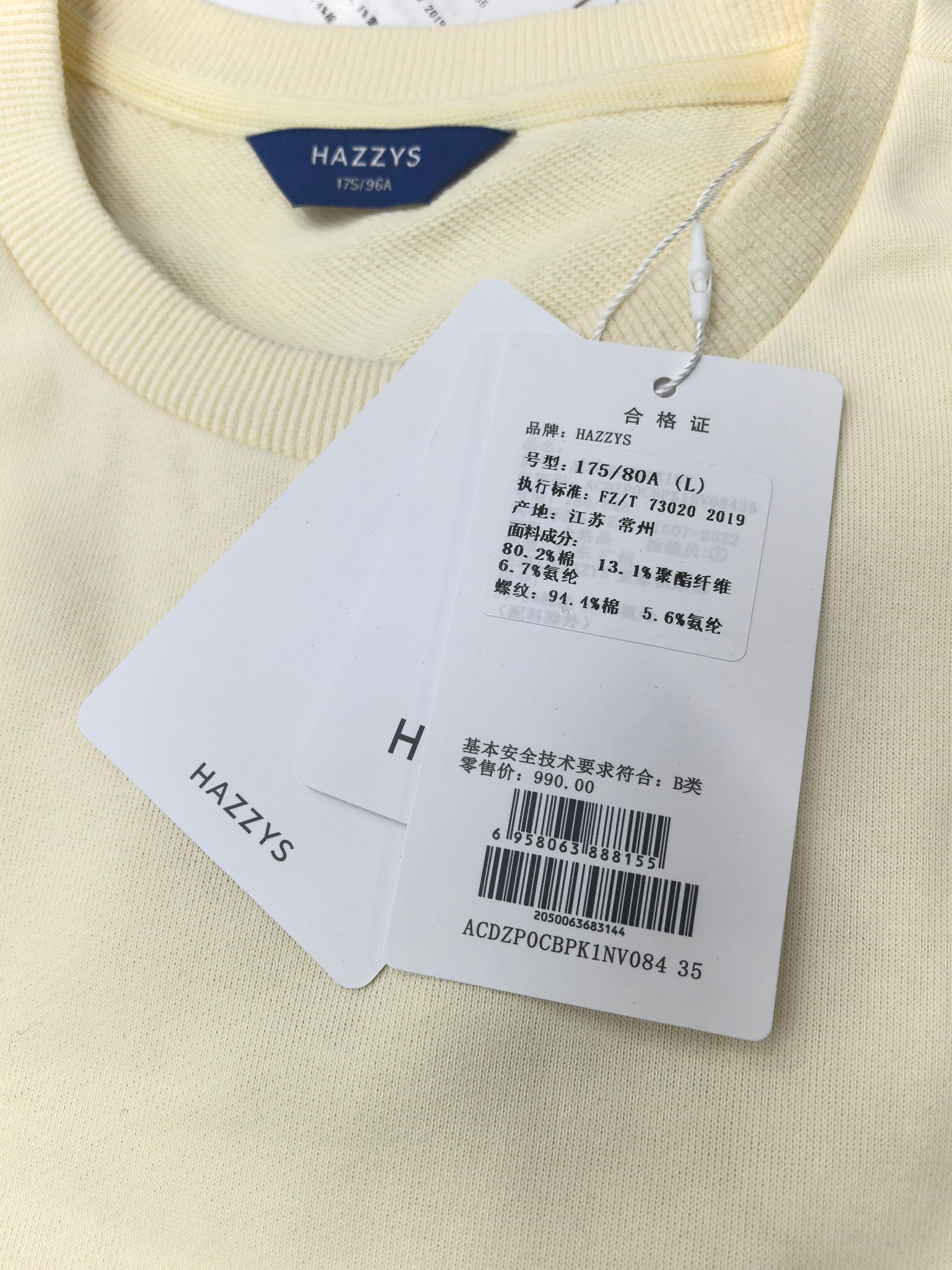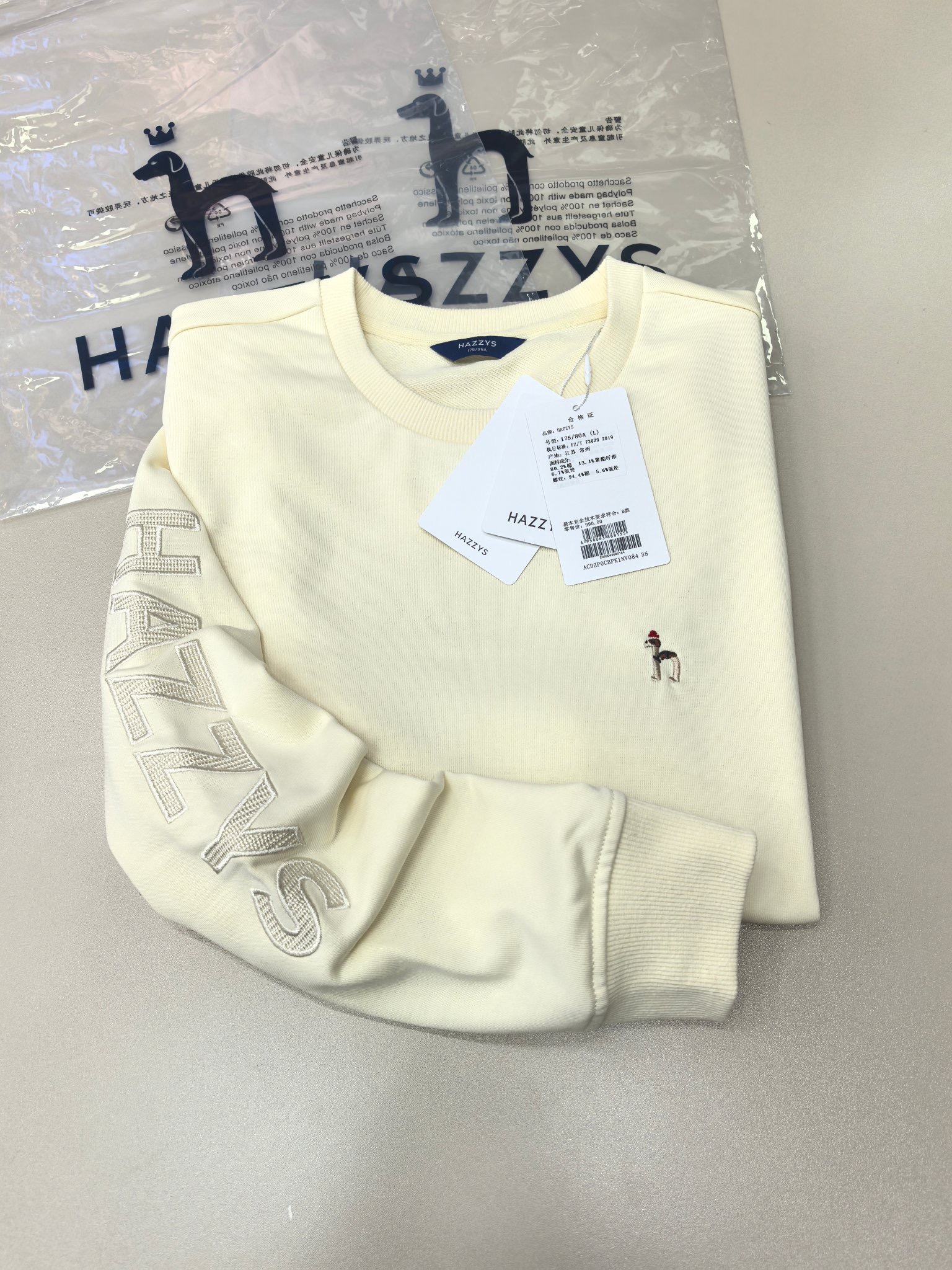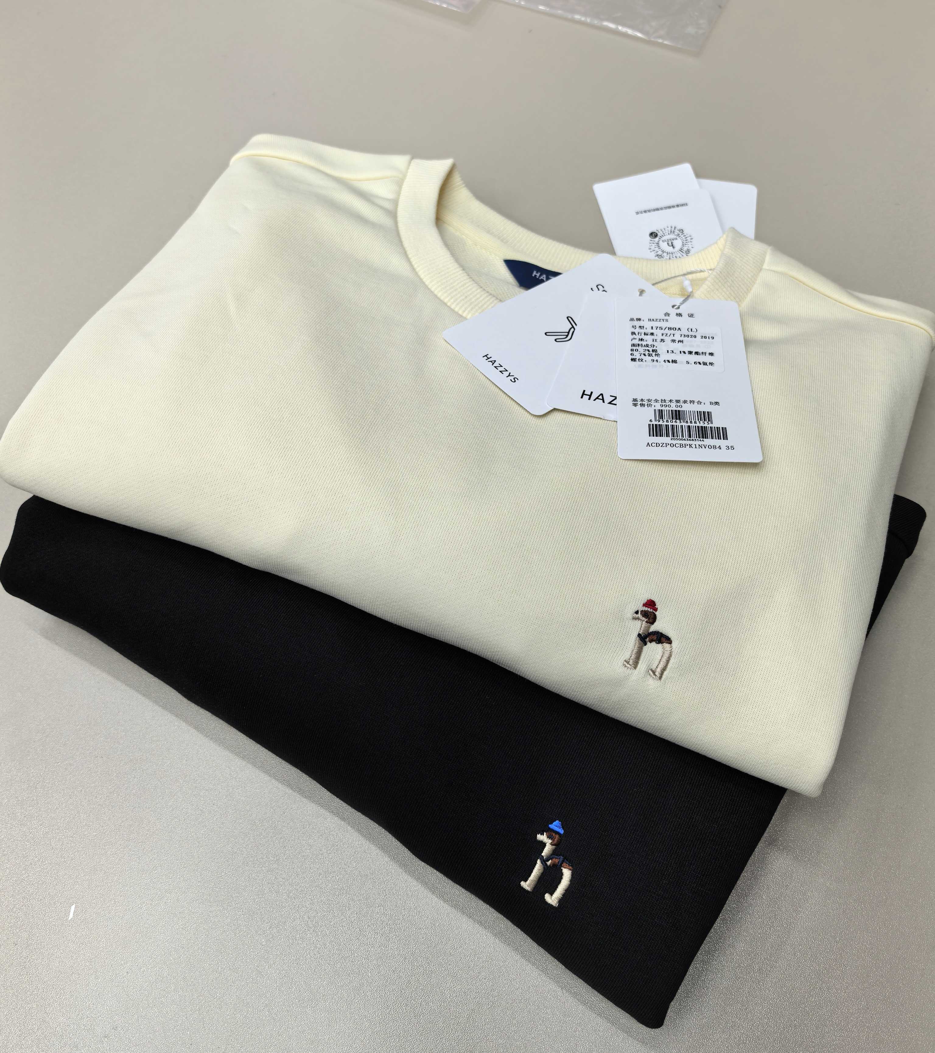 H@zzys哈吉斯纯色简约刺绣卫衣
