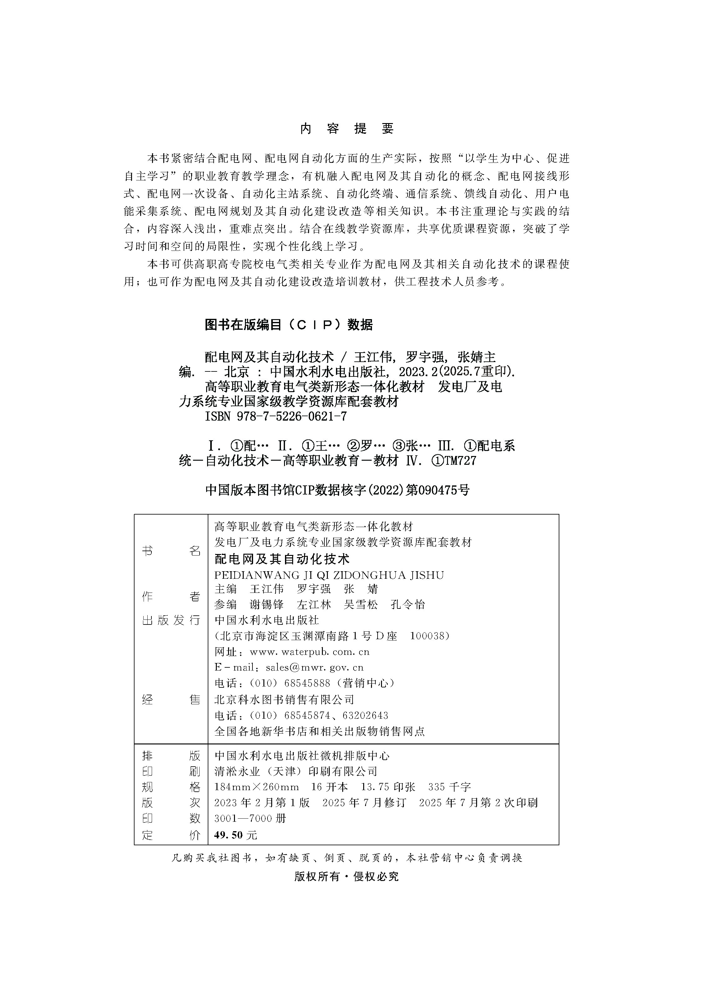 配电网及其自动化技术(高等职业教育电气类新形态一体化教材 发电厂及电力系统专业国家级教学资源库配套教材) &0621/01