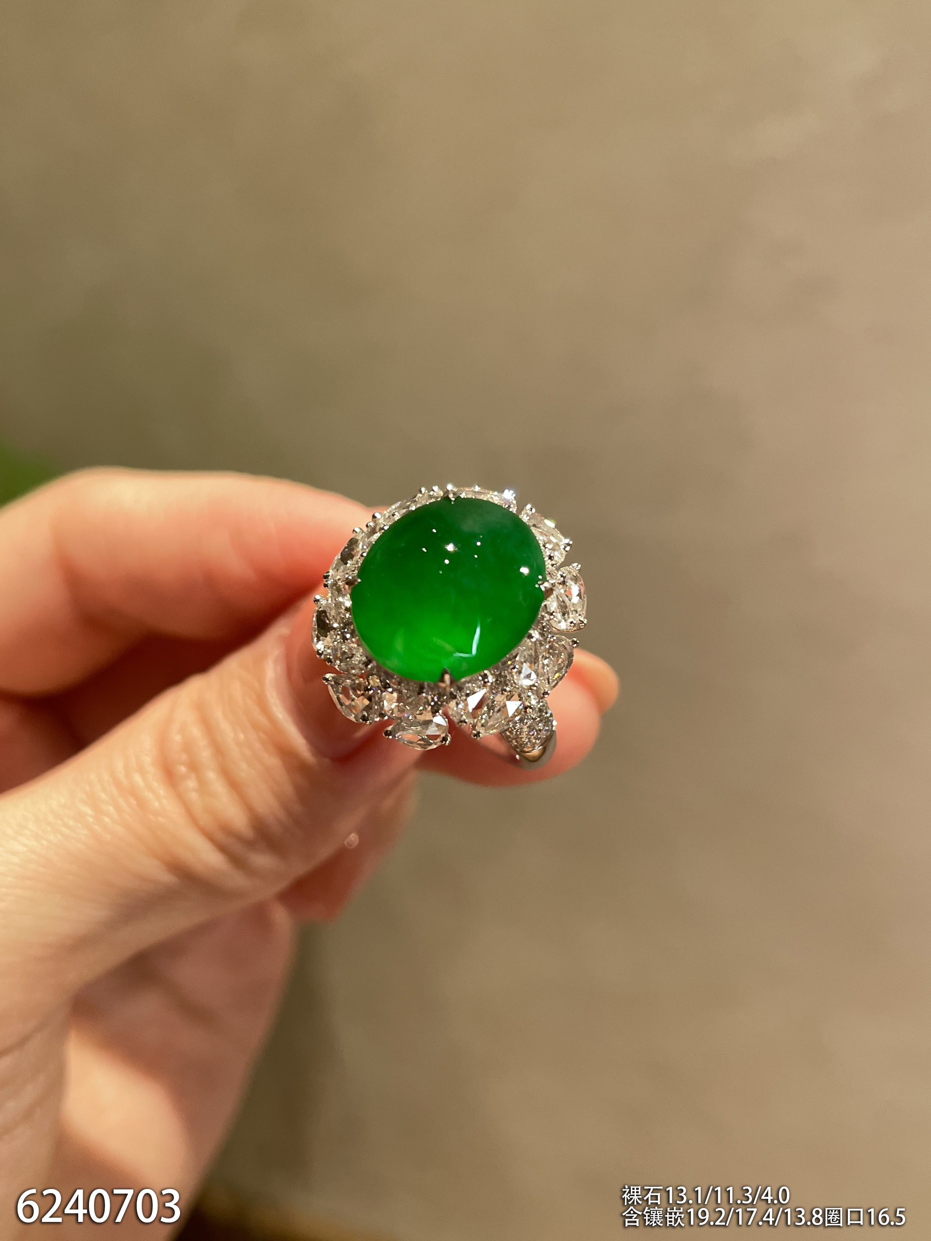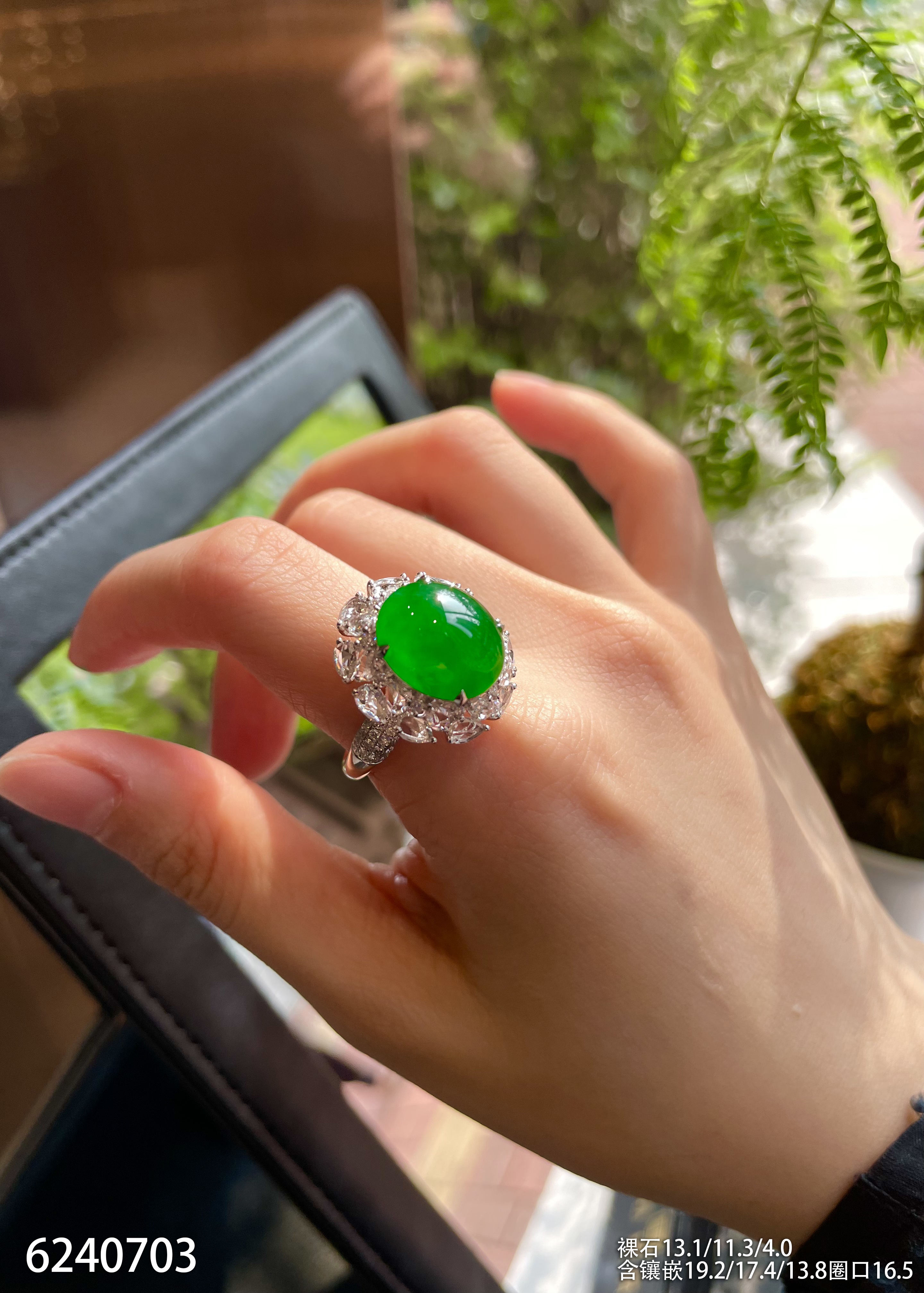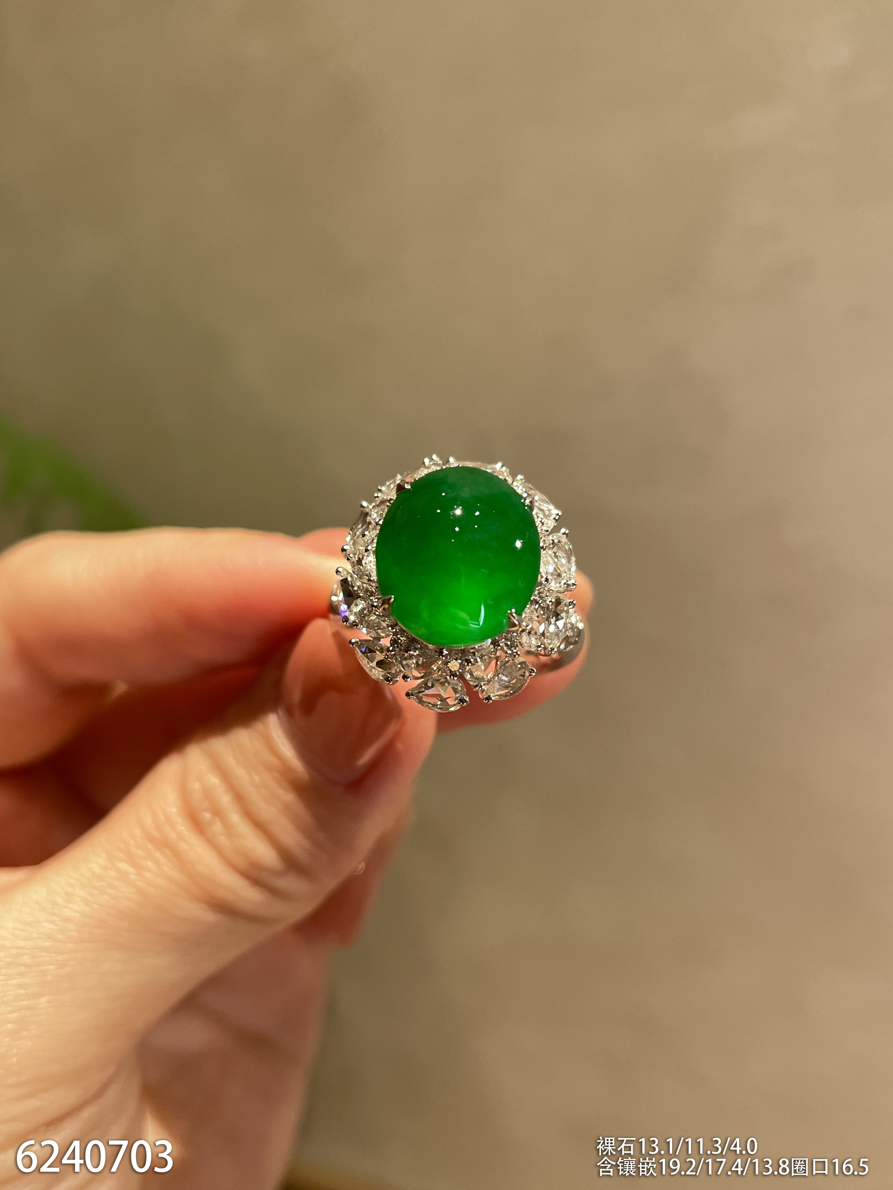 老坑帝王绿蛋面戒指【6240703】具体价格微信咨询