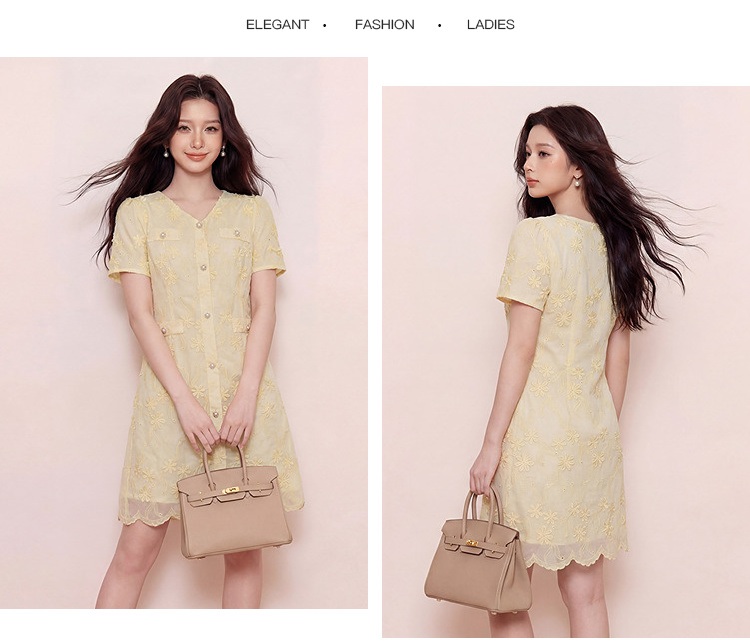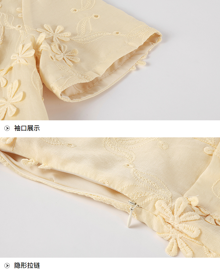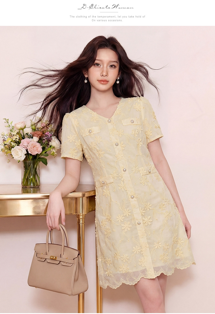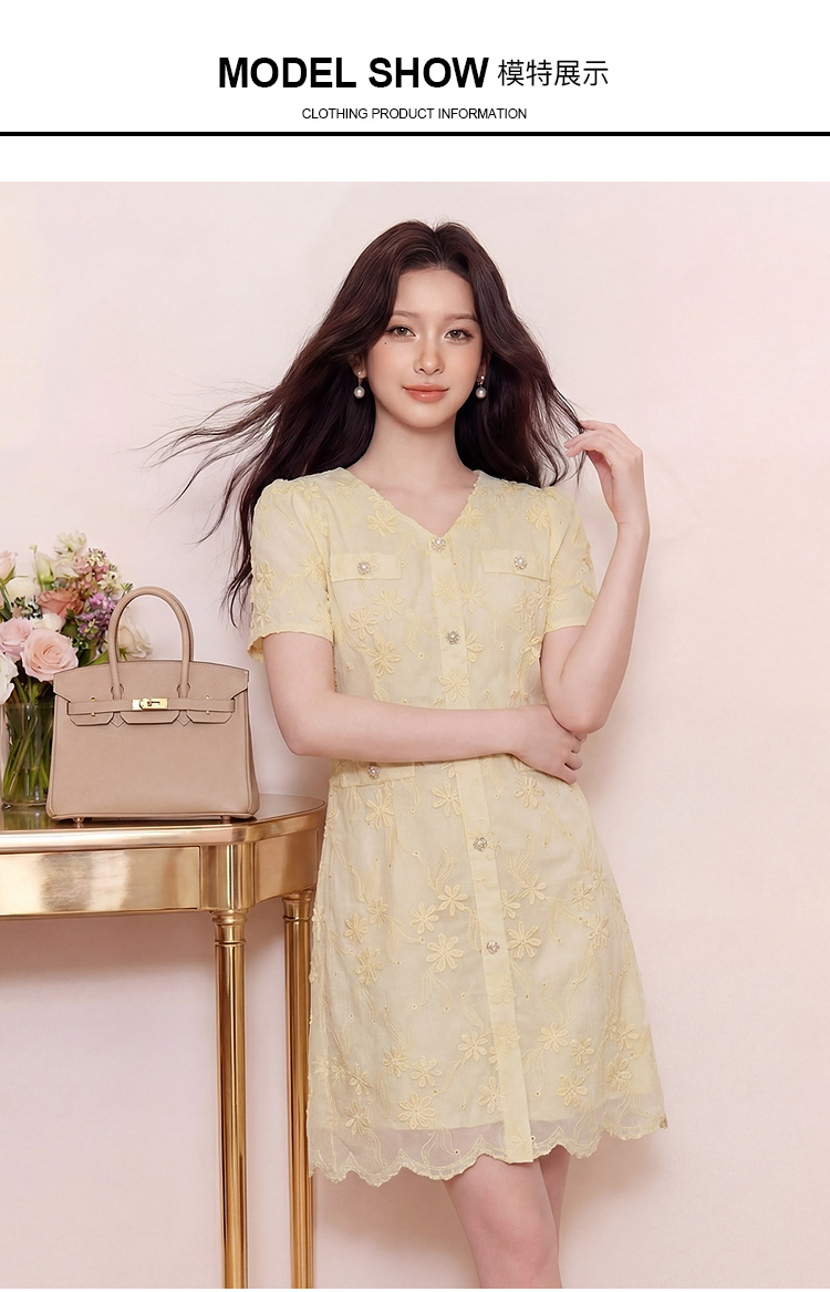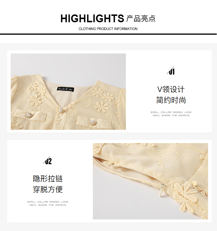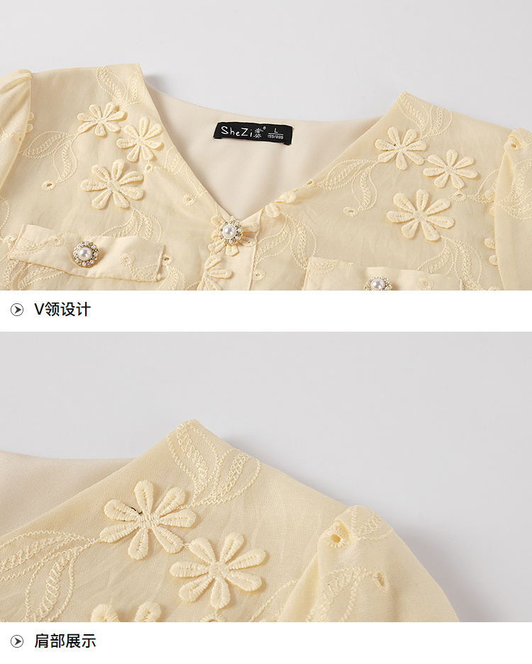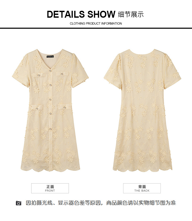 奢姿大码女装2026夏季立体花刺绣连衣裙胖妹妹温柔风V领茶歇裙9962860002