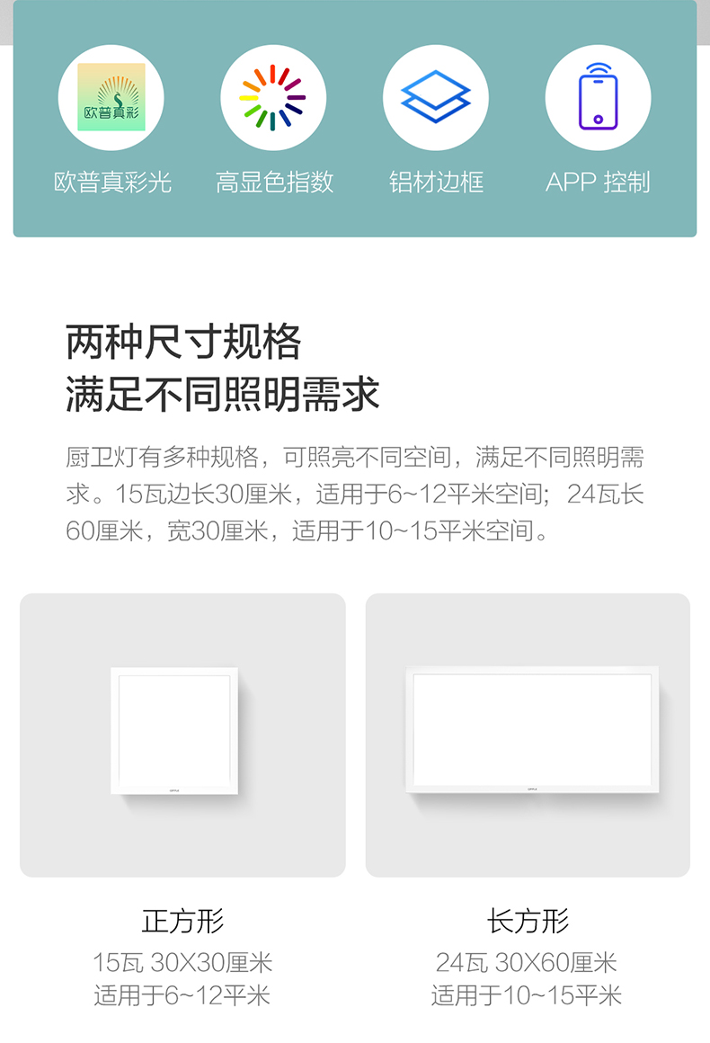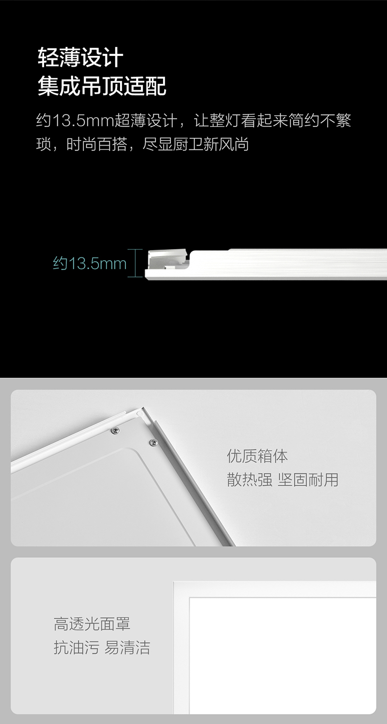 欧普(OPPLE)铂朗智控侧发光平板灯led厨卫吊顶灯