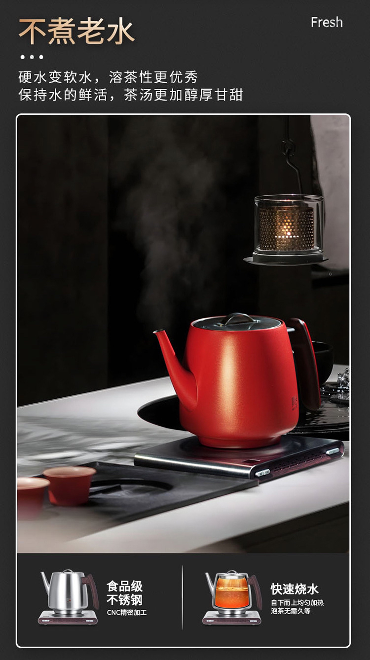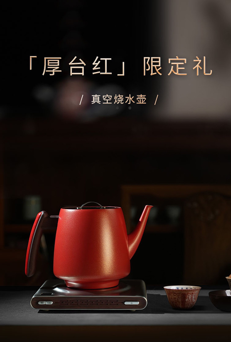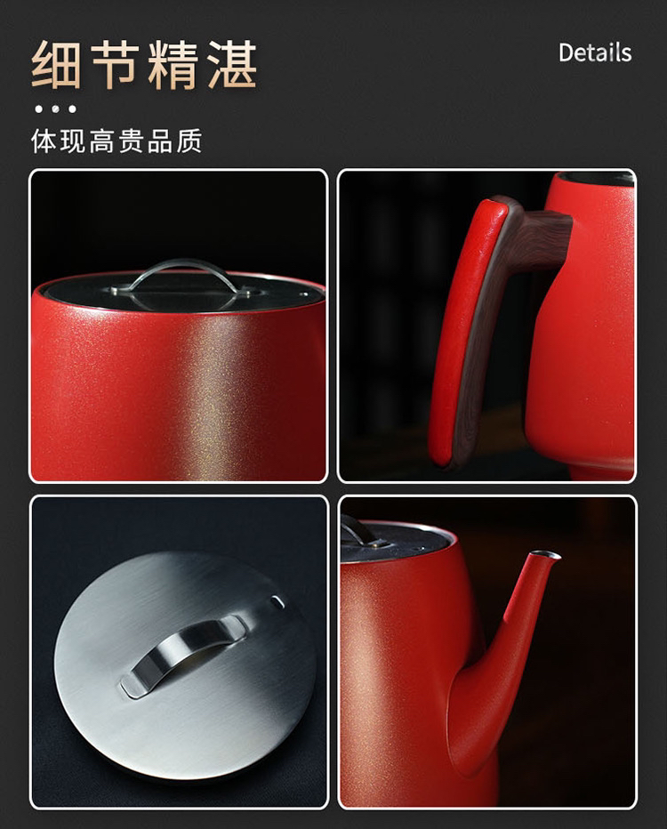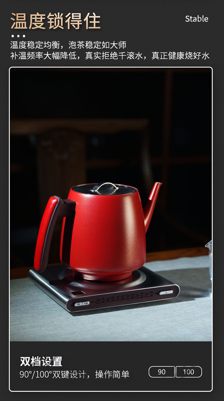 厚台红双层真空保温烧水壶手工皮革把手高端电热水壶