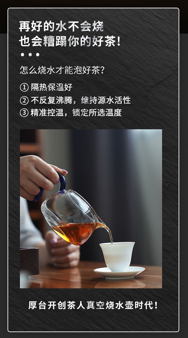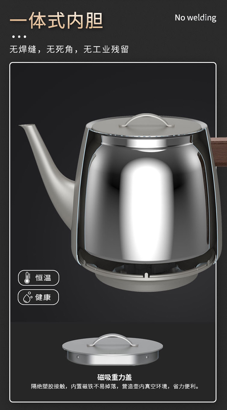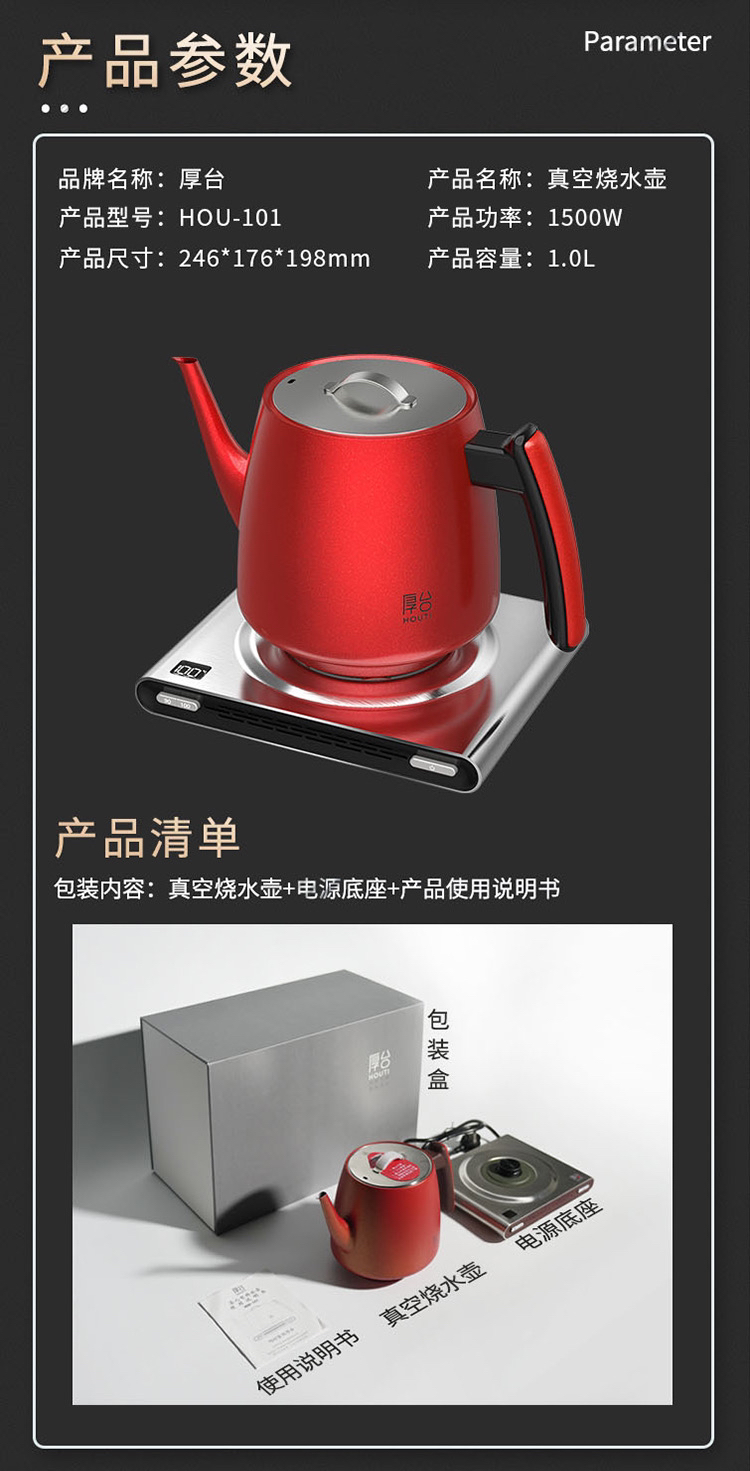 厚台红双层真空保温烧水壶手工皮革把手高端电热水壶