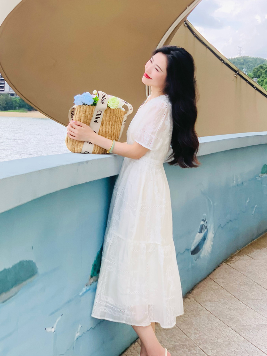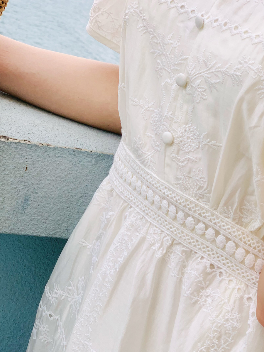 【百图lulu定制】【月桂连衣裙】月桂刺绣 天丝光泽感 短袖连衣裙