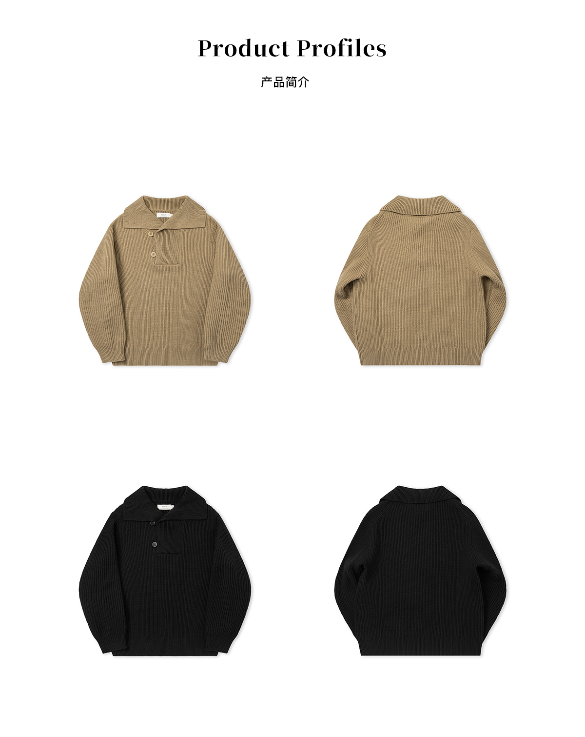Evistub/E-4DMY997/重磅定染双色海岛棉粗织复古大翻领海员毛衣