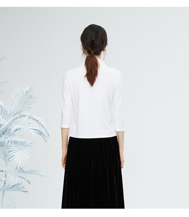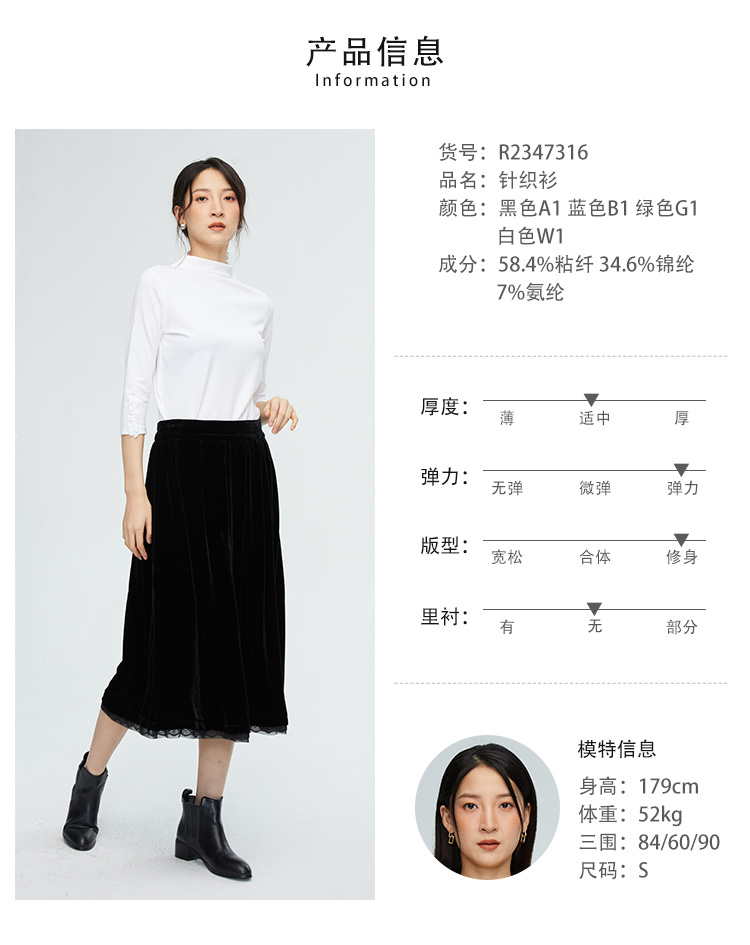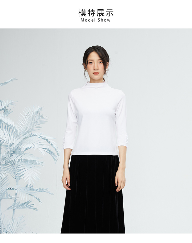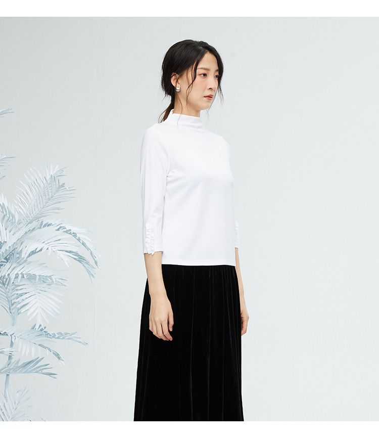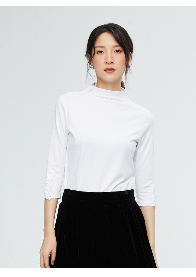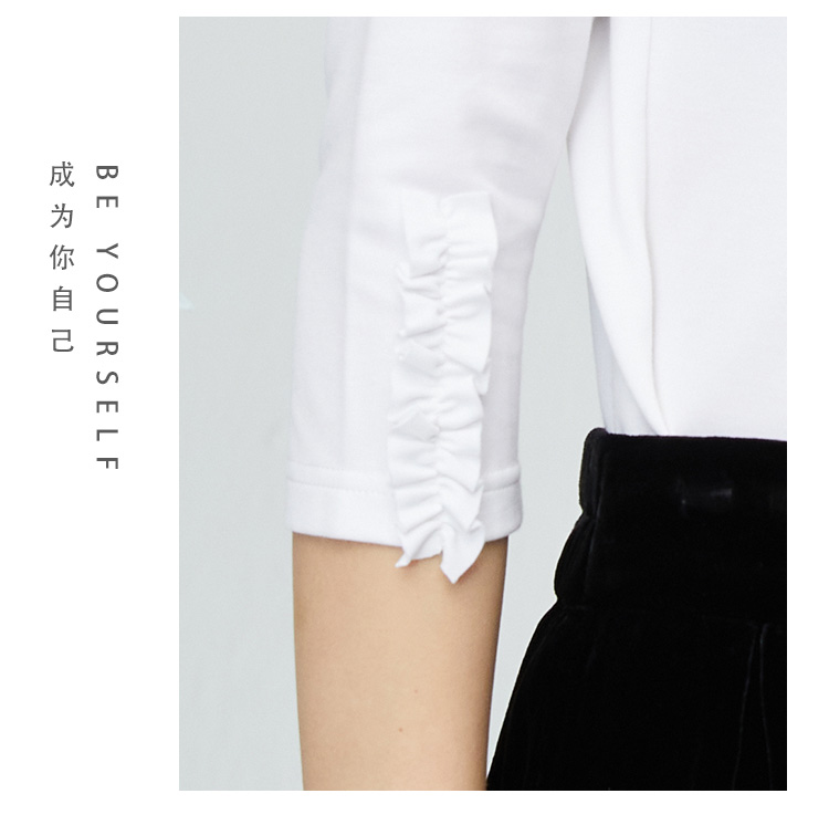 VIVIAN LIU薇薇安刘R2347316秋女装新款七分袖木耳边袖口打底衫